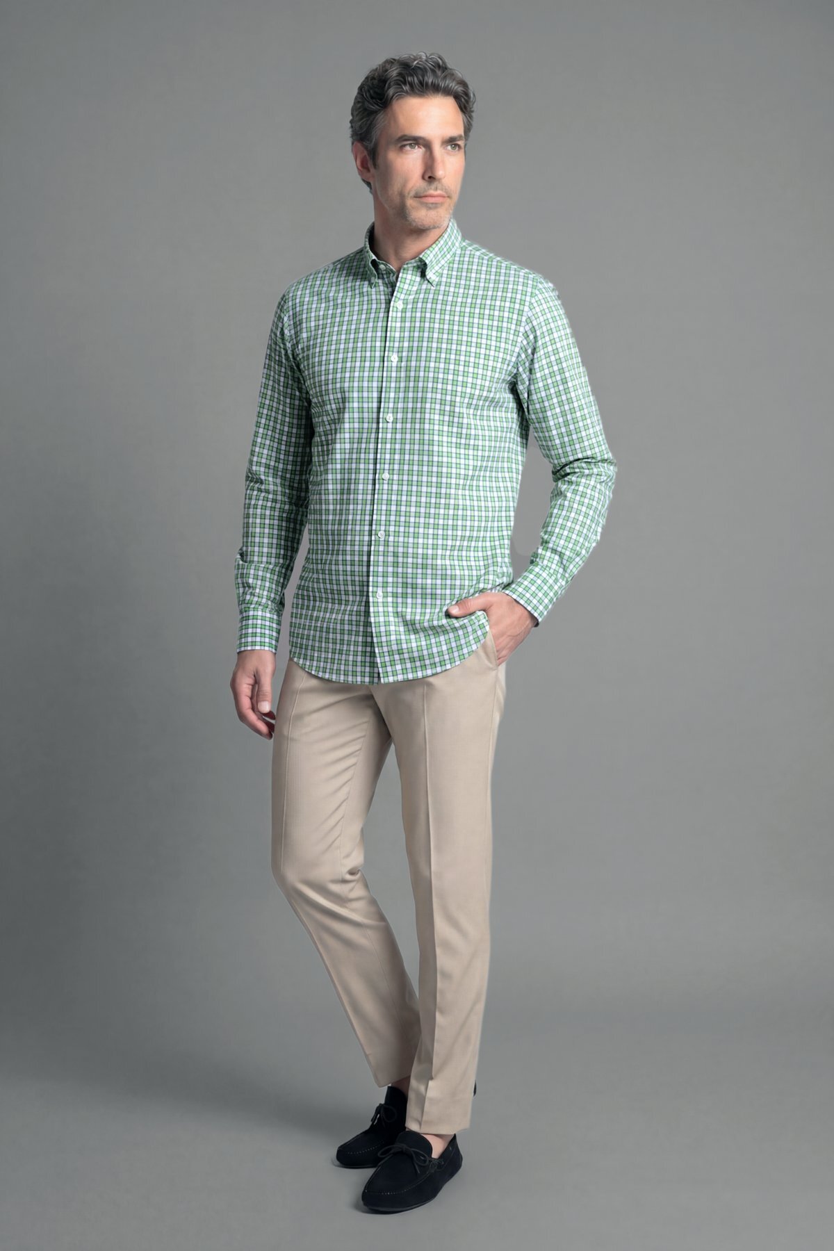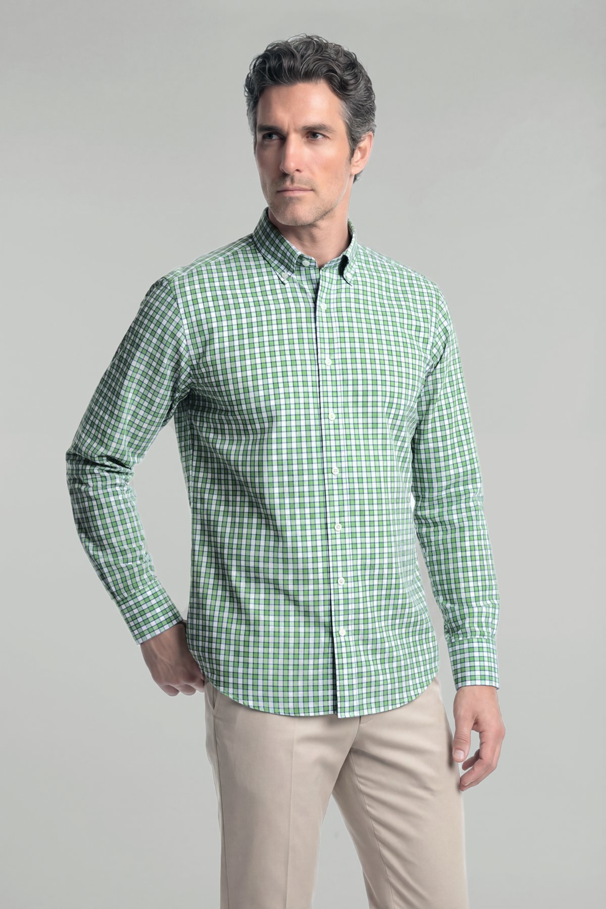 Regular Fit Erkek Uzun Kol Pamuk Yeşil Gömlek