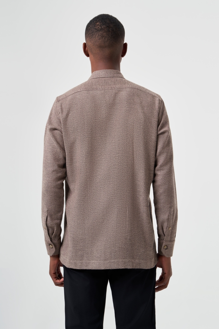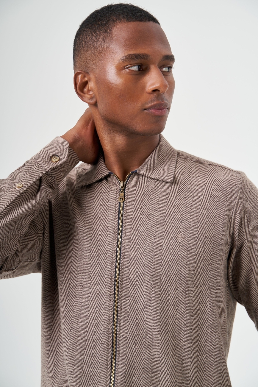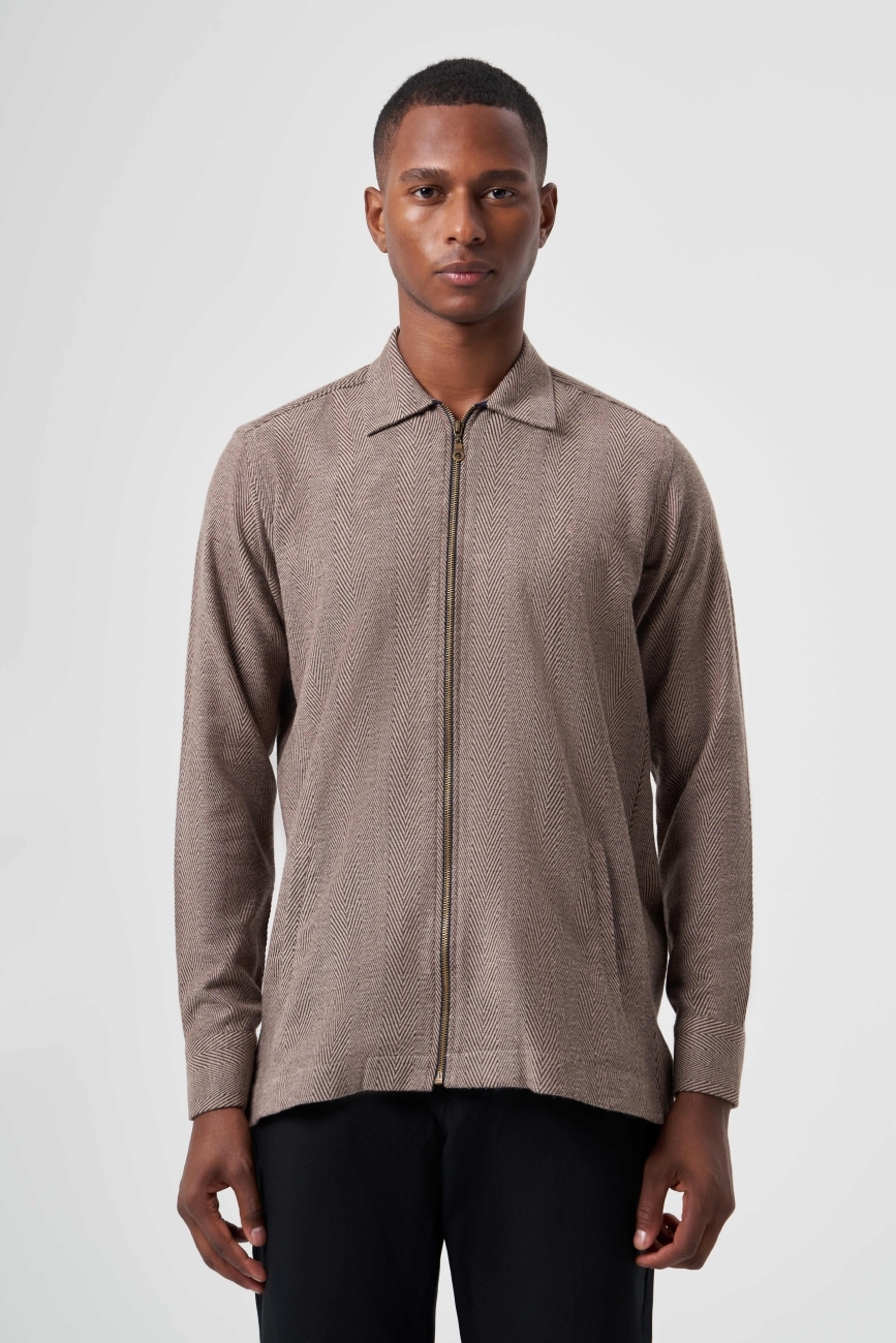 Regular Fit Fermuarlı Flanel Kahve Erkek Gömlek
