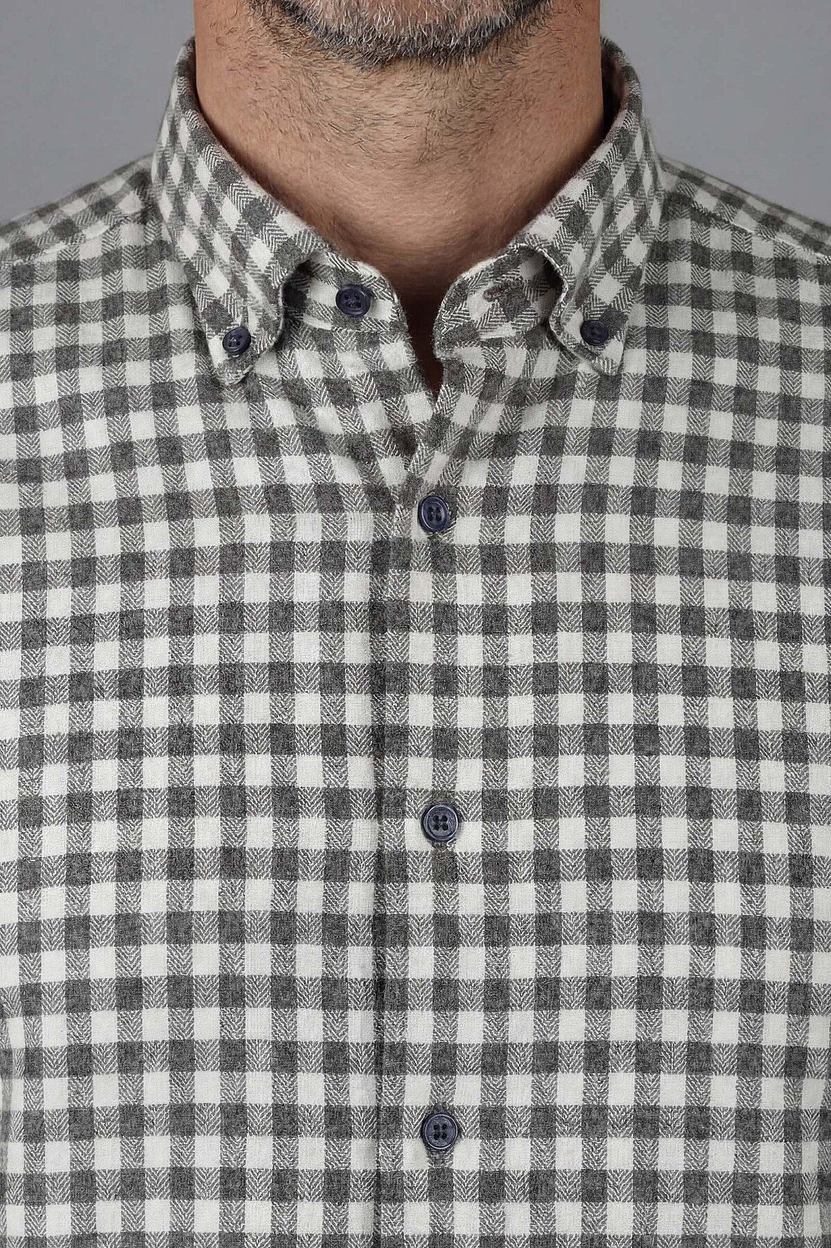 Regular Fit Flanel Mini Kareli Pamuk Antrasit Erkek Gömlek