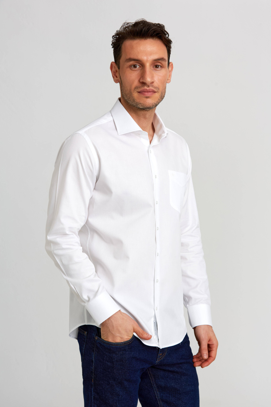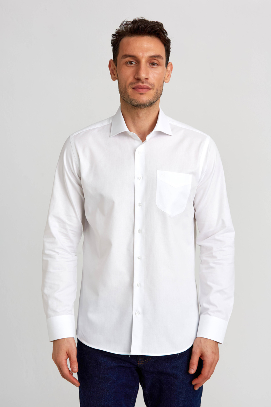 Regular Fit İtalyan Yaka Beyaz Basic Erkek Gömlek