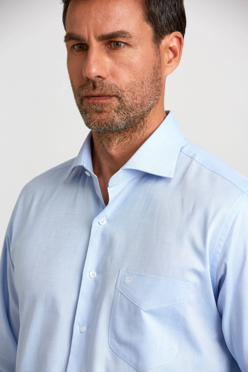 Regular Fit İtalyan Yaka Mavi Basic Erkek Gömlek