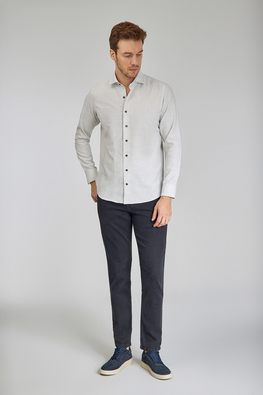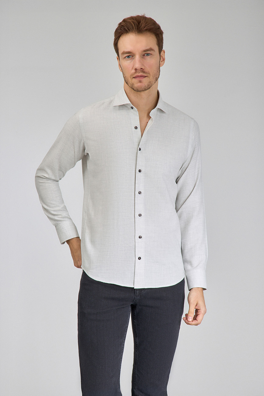 Regular Fit İtalyan Yaka Taş Pamuk Erkek Gömlek