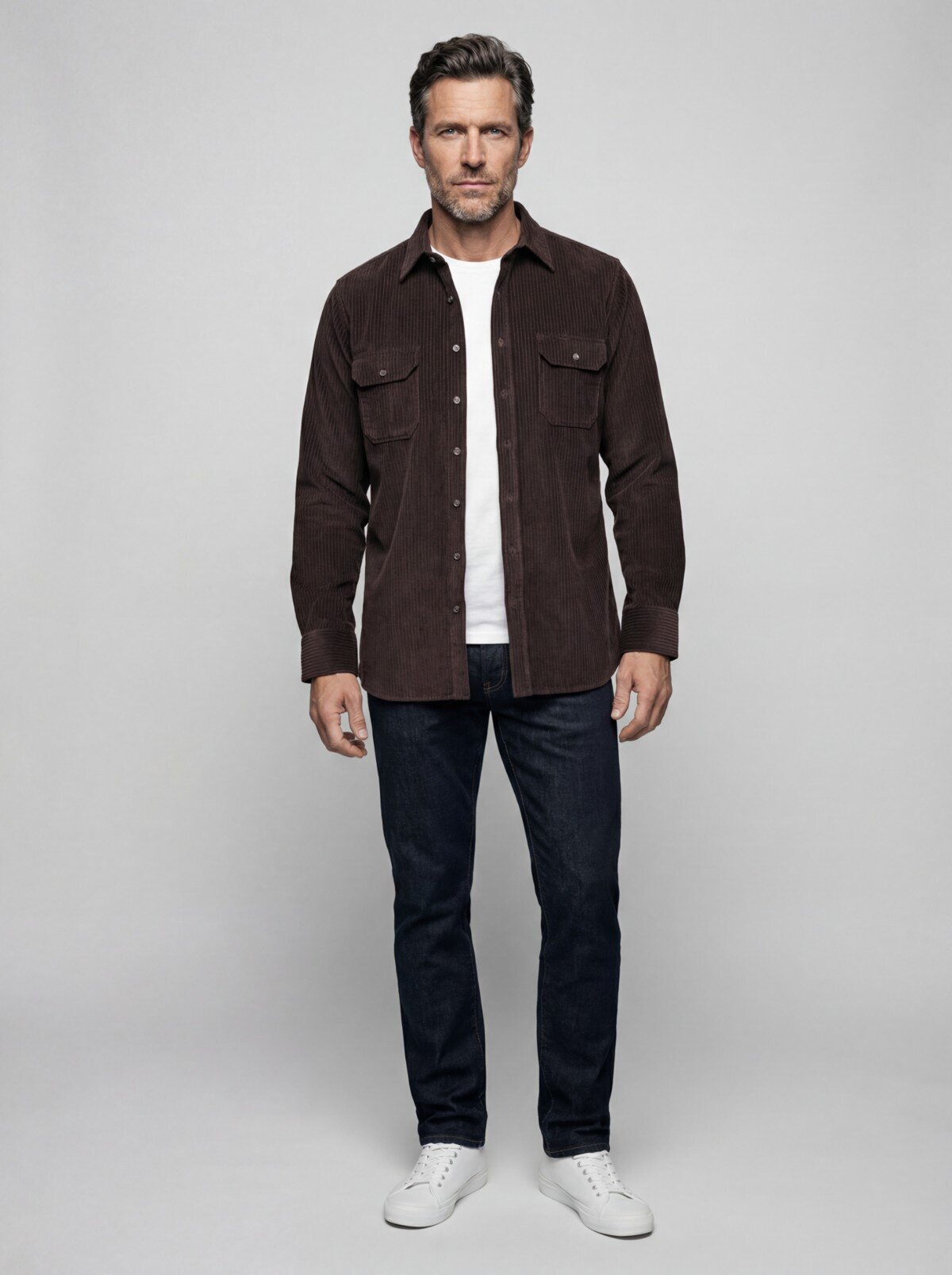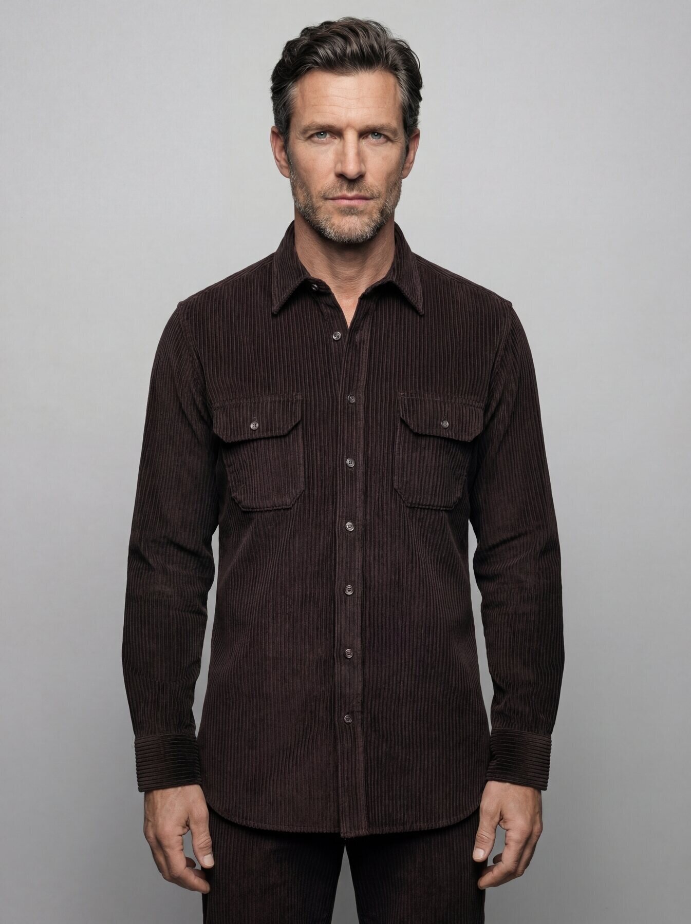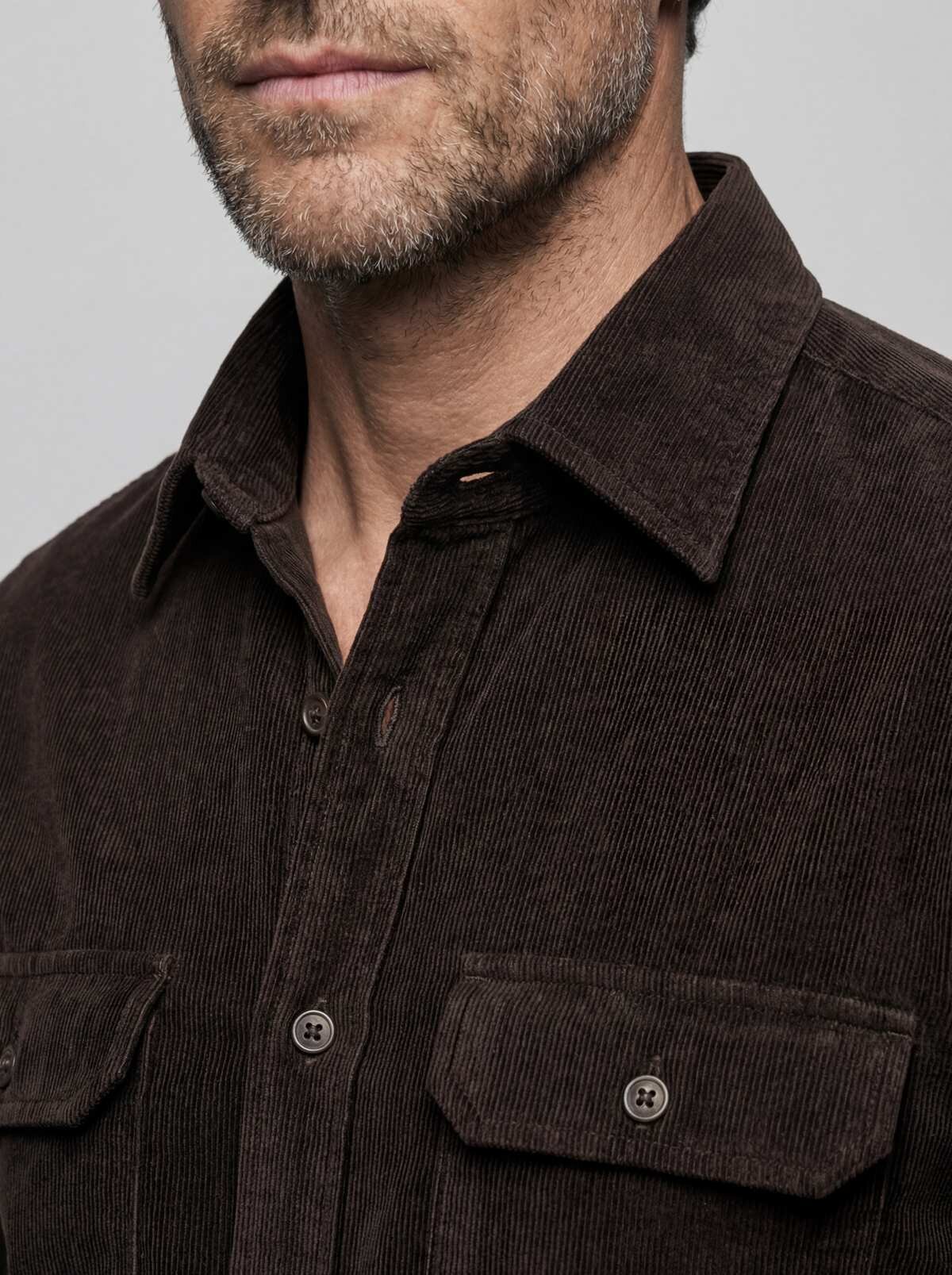 Regular Fit Kadife Pamuk Koyu Kahve Erkek Gömlek