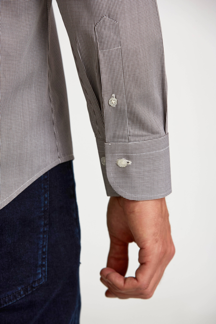 Regular Fit Kahve İtalyan Yaka Klasik Erkek Gömlek