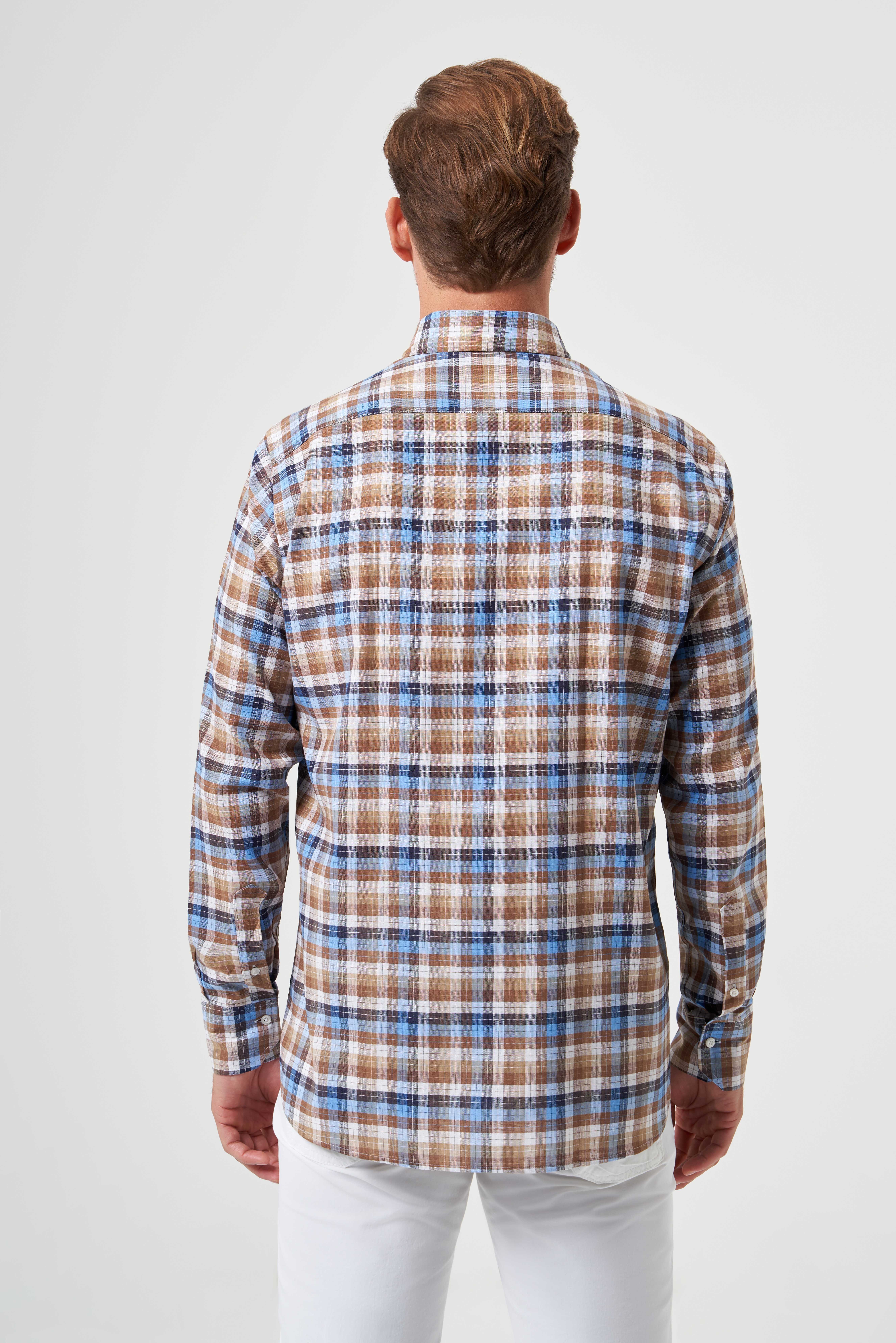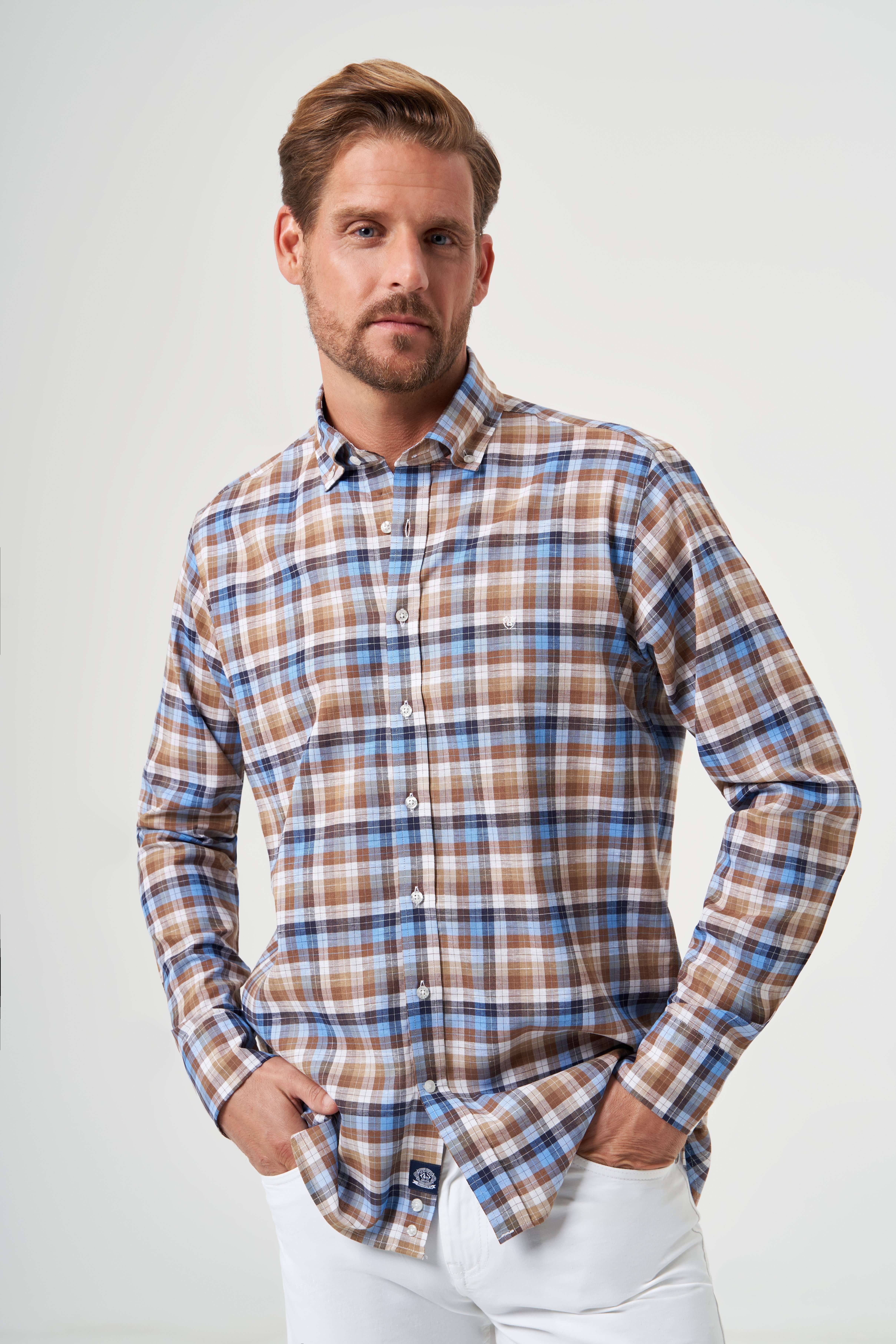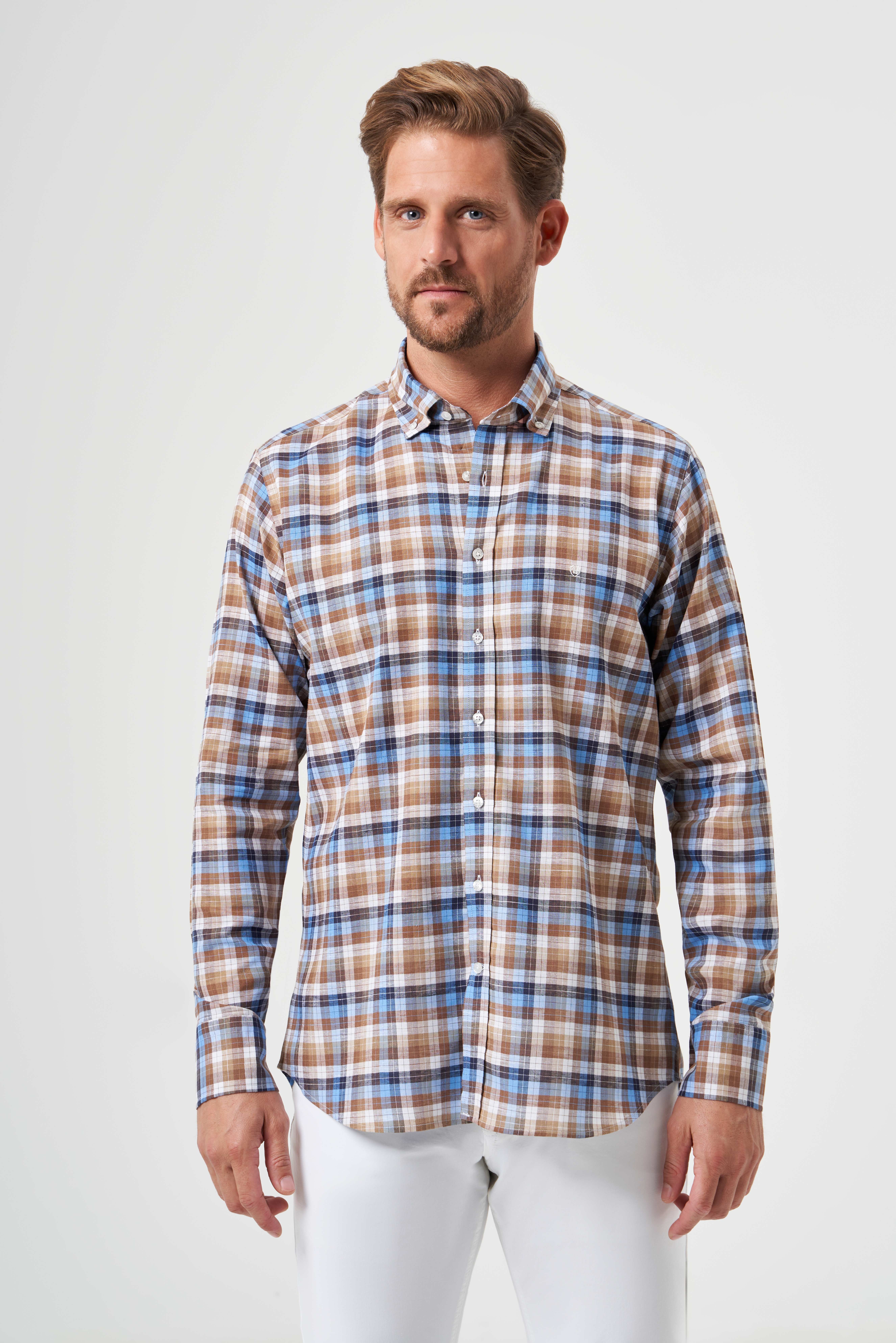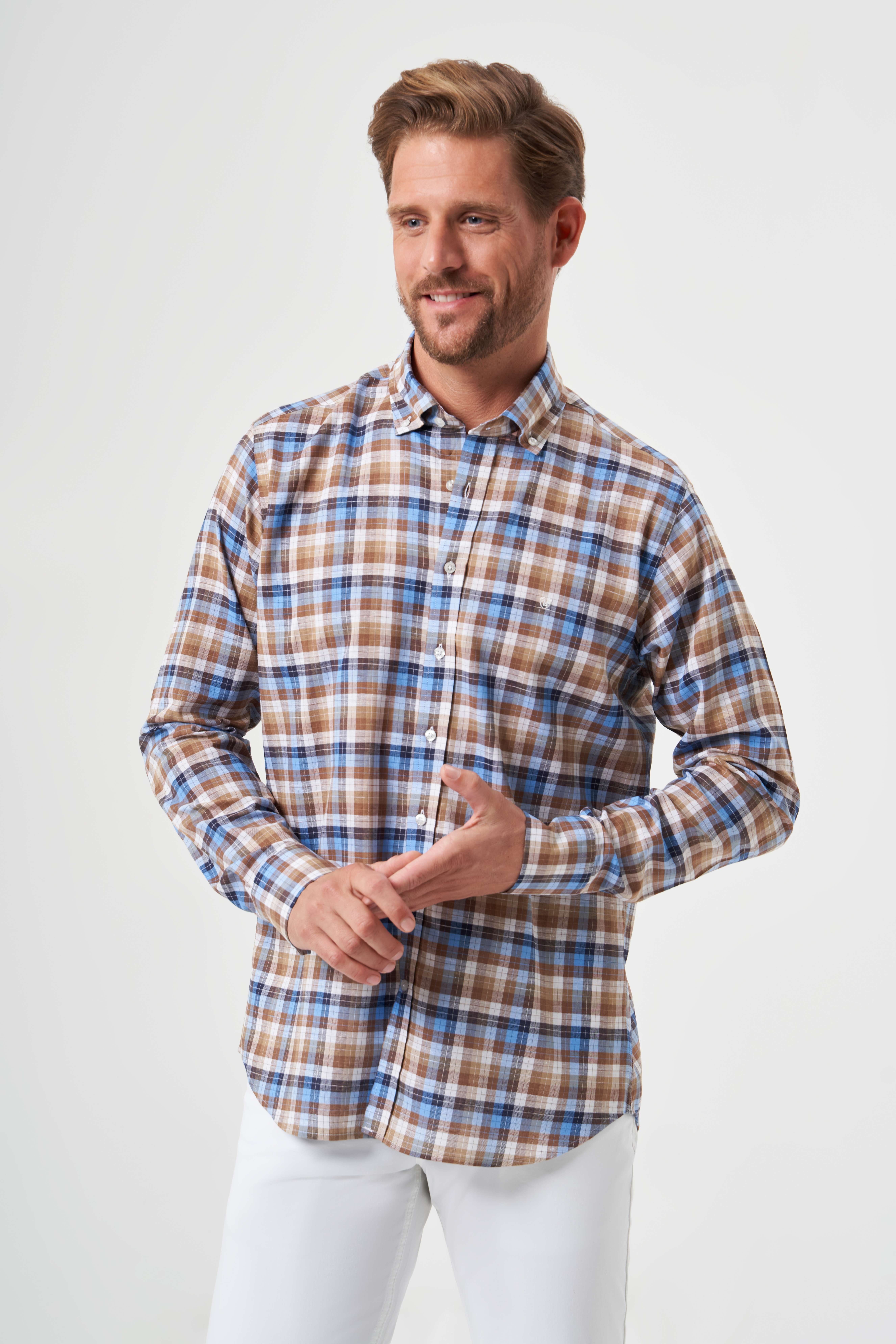 Regular Fit Kahve Paşa Yaka Ekoseli Spor Erkek Gömlek