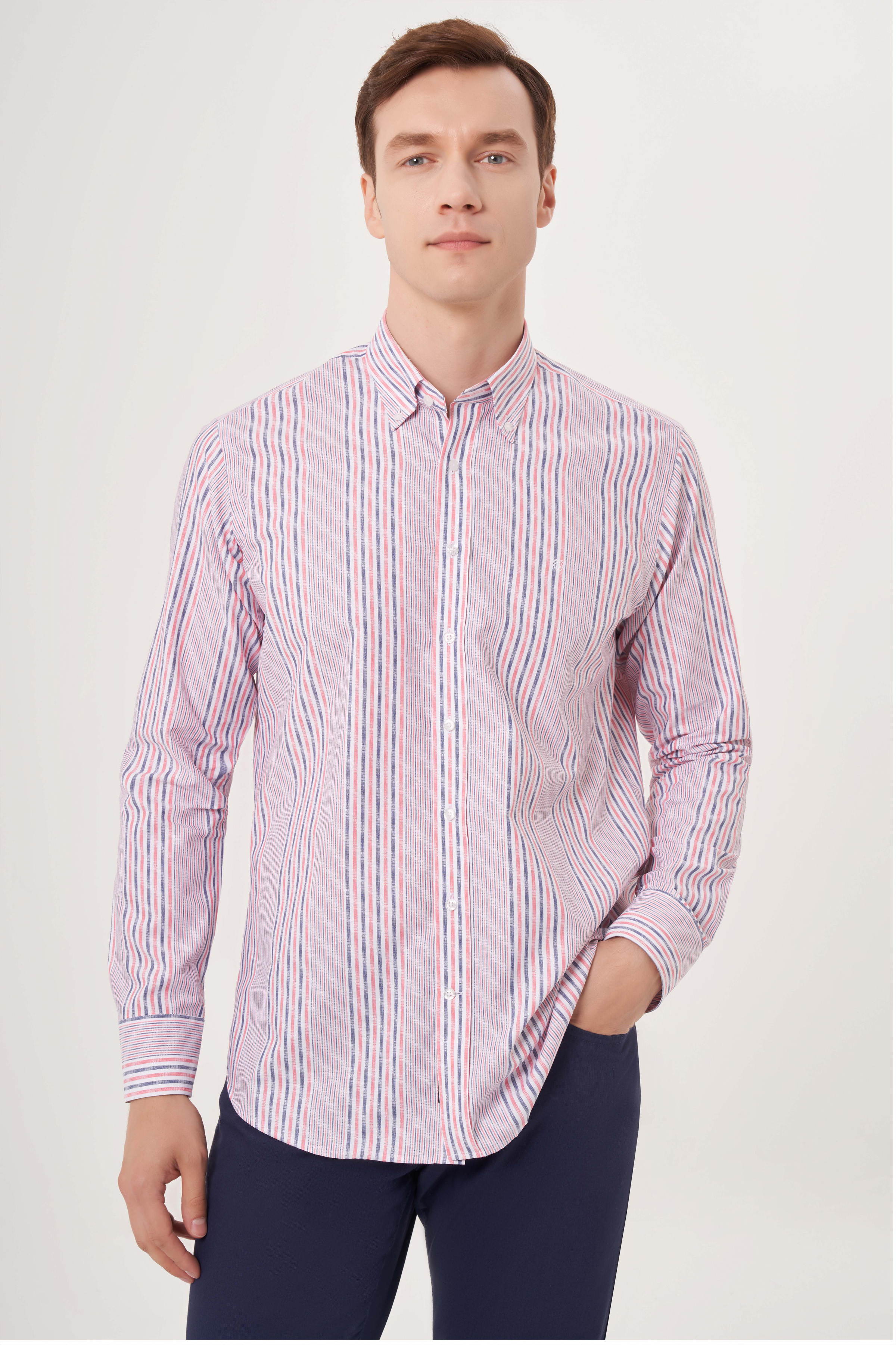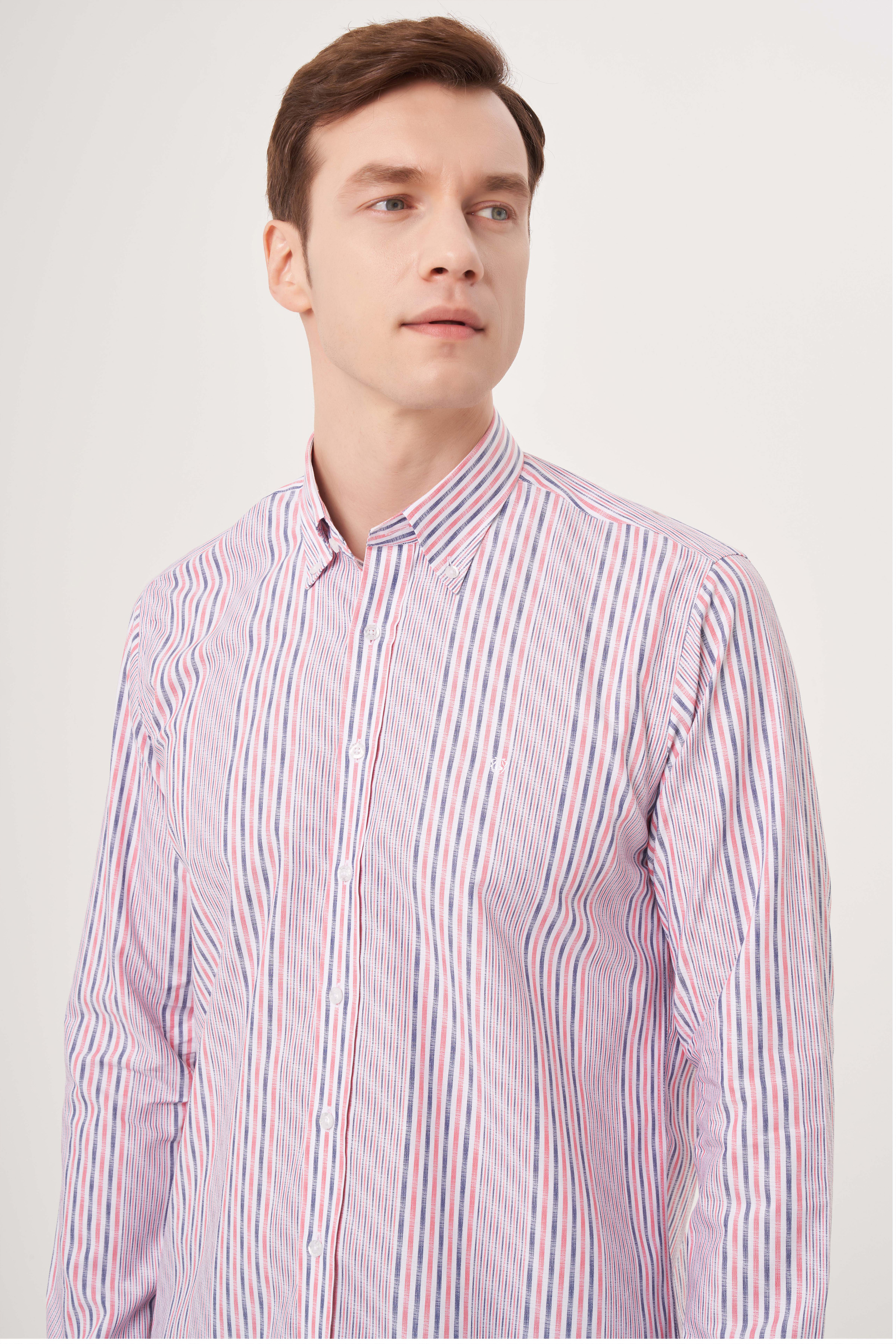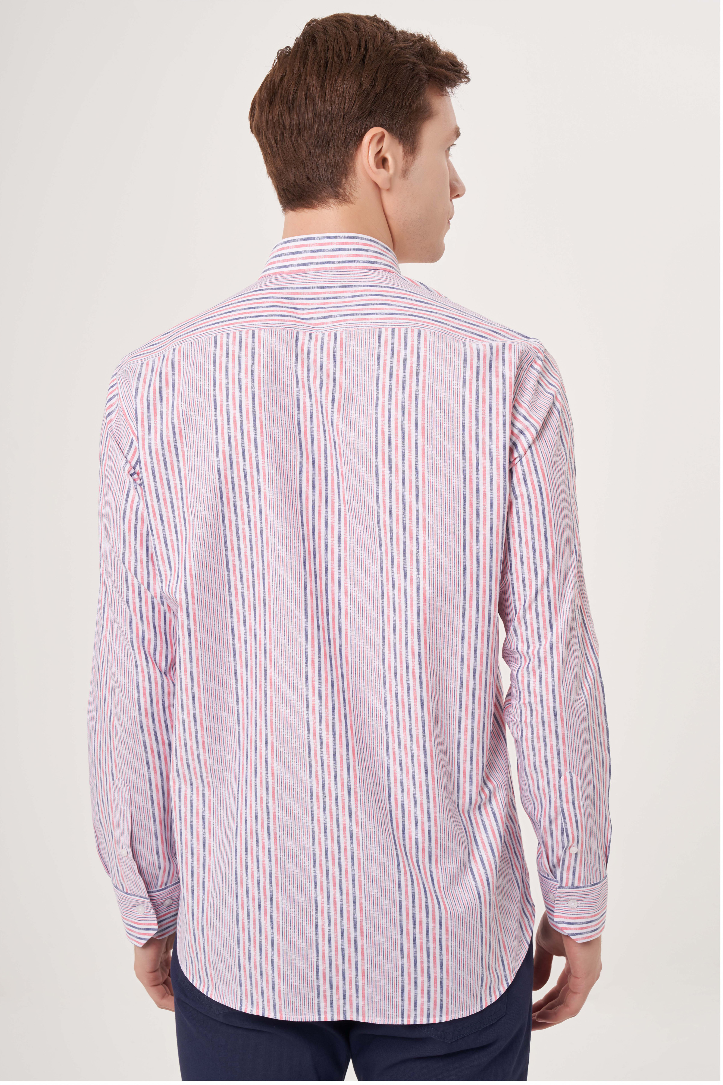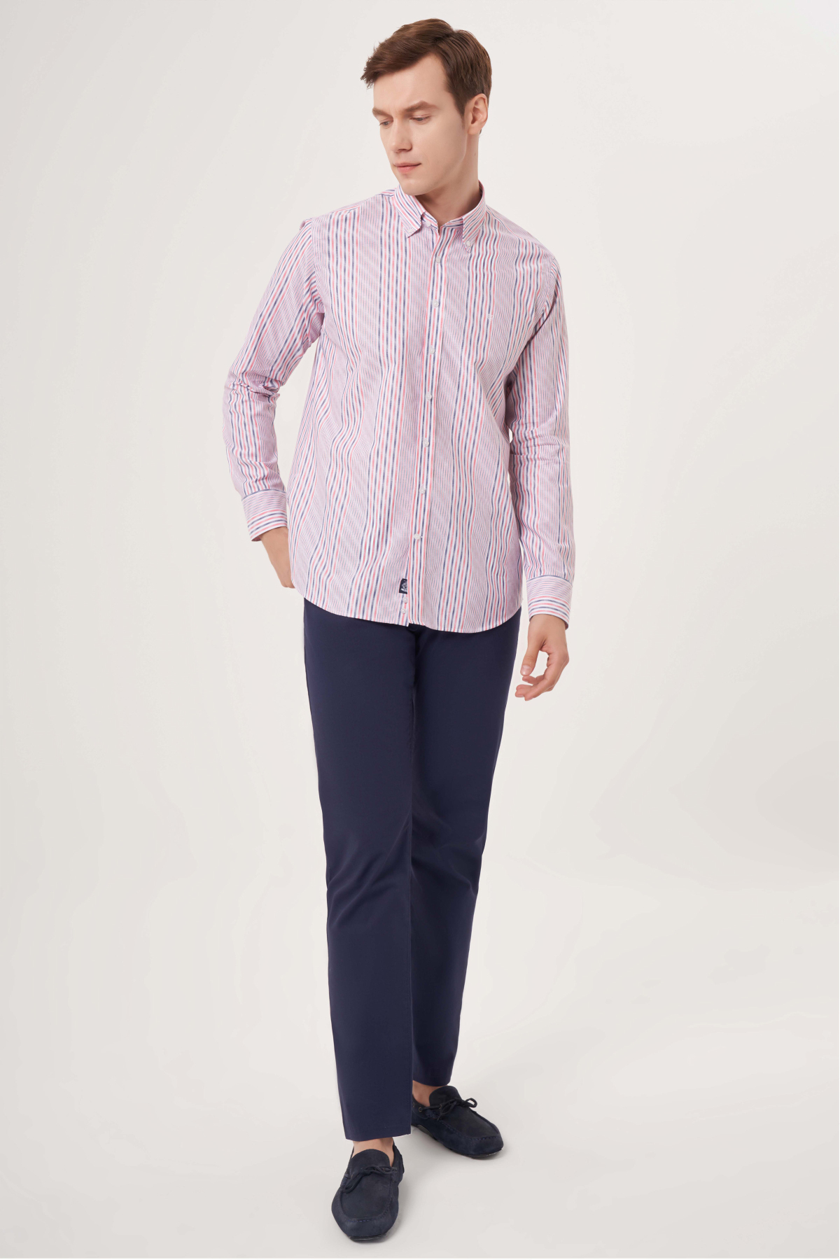 Regular Fit Kırmızı Çizgili Spor Erkek Gömlek