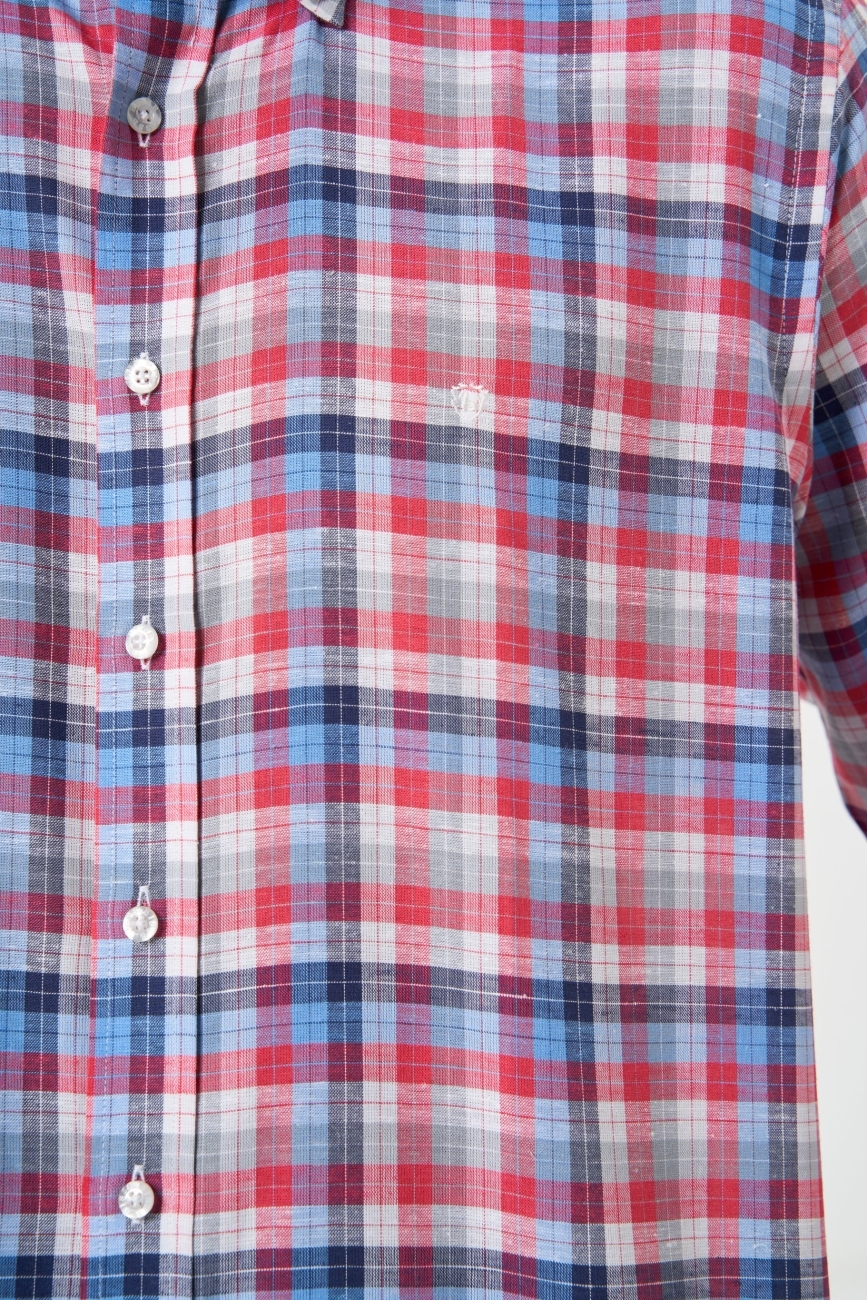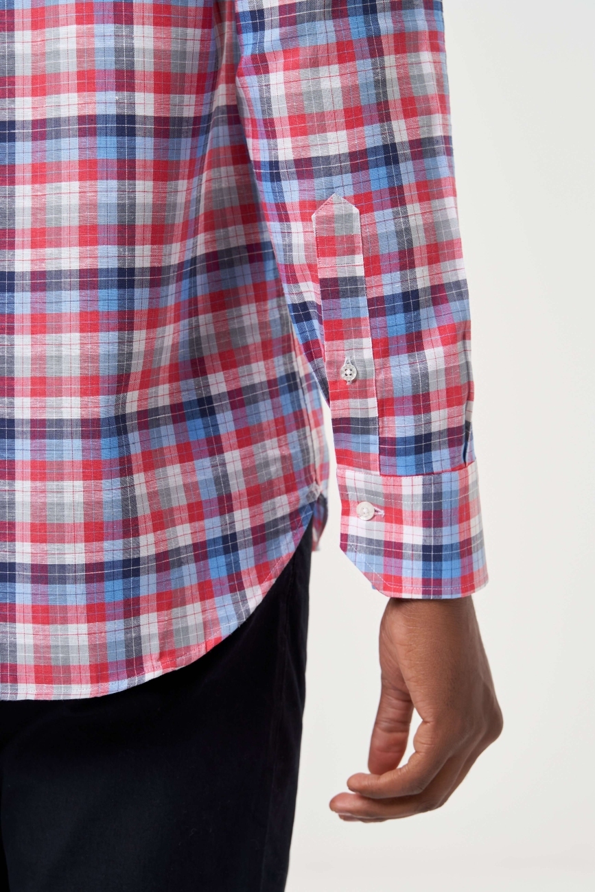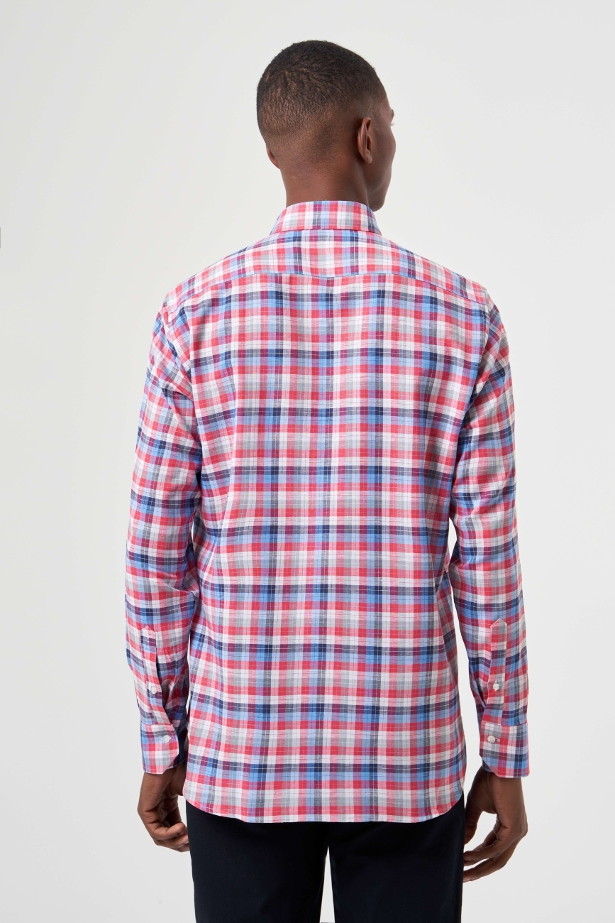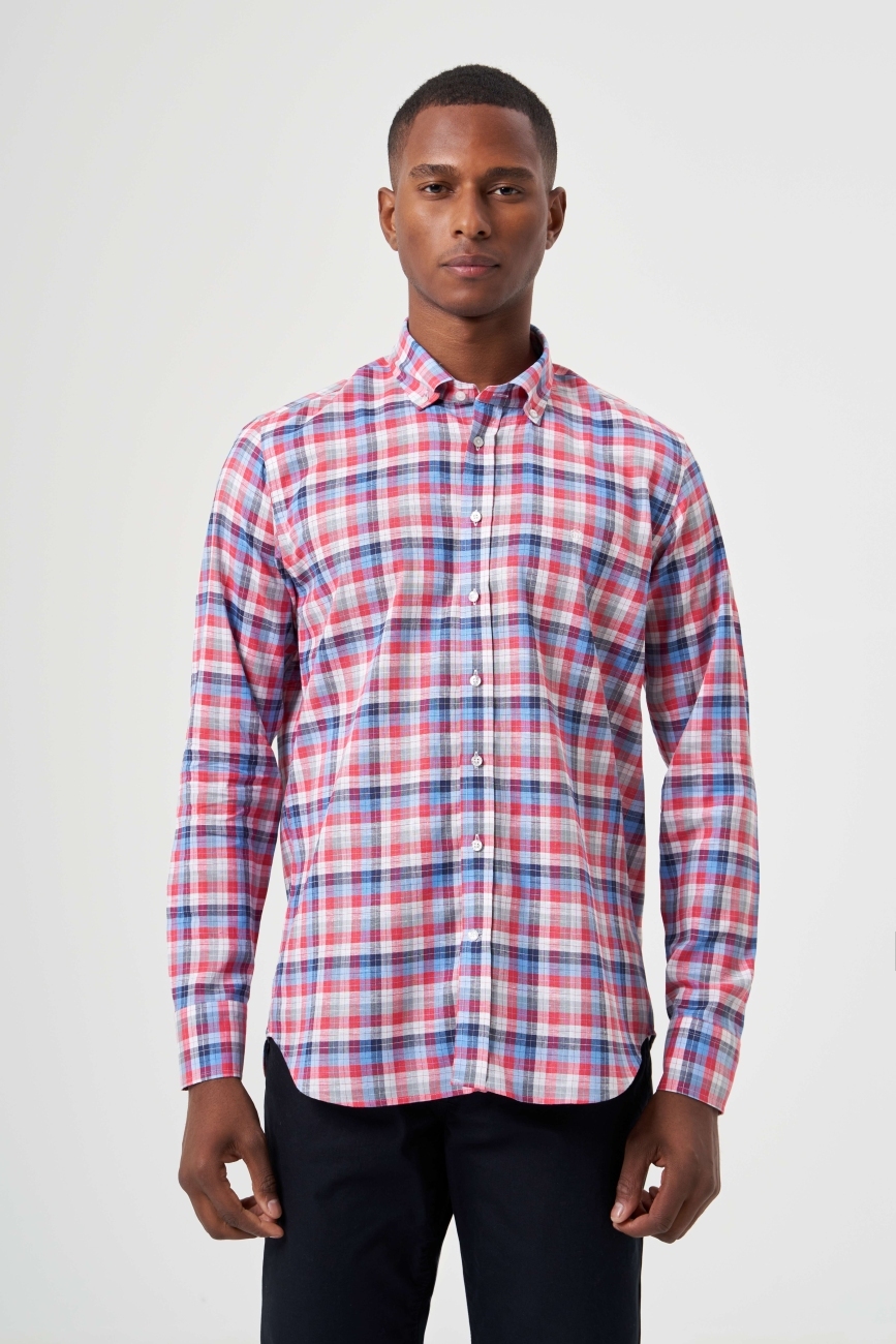 Regular Fit Kırmızı Ekoseli Paşa Yaka Yazlık Spor Erkek Gömlek