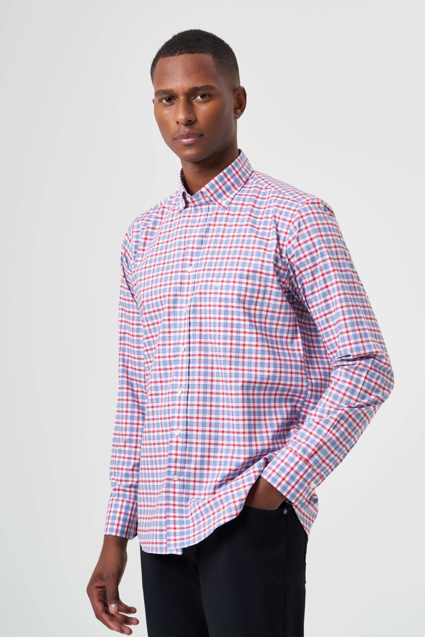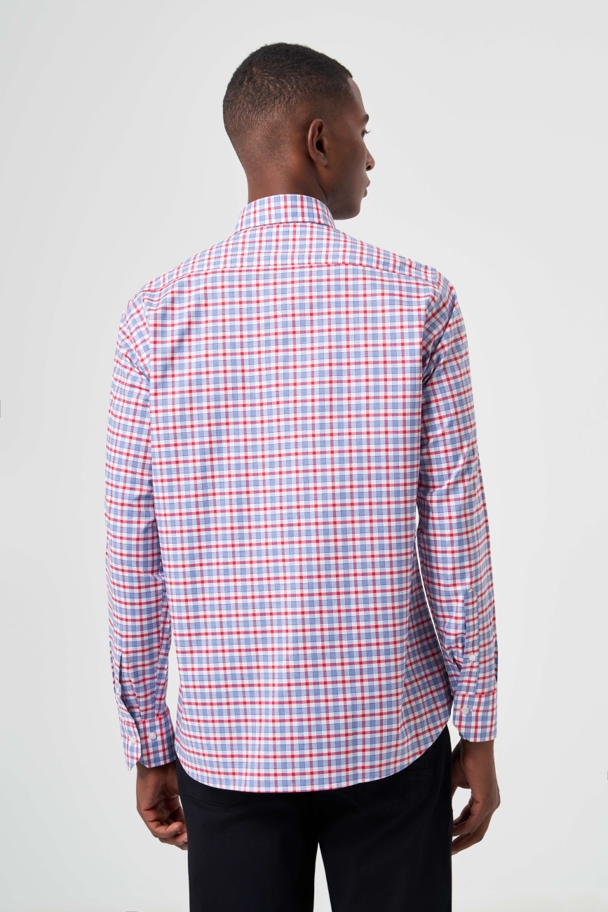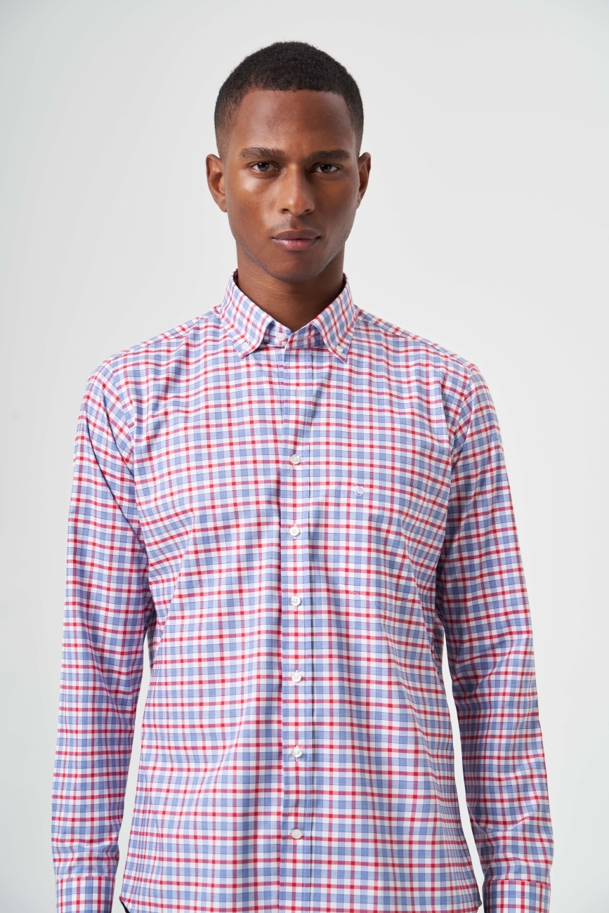 Regular Fit Kırmızı Yazlık Ekose Paşa Yaka Erkek Gömlek