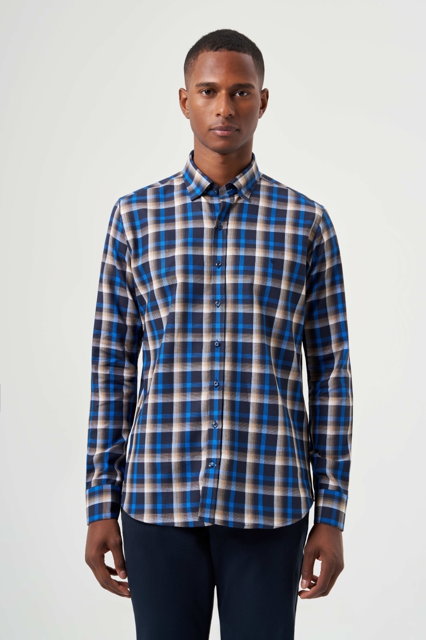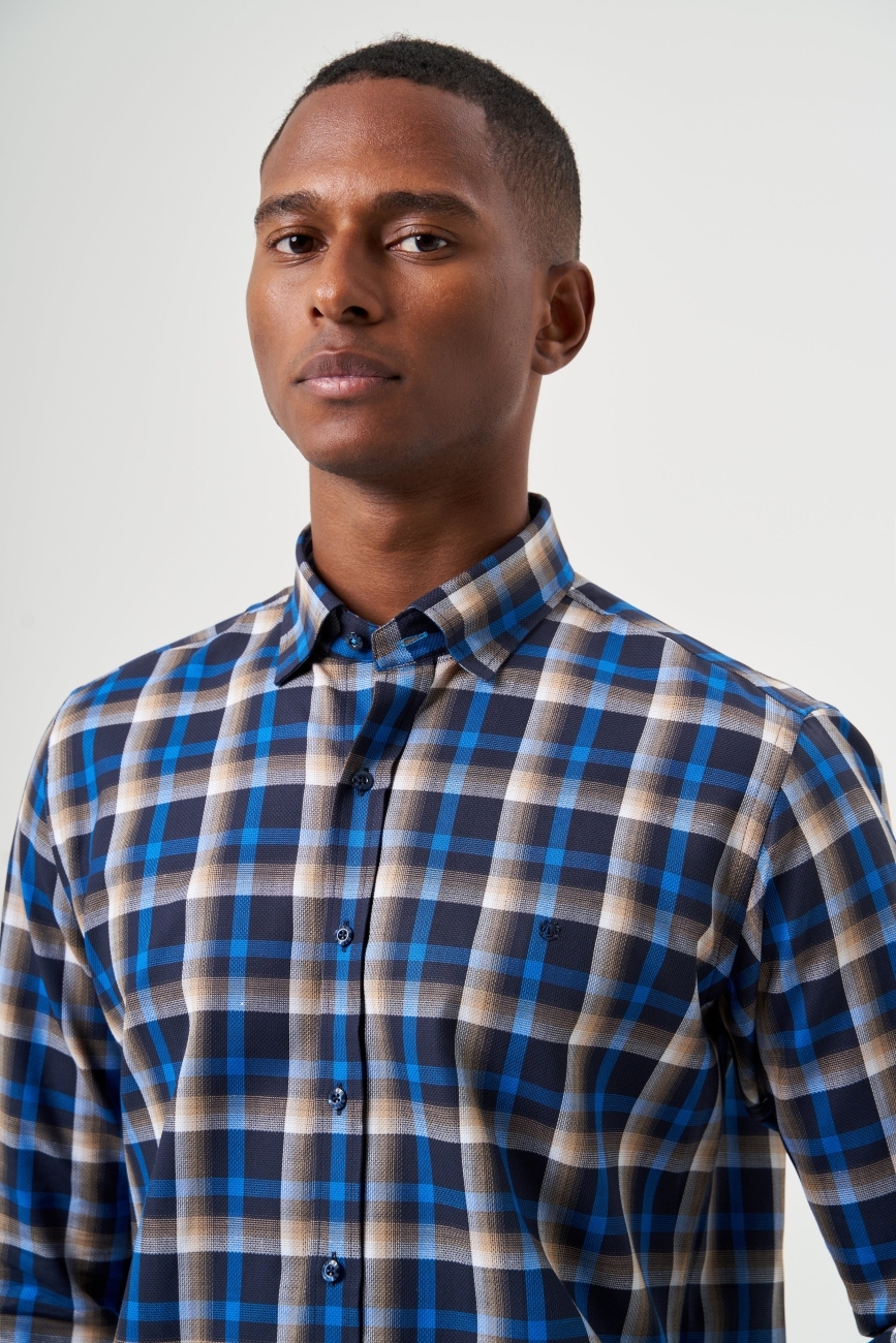 Regular Fit Kışlık Ekose Lacivert Spor Erkek Gömlek
