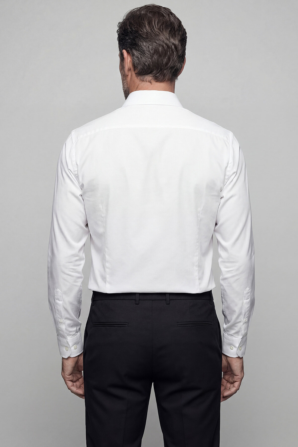 Slim Fit Klasik C Yaka Pensli Pamuk Beyaz Erkek Gömlek
