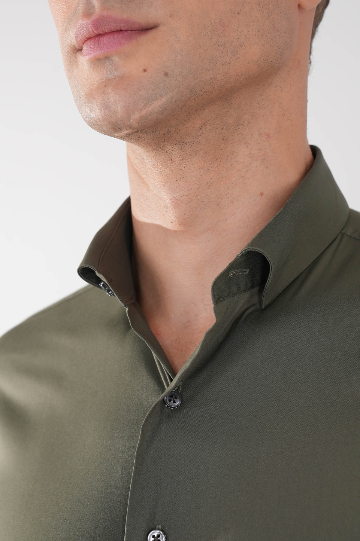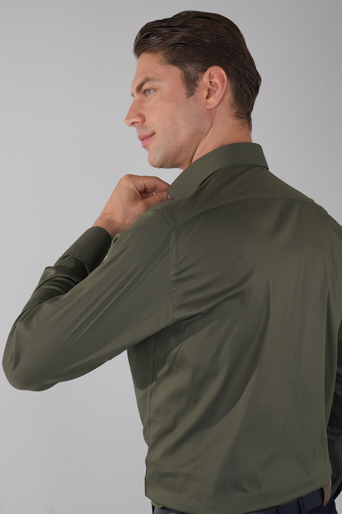 Regular Fit Klasik Yaka Cepsiz Haki Erkek Gömlek