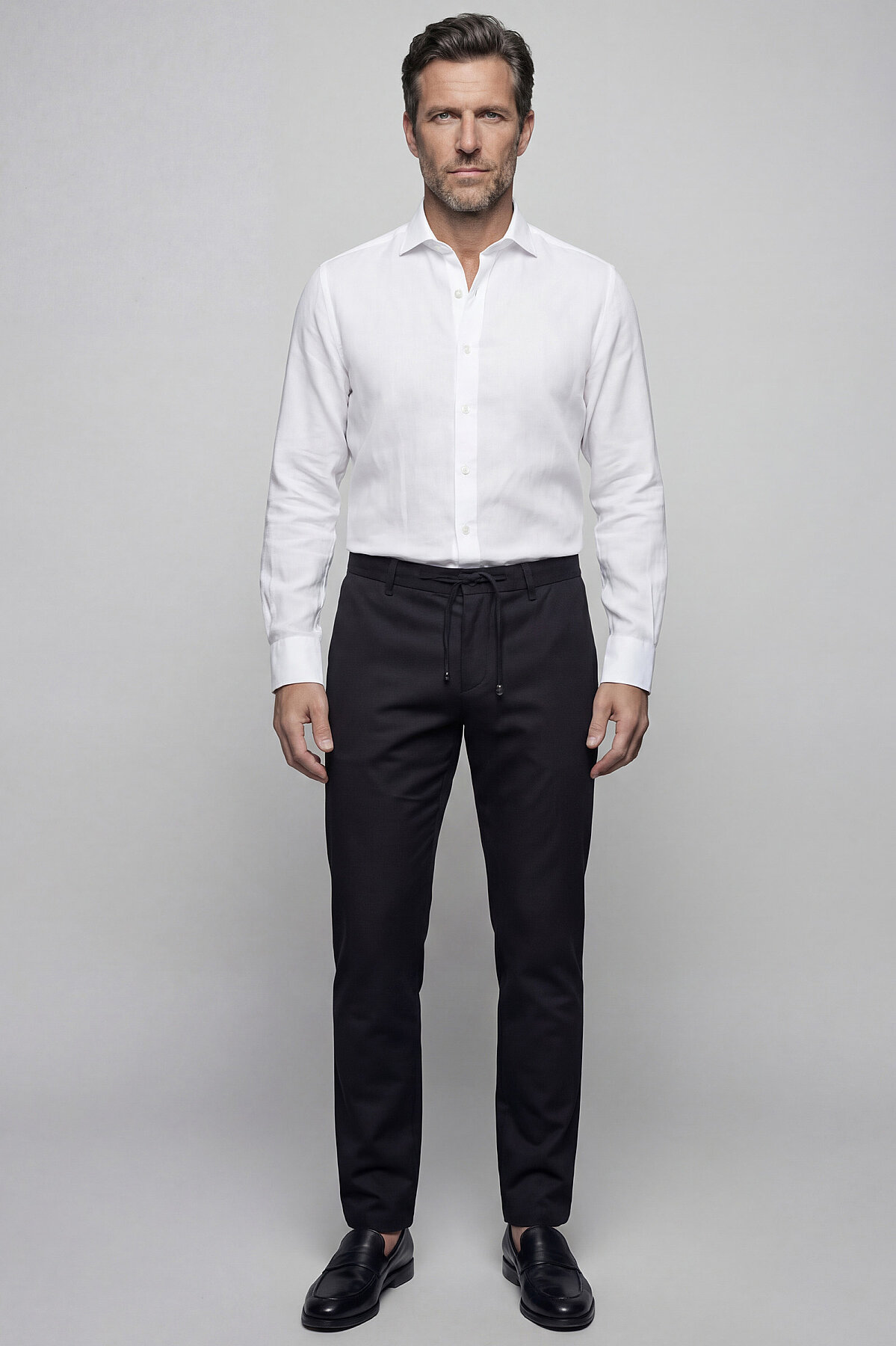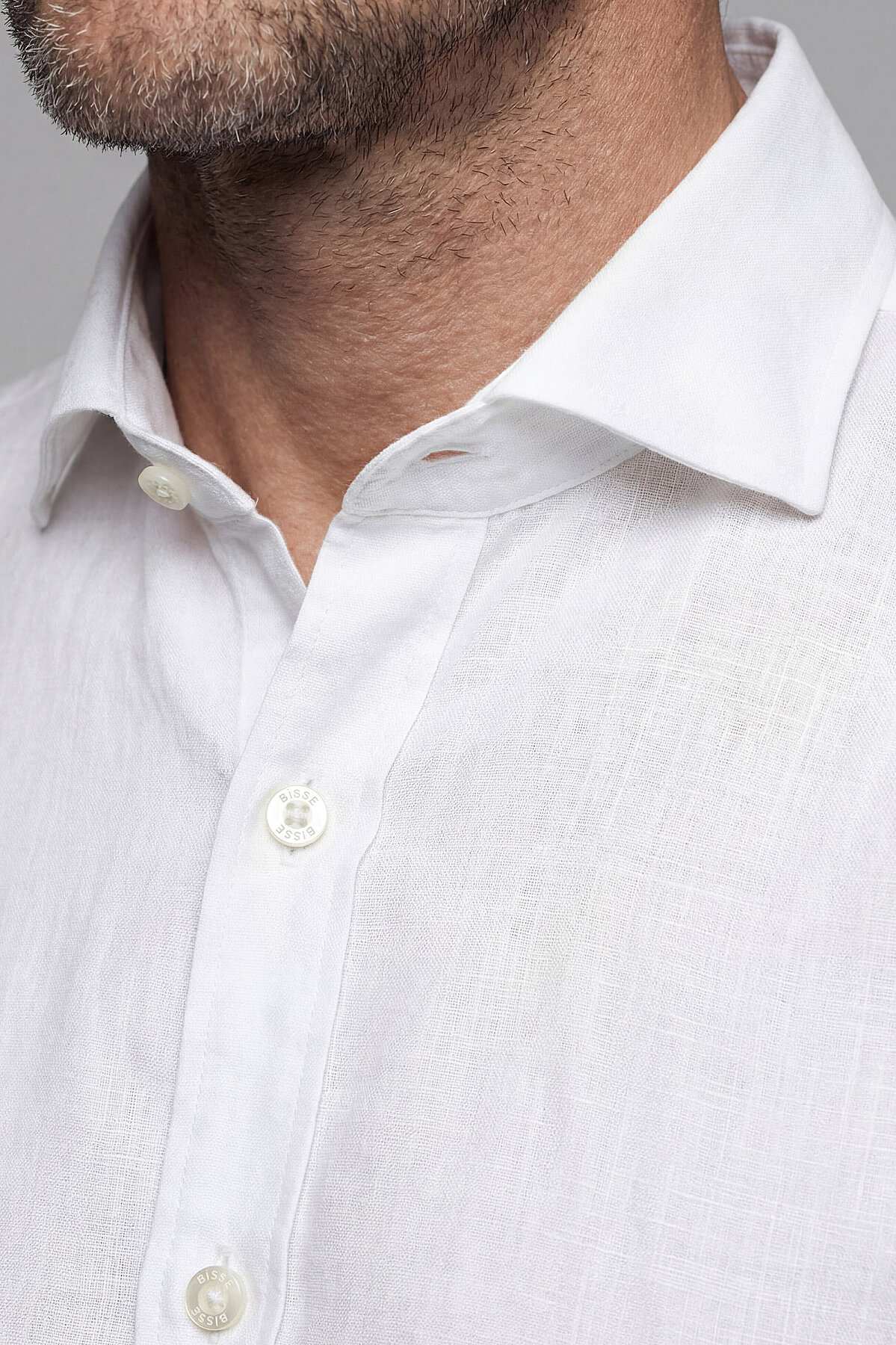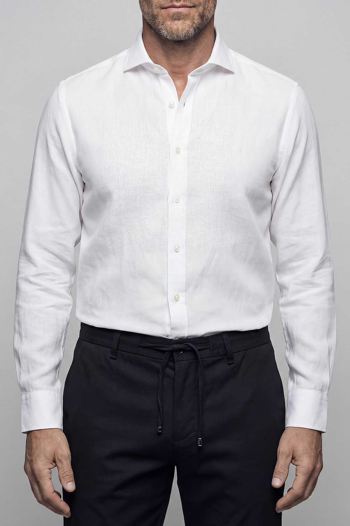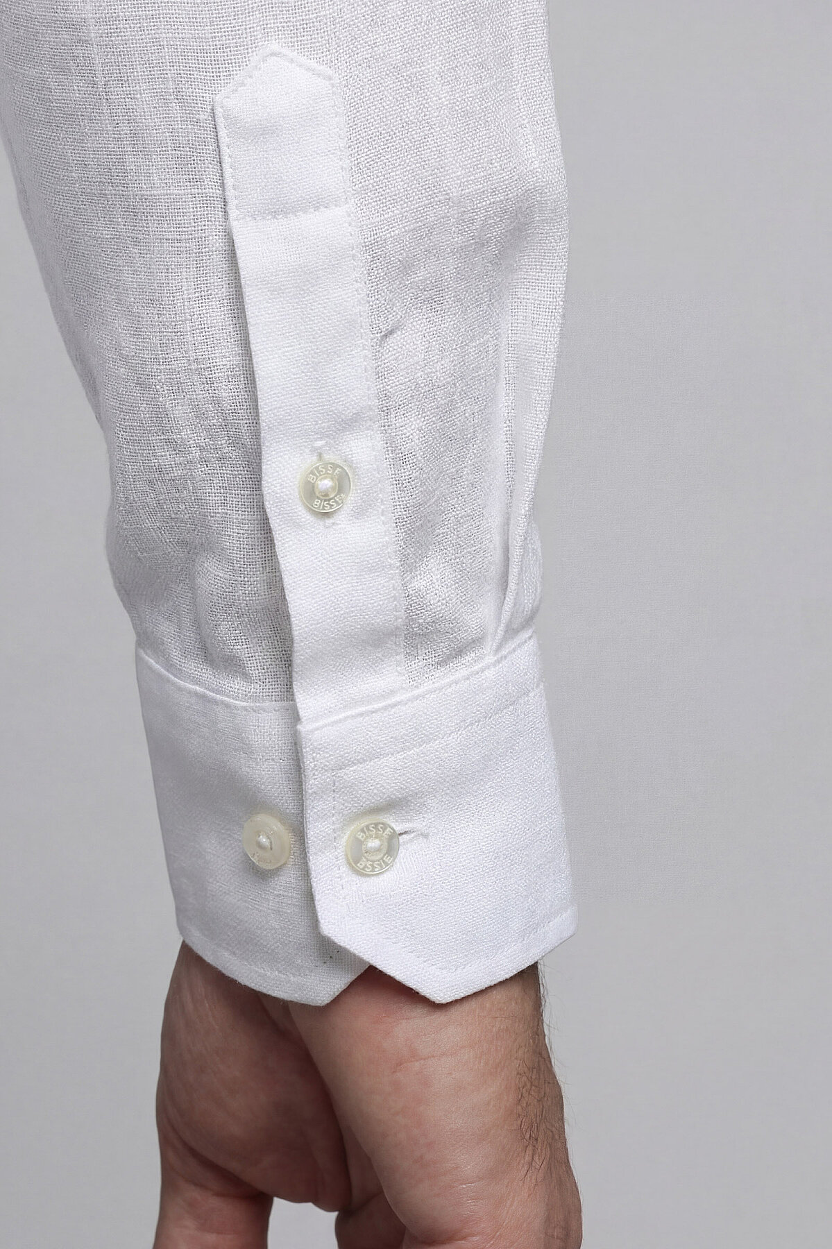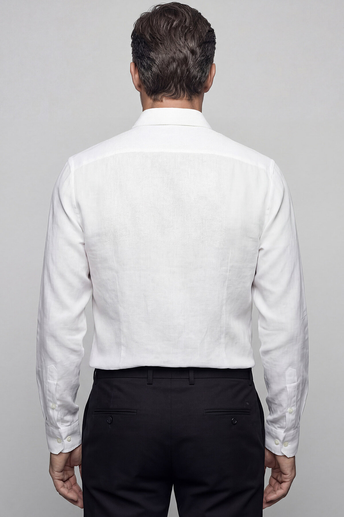 Regular Fit Kol İçi Apoletli Keten Beyaz Erkek Gömlek