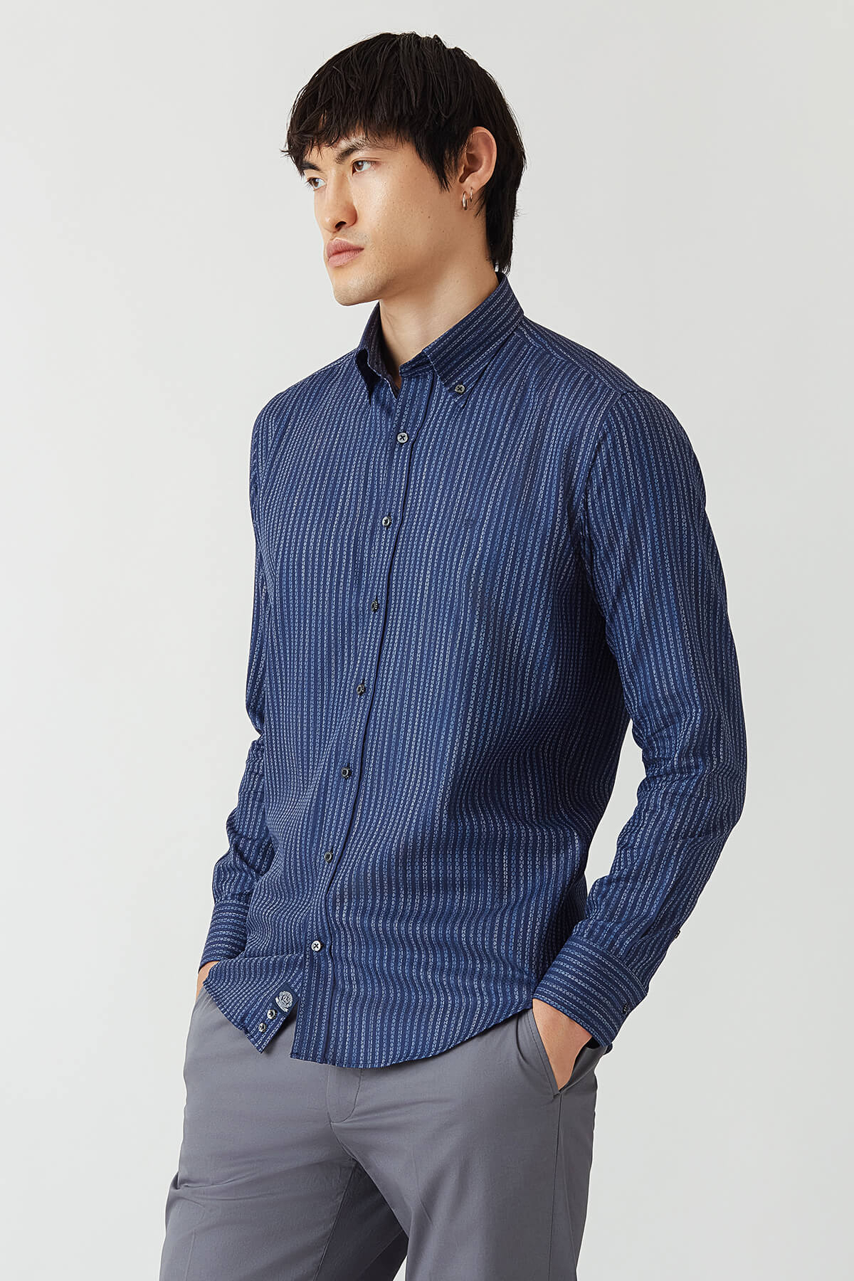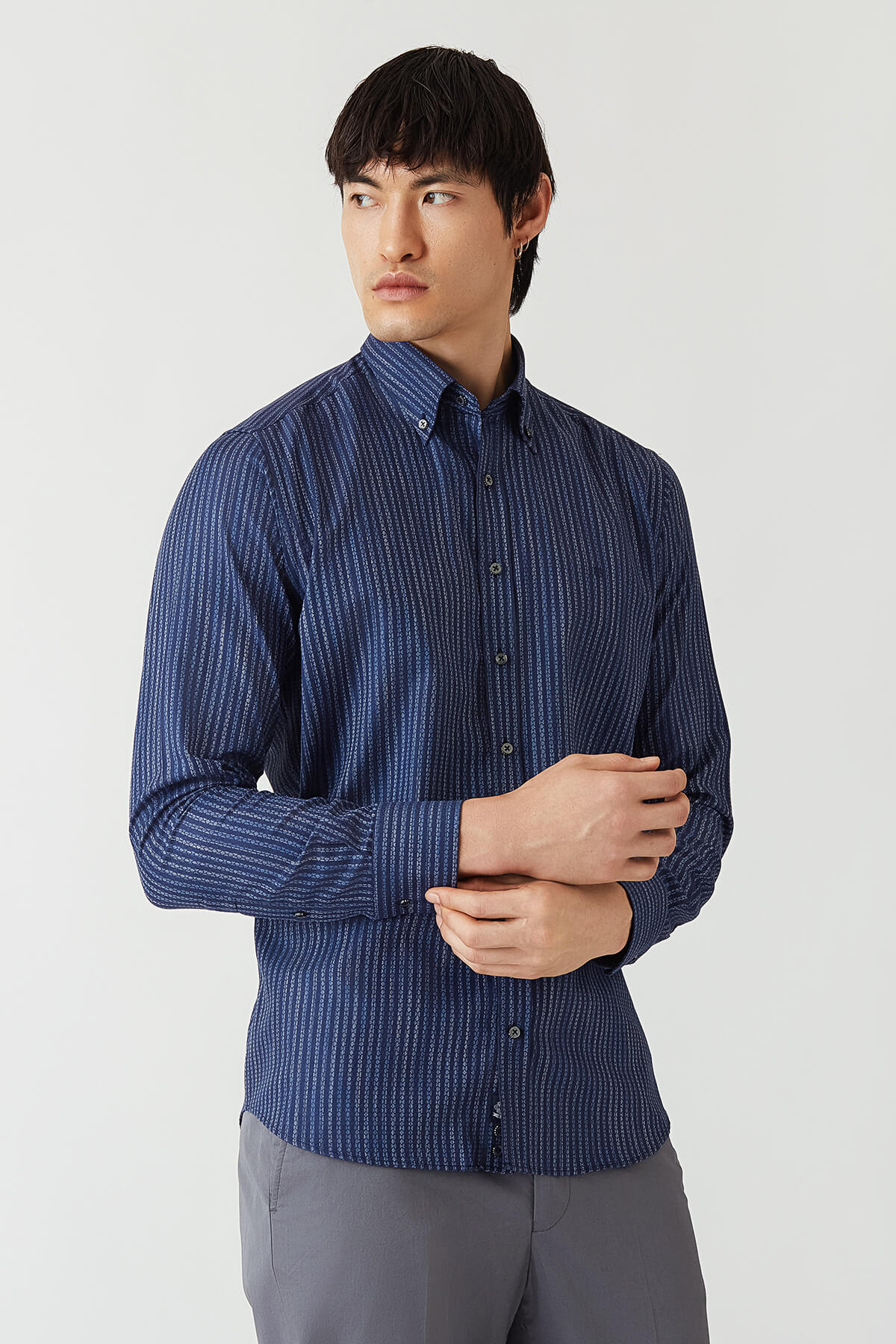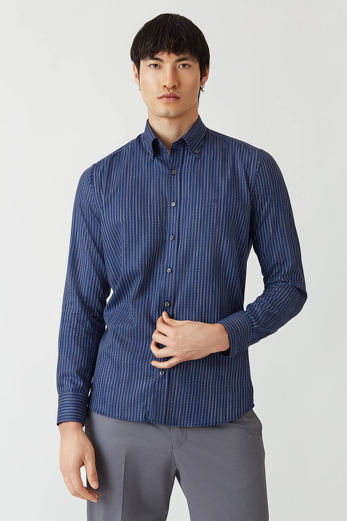 Regular Fit Lacivert Düğmeli Yaka Spor Erkek Gömlek