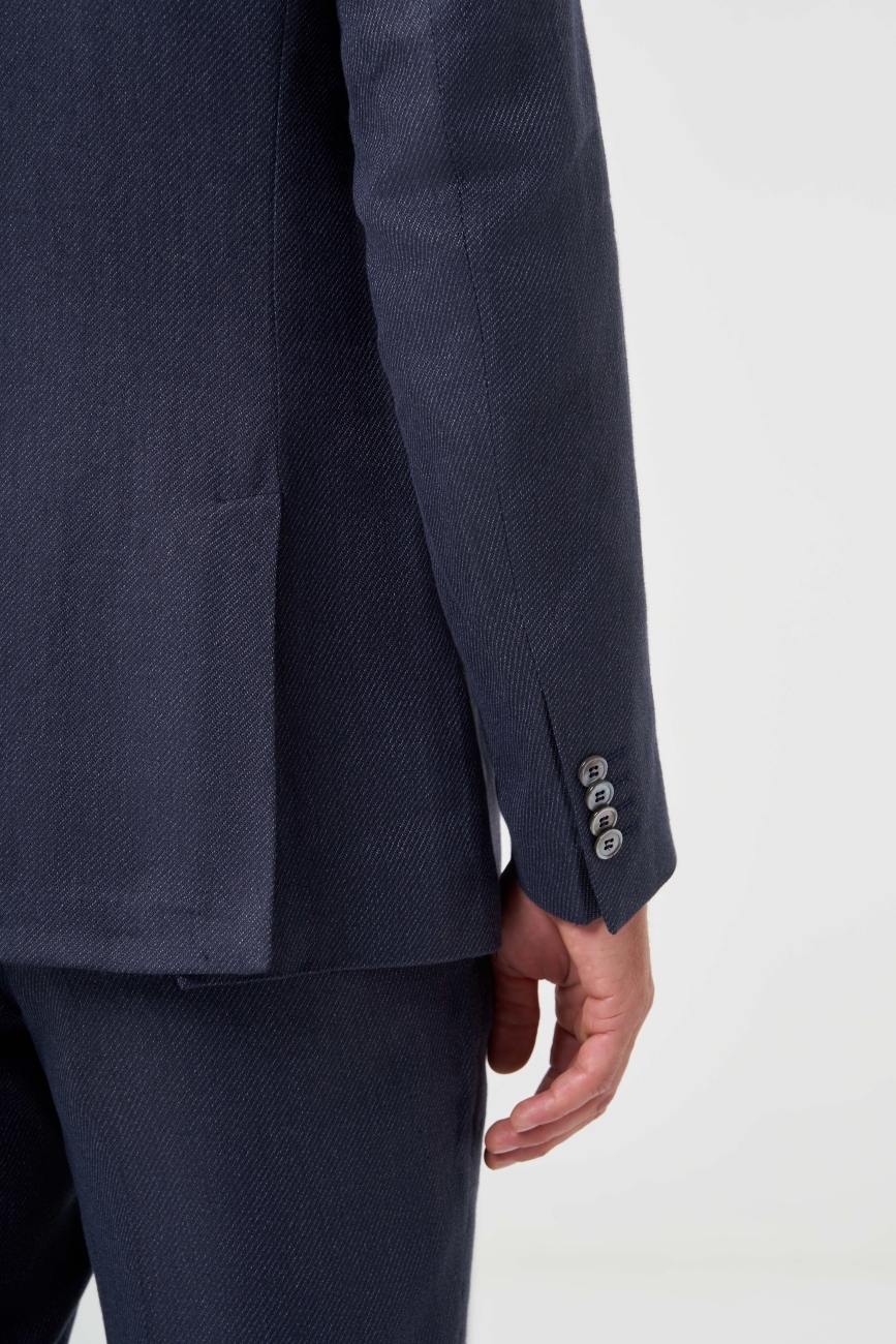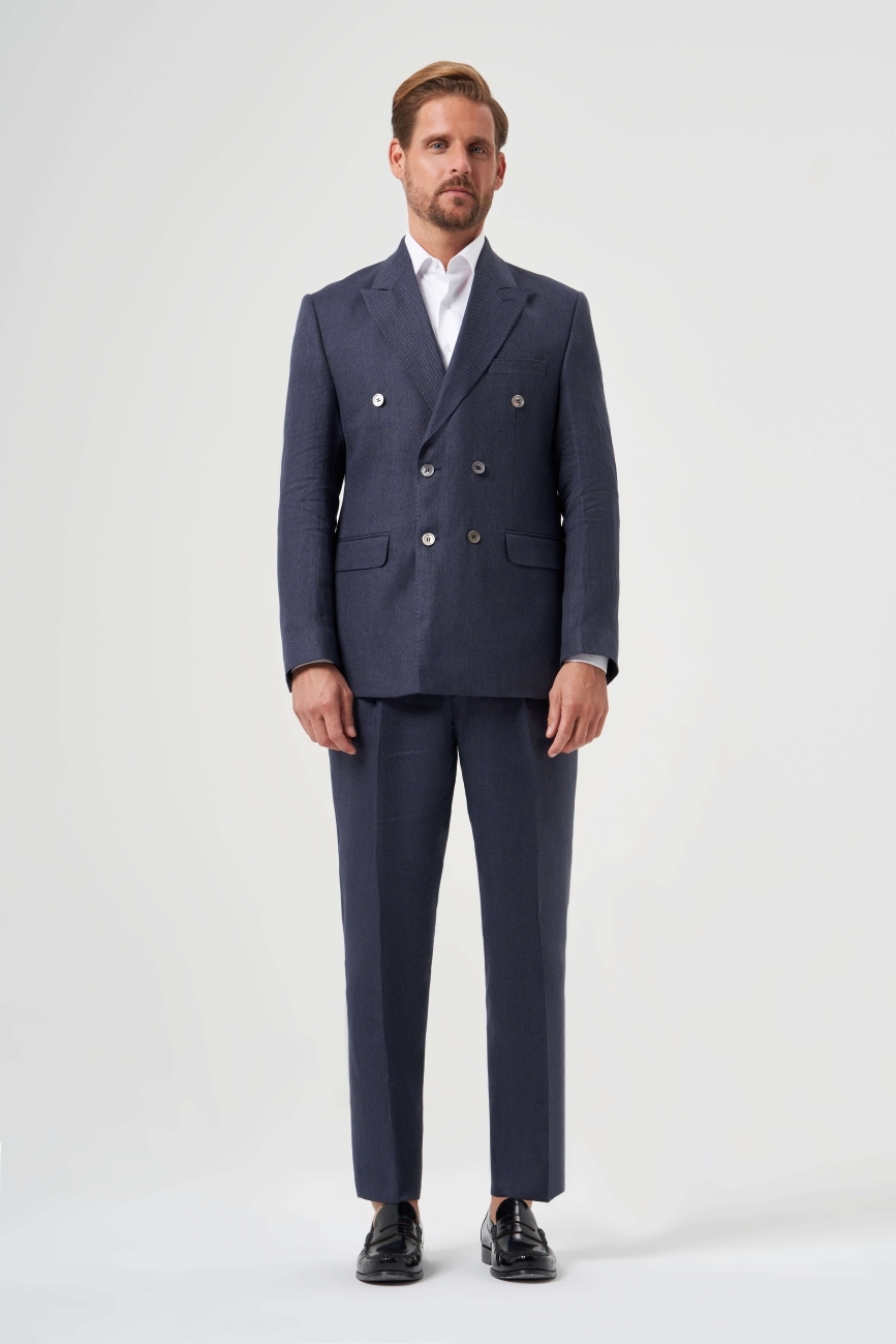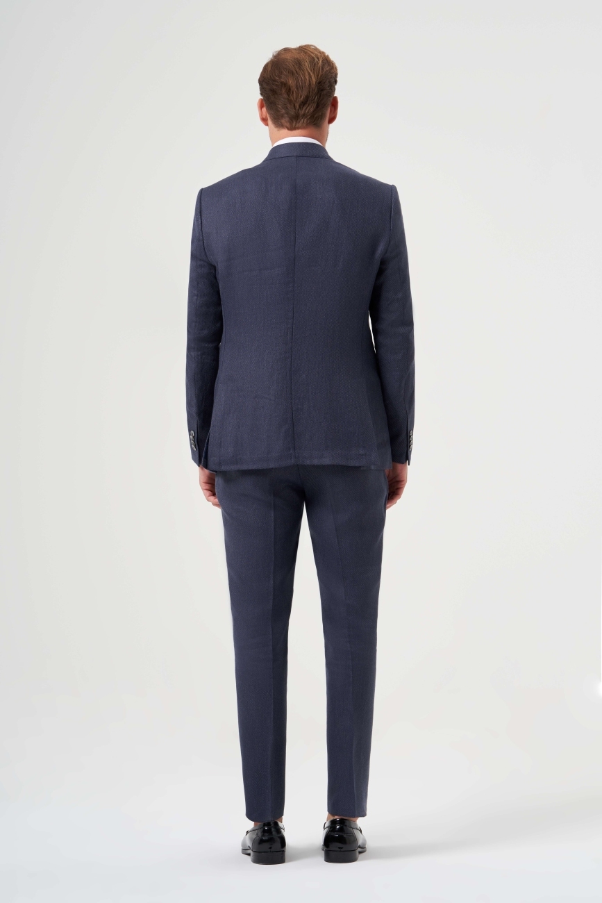 Regular Fit Lacivert Erkek Pamuk Keten Takım Elbise