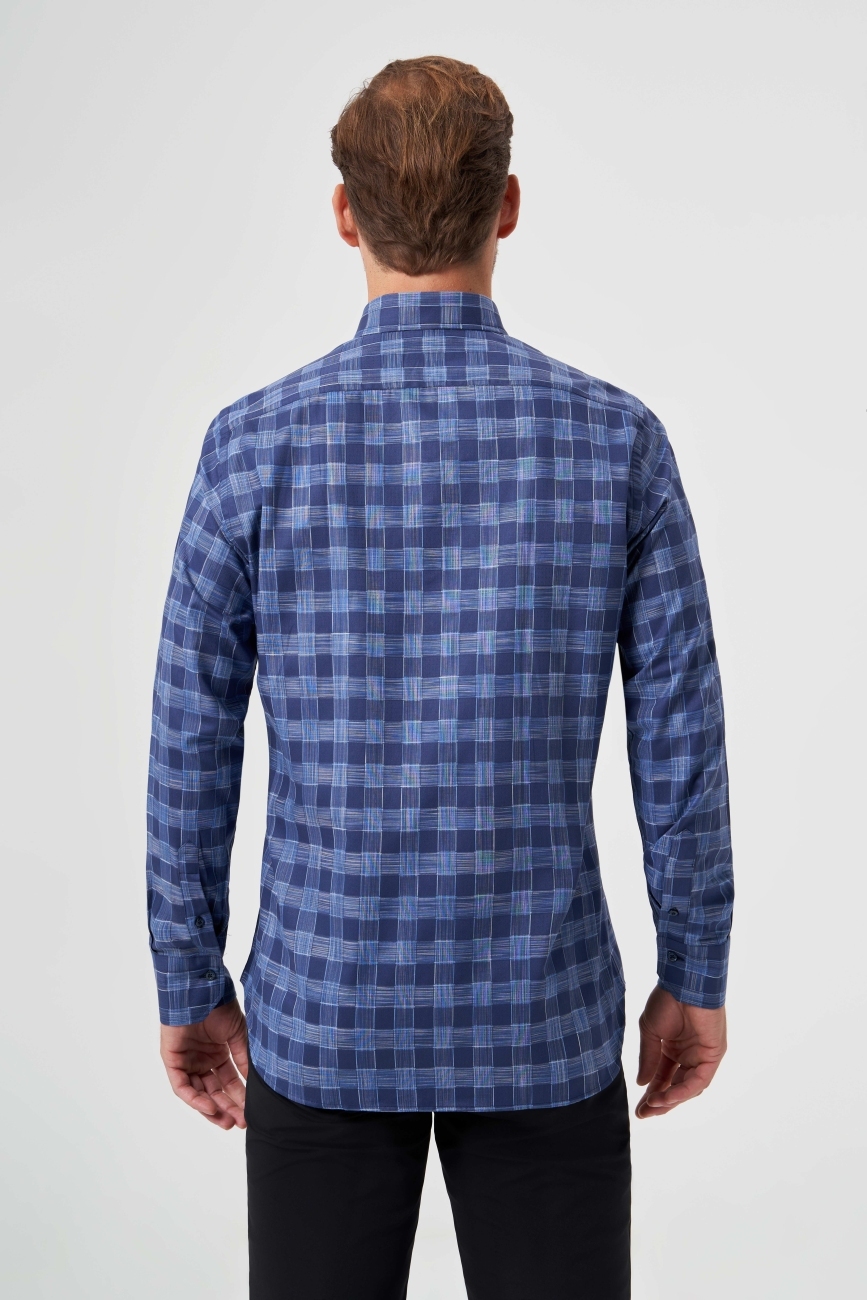 Regular Fit Lacivert Yazlık Kareli Paşa Yaka Erkek Gömlek
