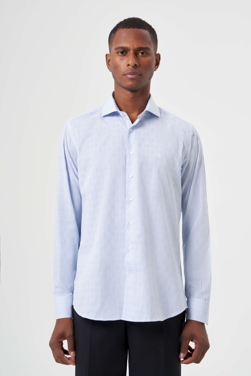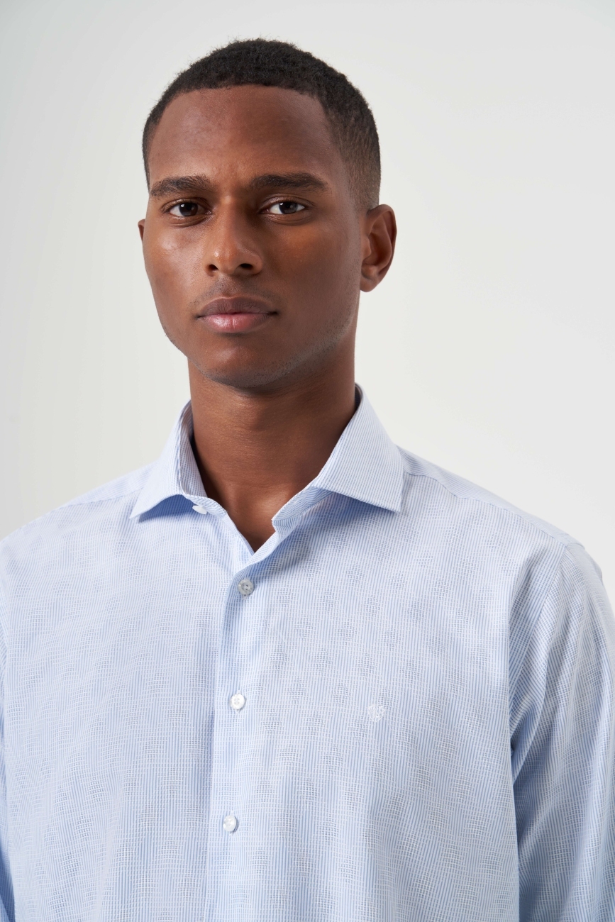 Regular Fit Mavi Çizgili İtalyan Yaka Klasik Erkek Gömlek