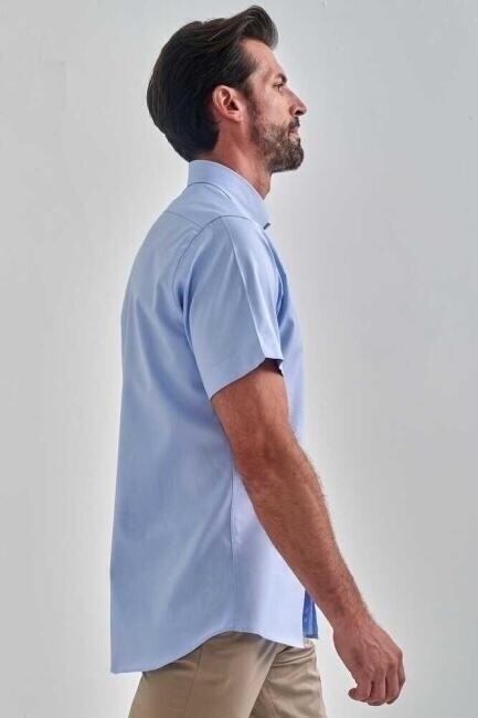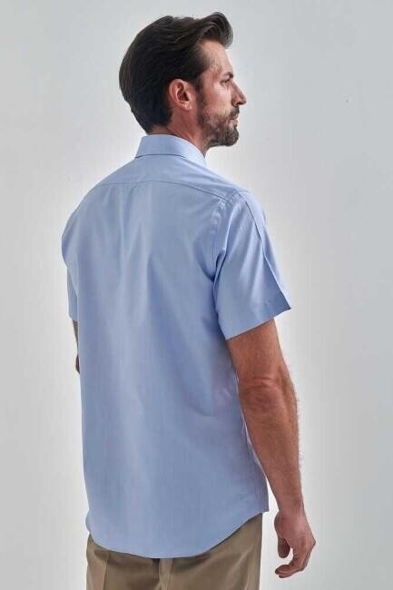 Regular Fit Mavi Kısa Kol Paşa Yaka Spor Erkek Gömlek Mavi