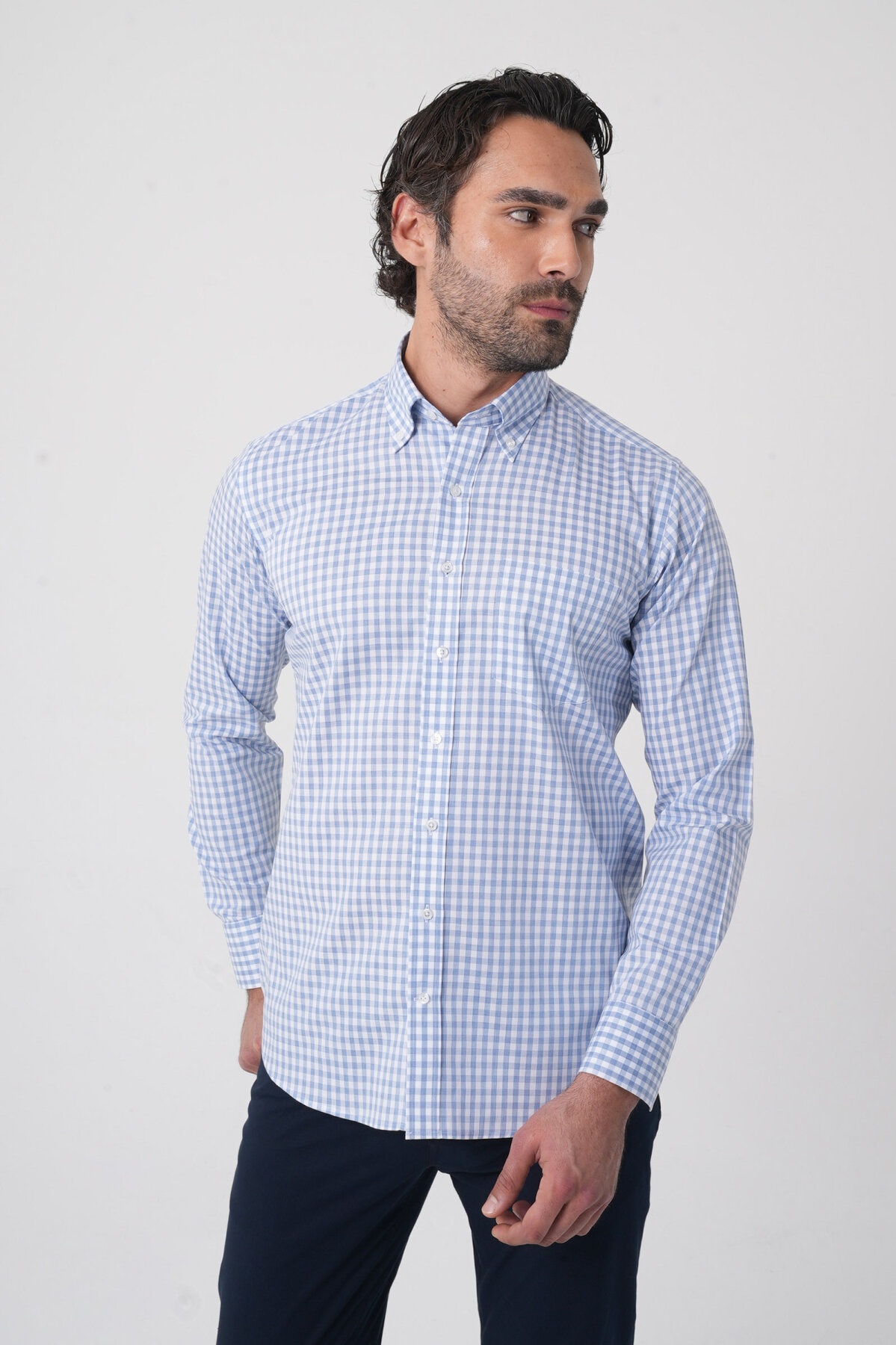 Regular Fit Pamuk Mavi Erkek Gömlek