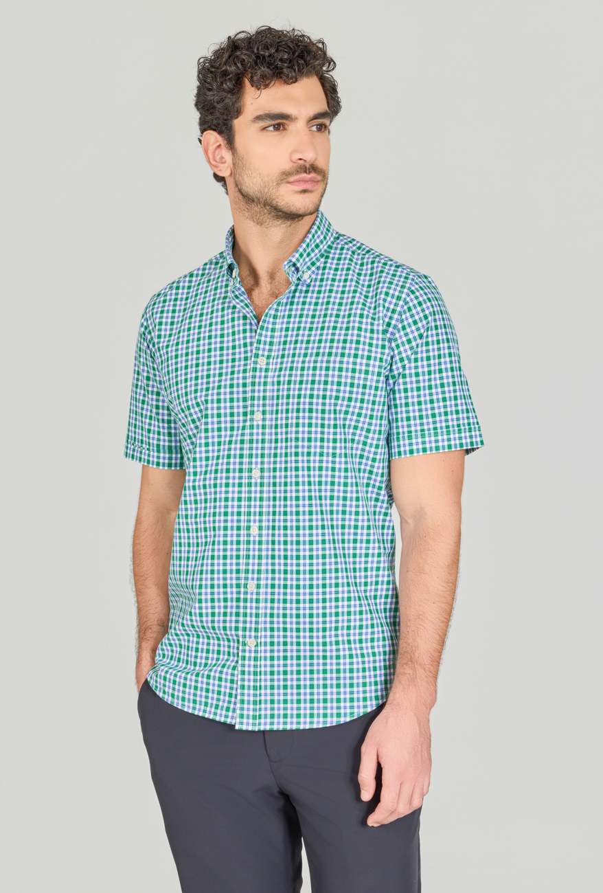 Regular Fit Paşa Yaka Pamuk Yeşil Erkek Gömlek Yeşil