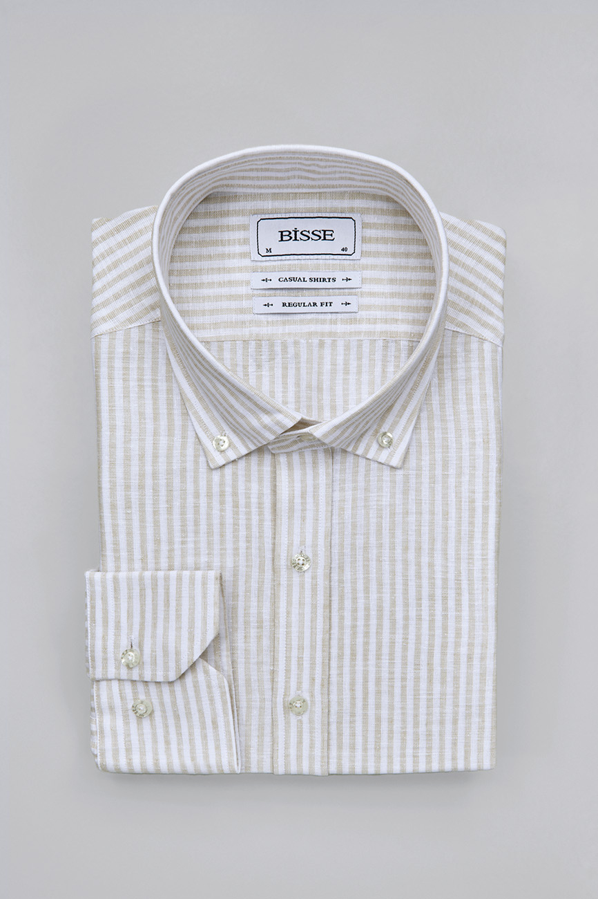 Regular Fit Paşa Yaka Bej Pamuk Keten Erkek Gömlek
