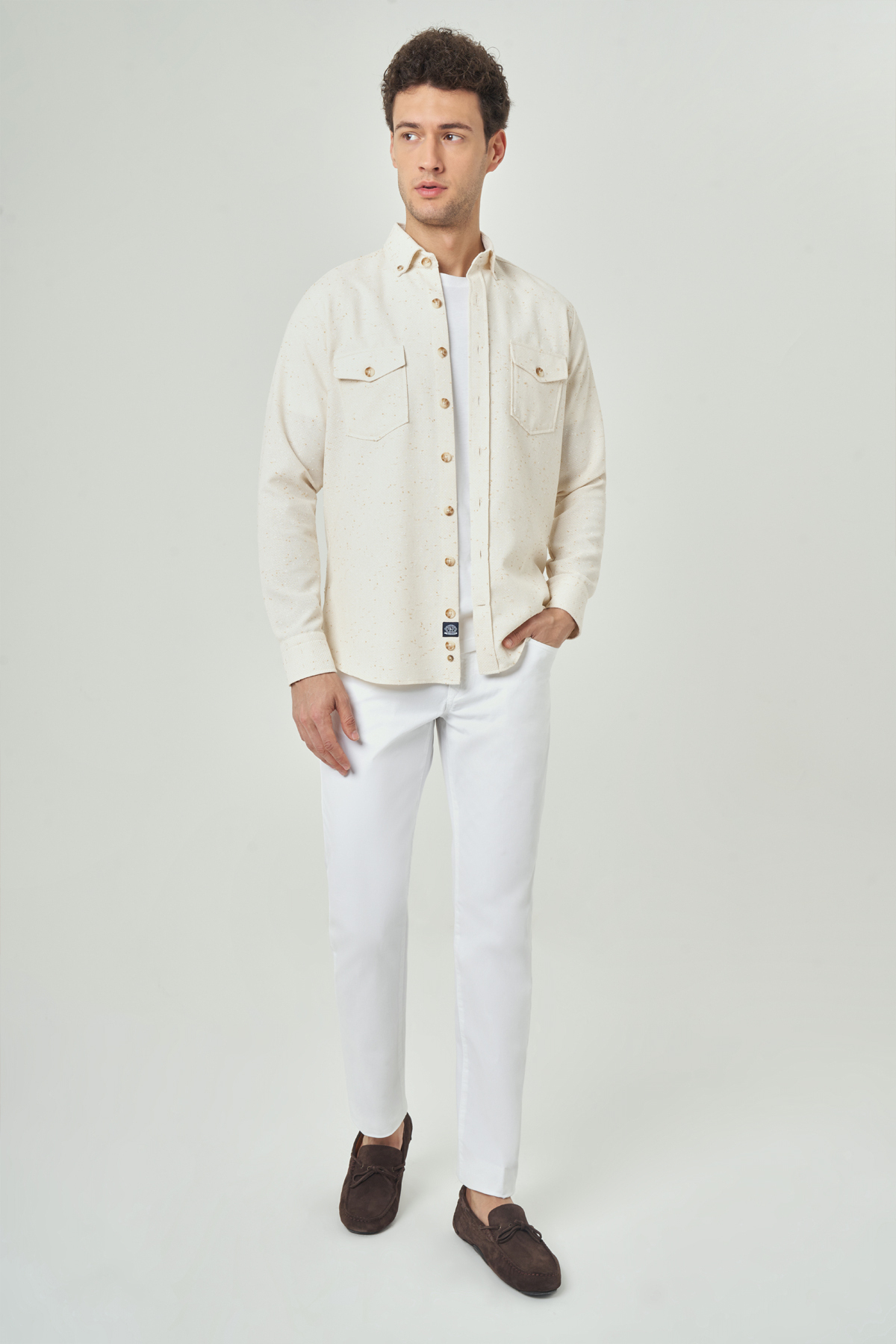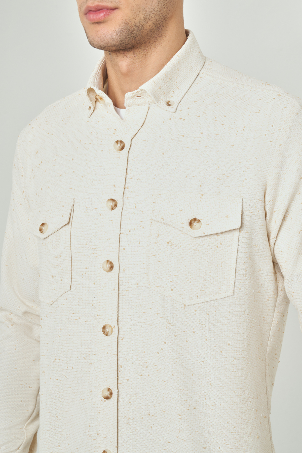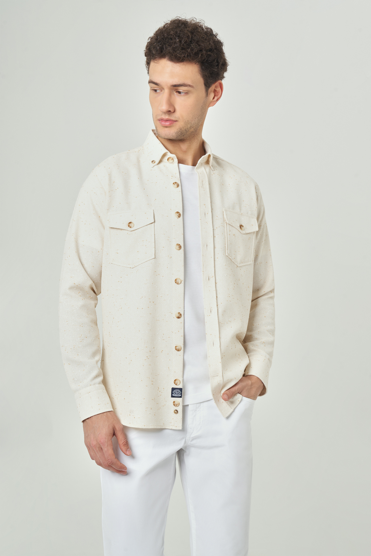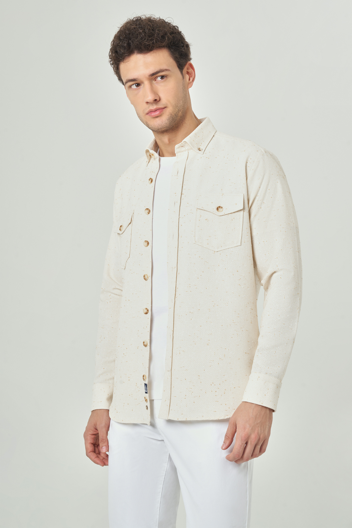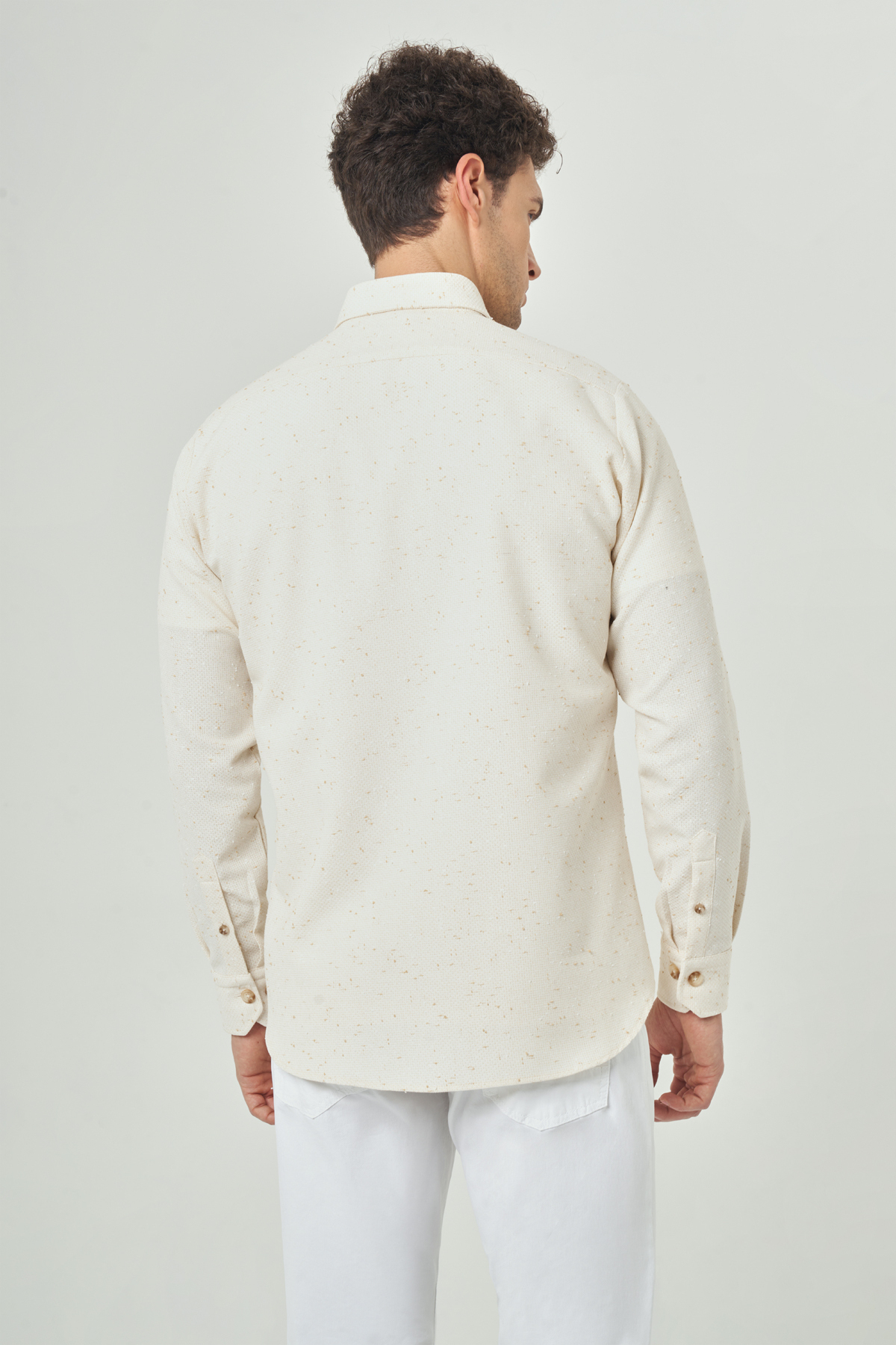Regular Fit Paşa Yaka Bej Spor Erkek Gömlek