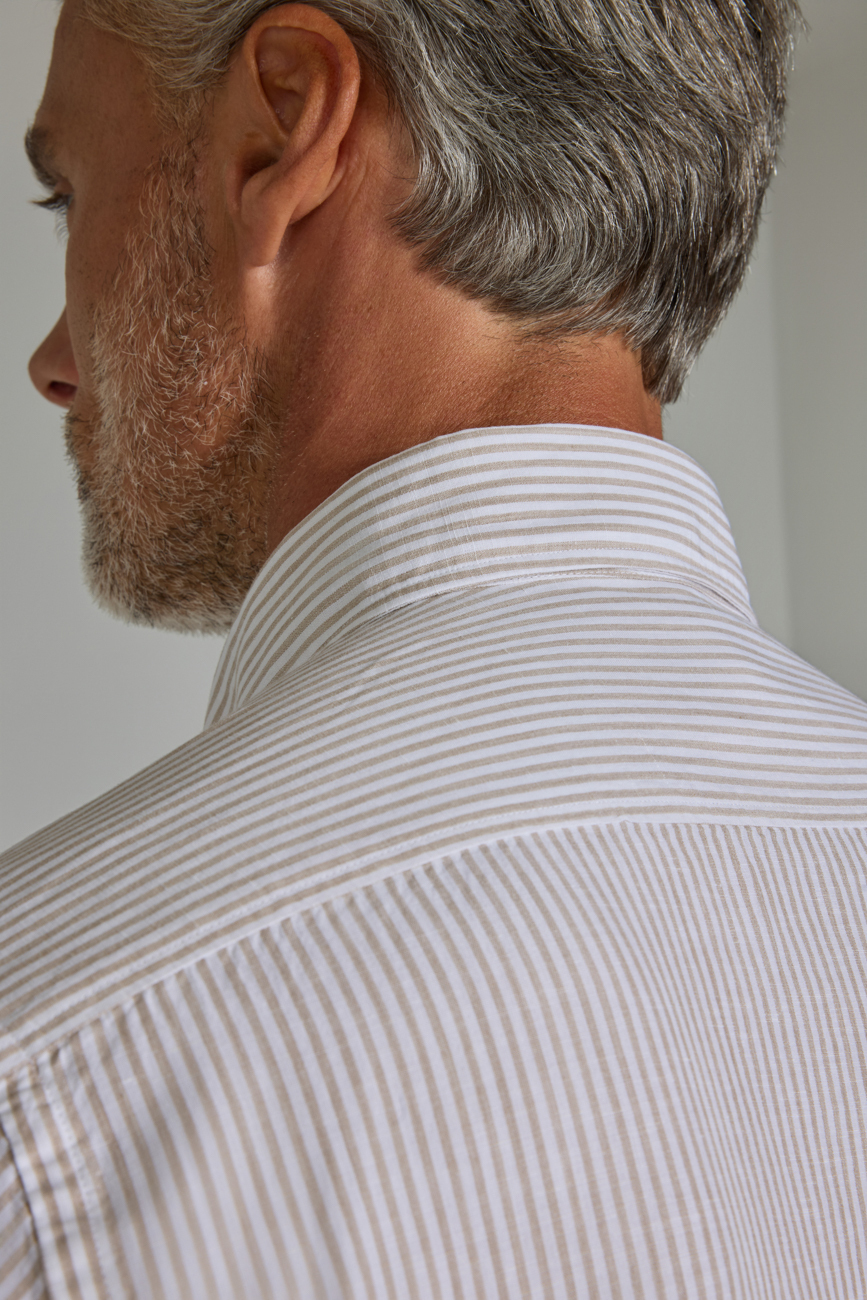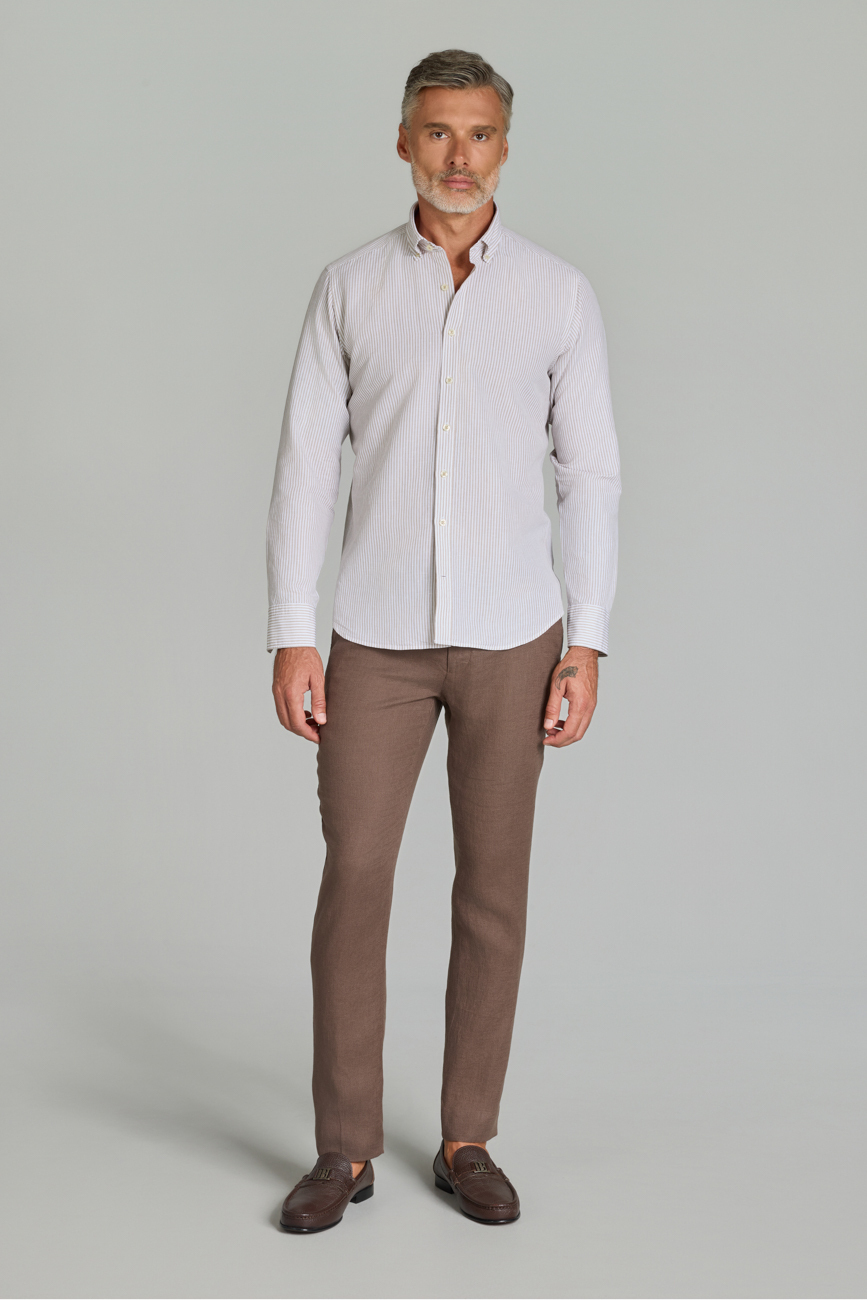 Regular Fit Paşa Yaka Cepsiz Açık Kahve Erkek Gömlek