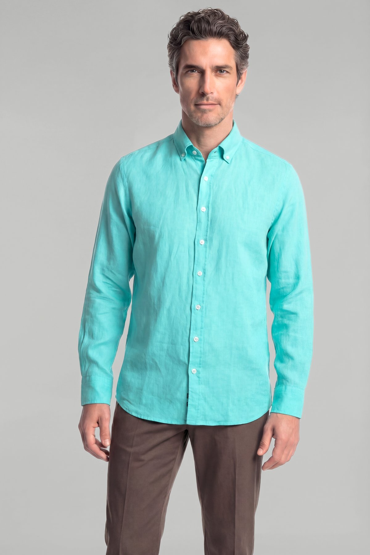 Regular Fit Paşa Yaka Cepsiz Sedef Düğmeli Açık Yeşil Erkek Gömlek
