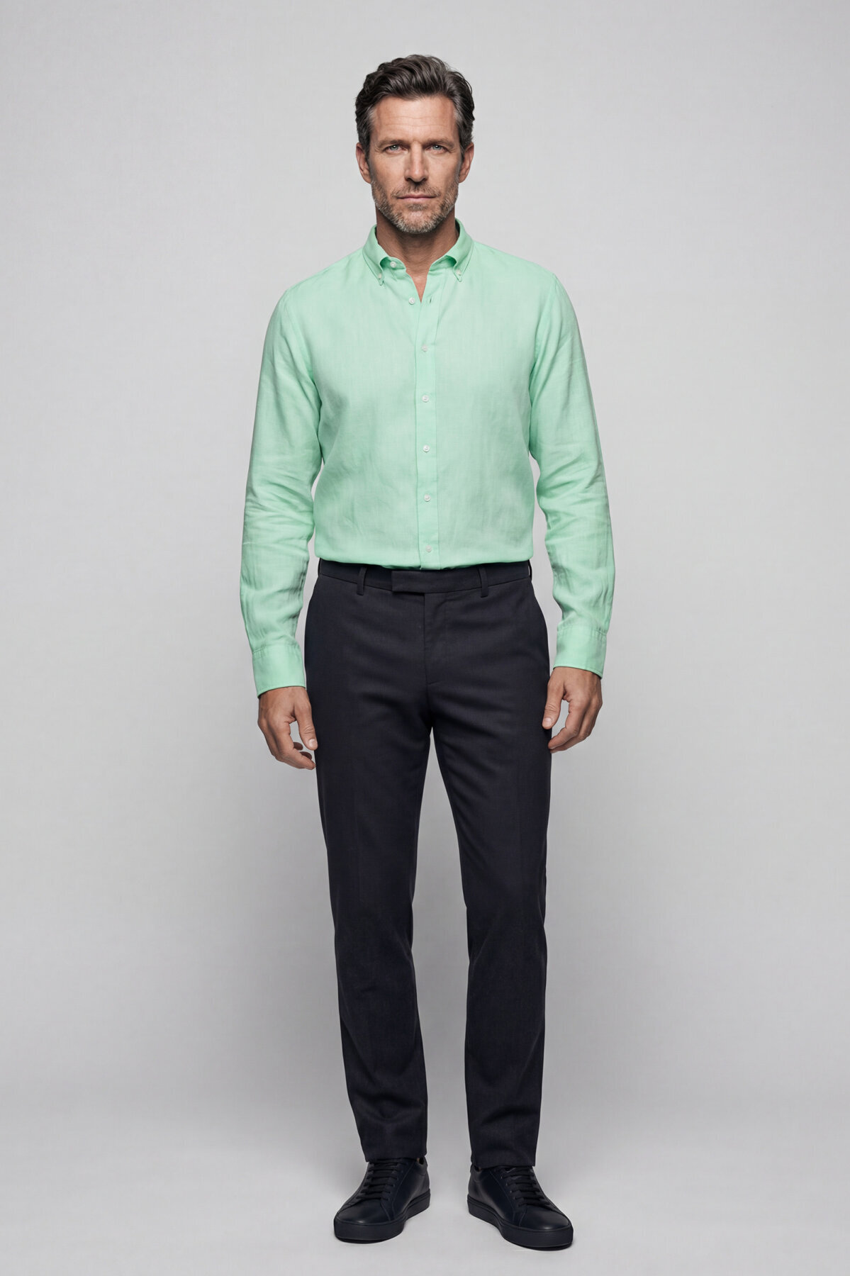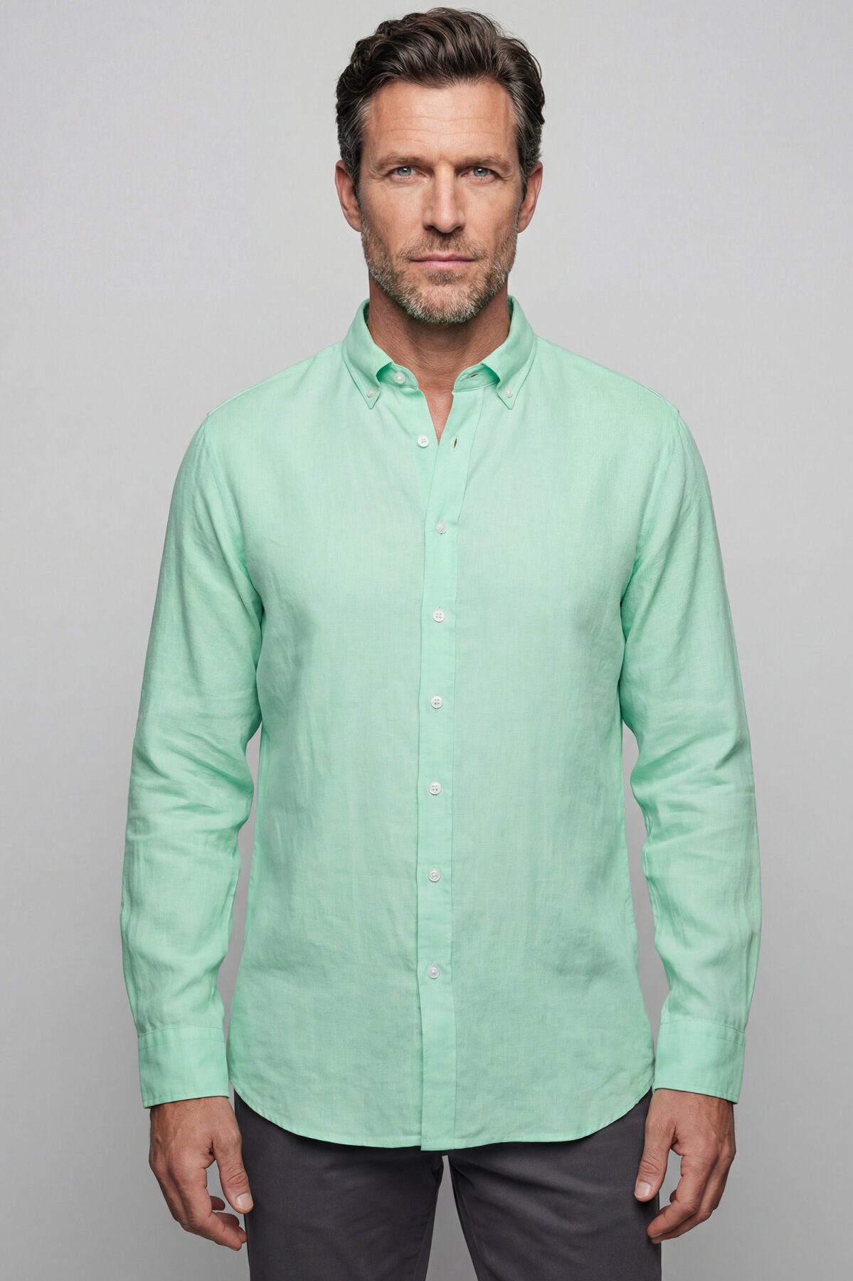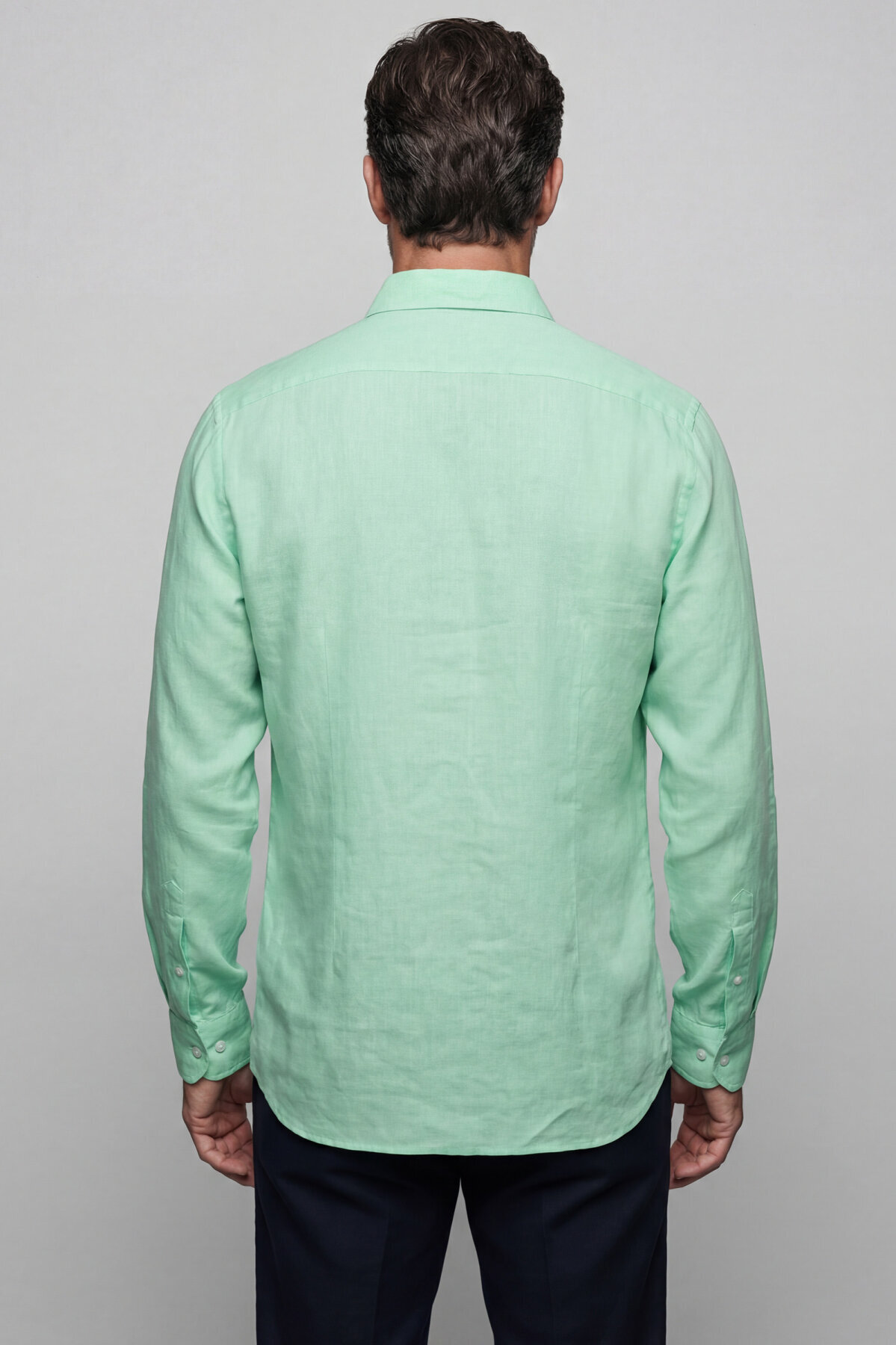 Regular Fit Paşa Yaka Cepsiz Sedef Düğmeli Su Yeşili Erkek Gömlek