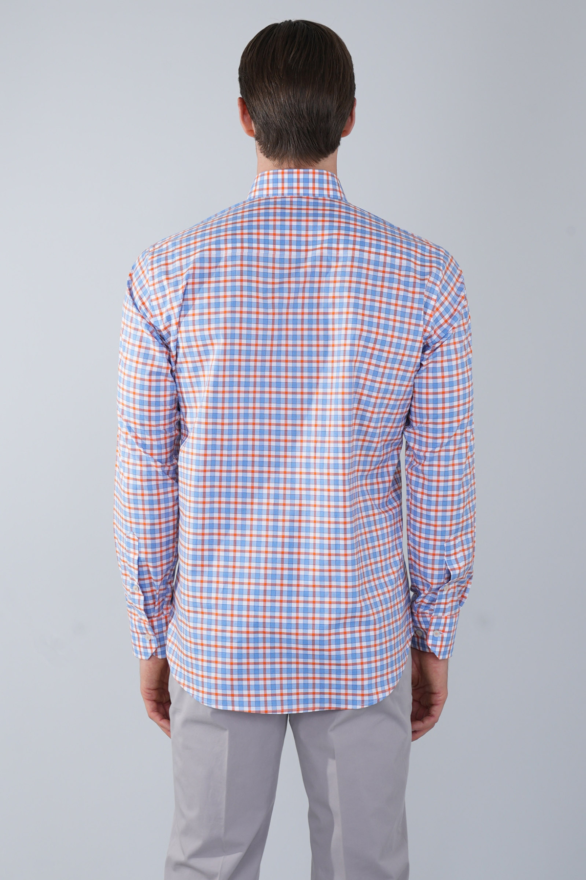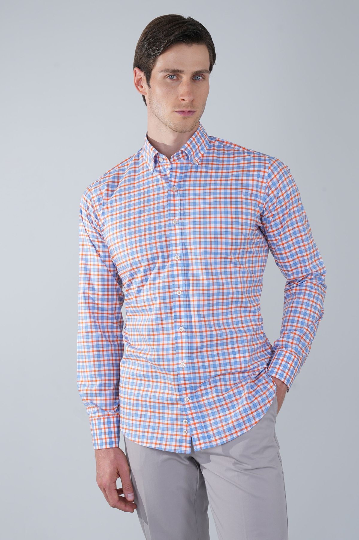 Regular Fit Paşa Yaka Cepsiz Turuncu Pamuk Erkek Gömlek