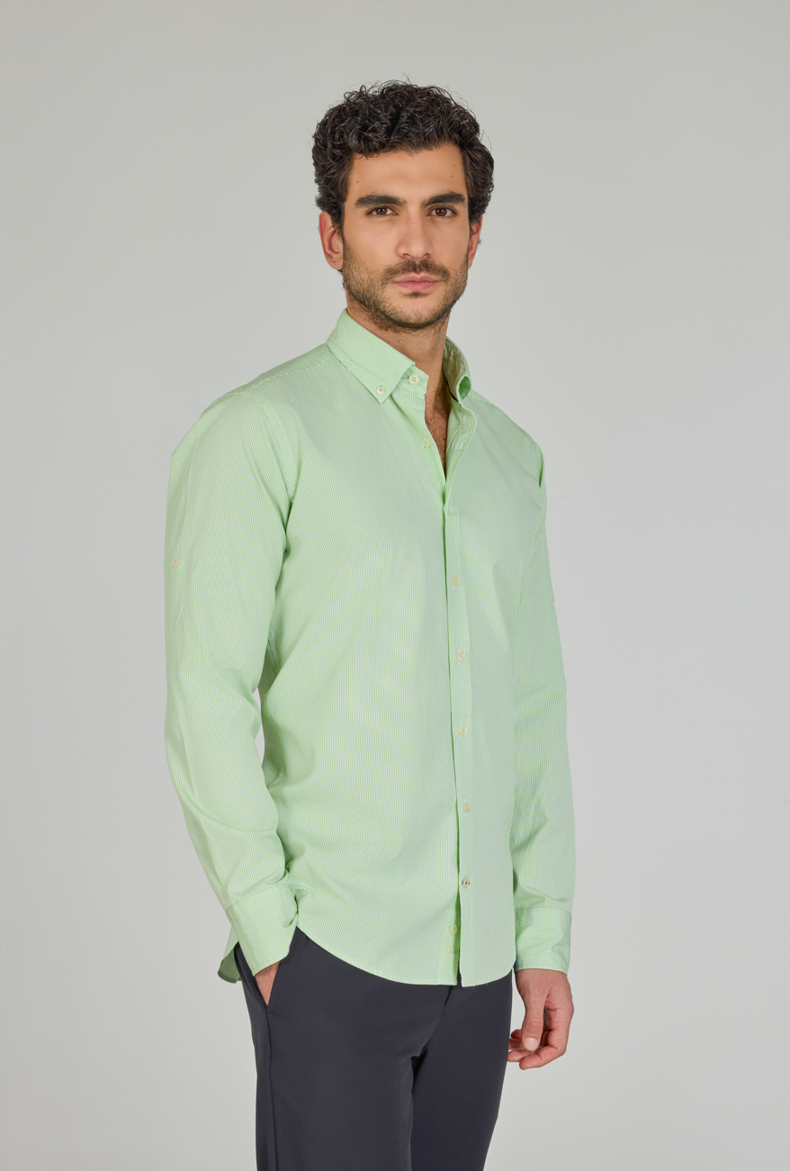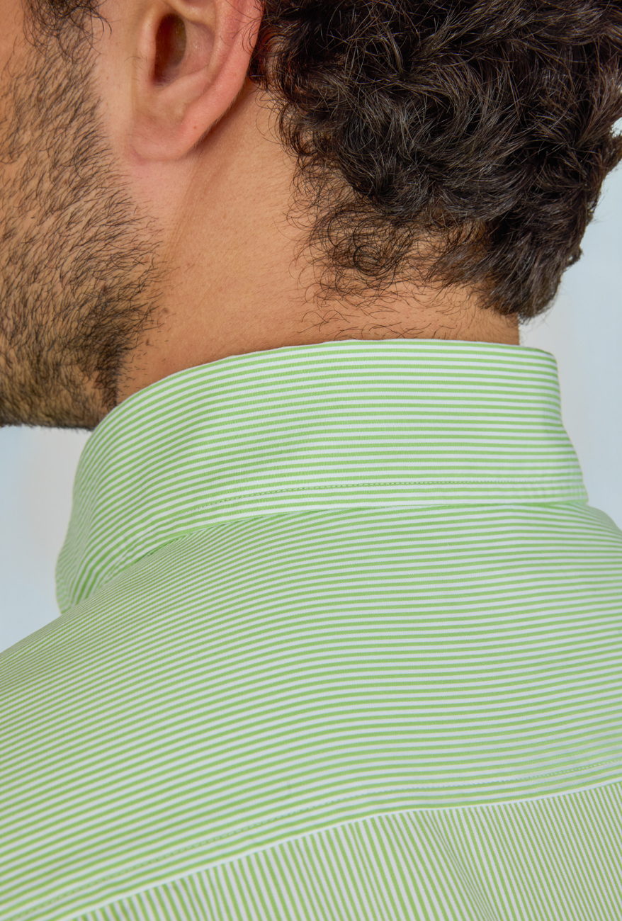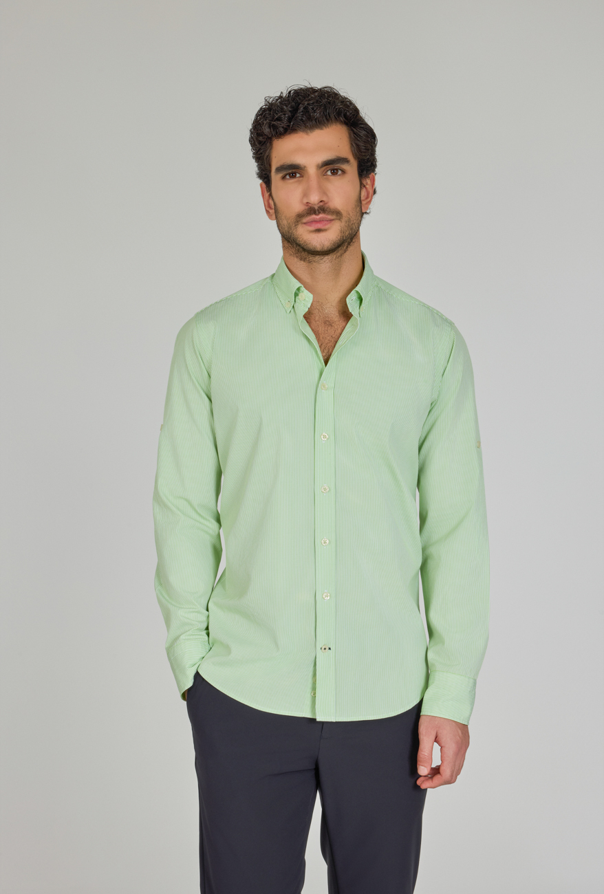 Regular Fit Paşa Yaka Cepsiz Yeşil Pamuk Erkek Gömlek