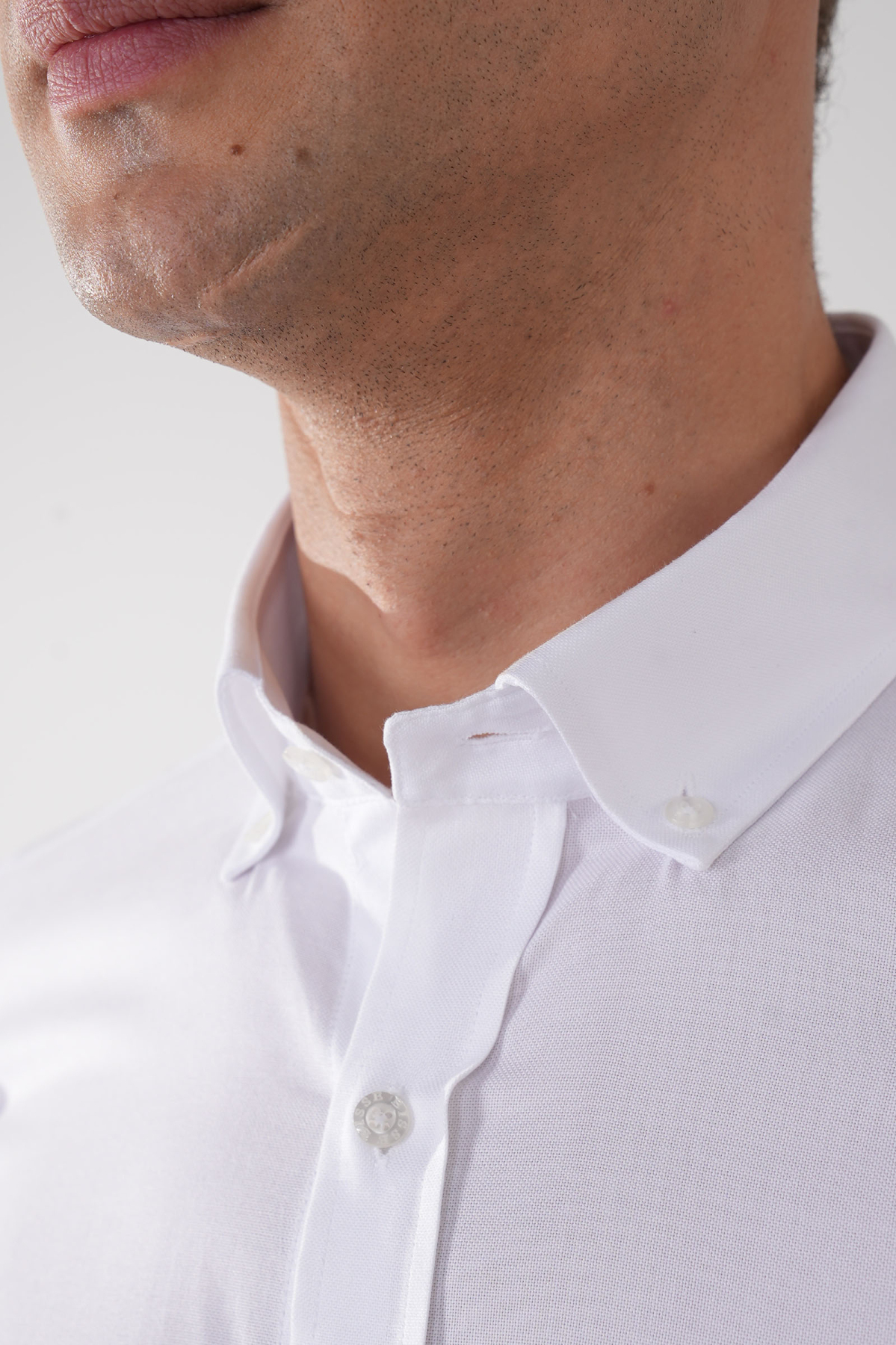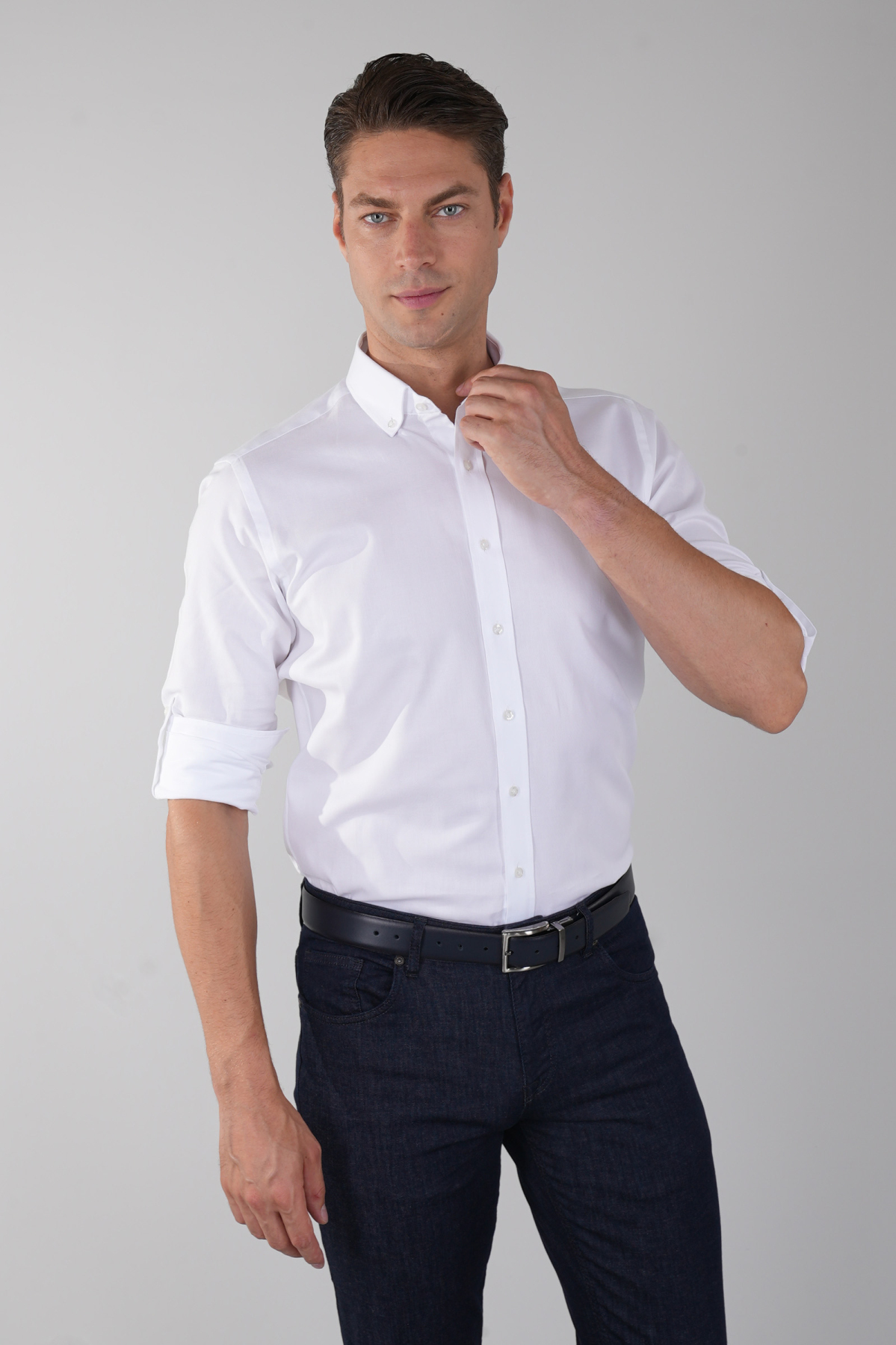 Regular Fit Paşa Yaka Düğmeli Beyaz Pamuk Erkek Gömlek
