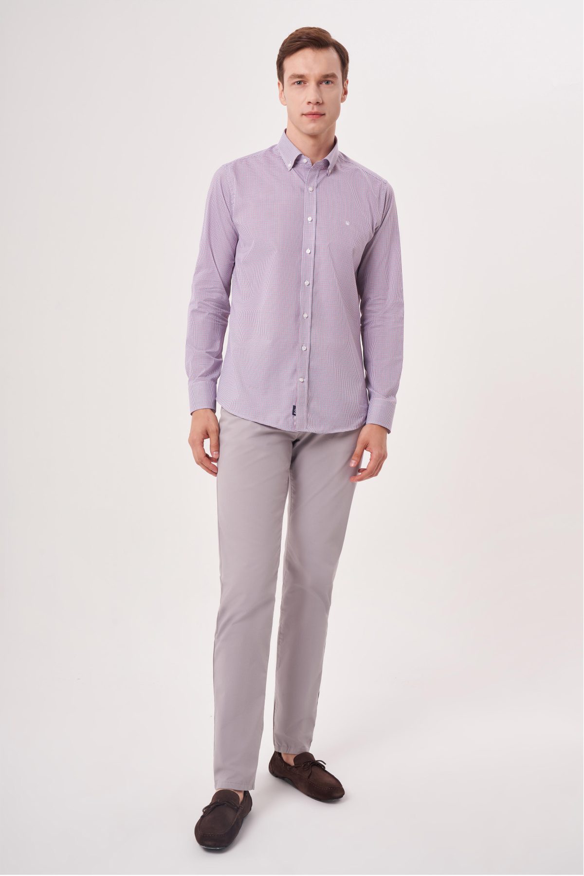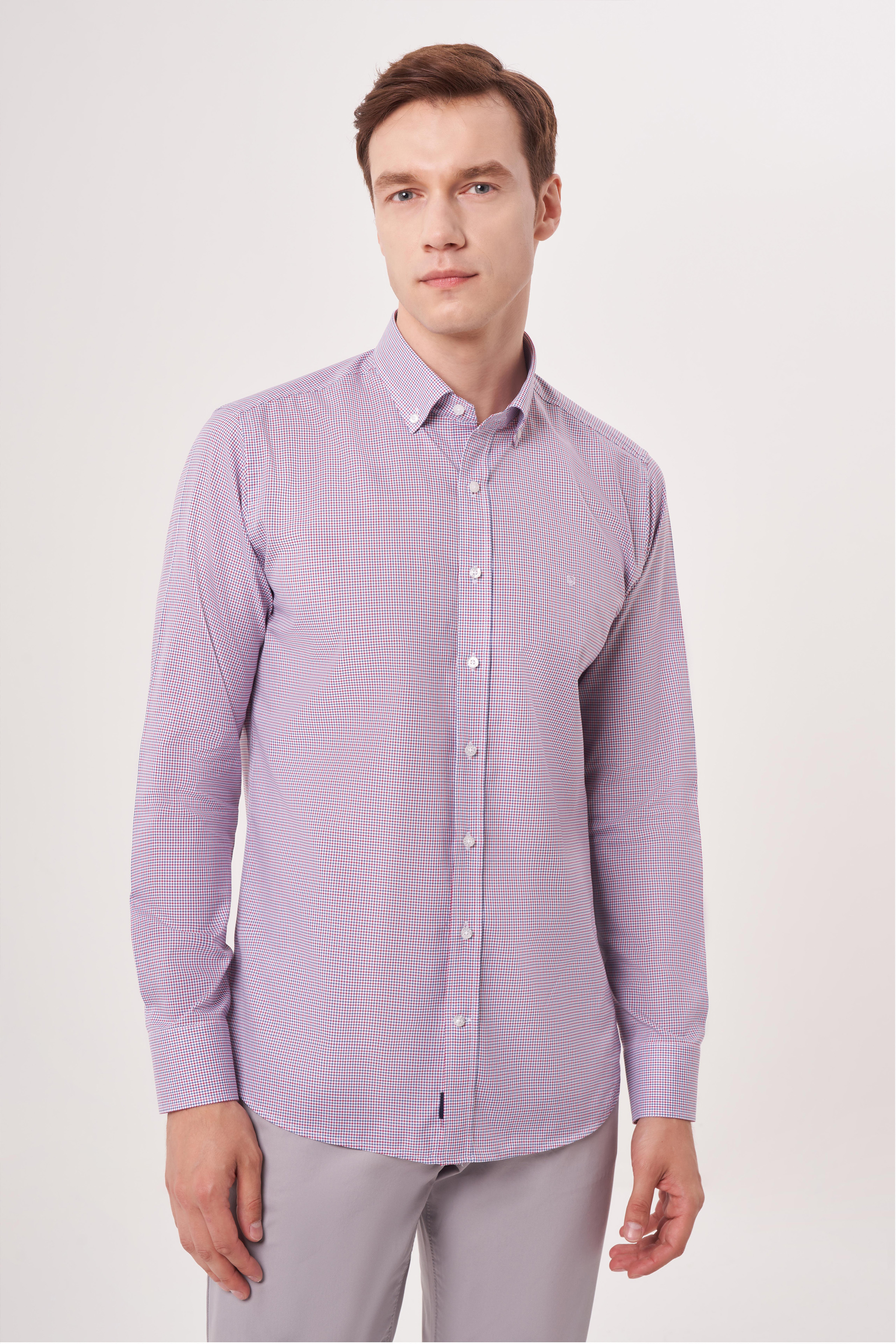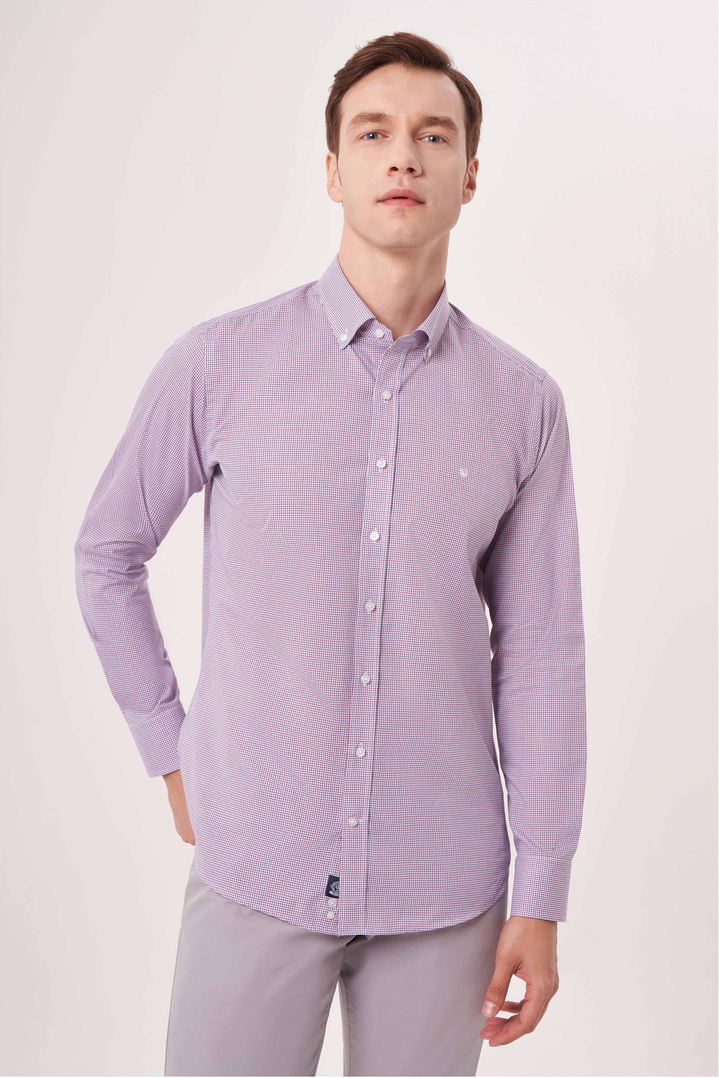 Regular Fit Paşa Yaka Düğmeli Kırmızı Erkek Gömlek
