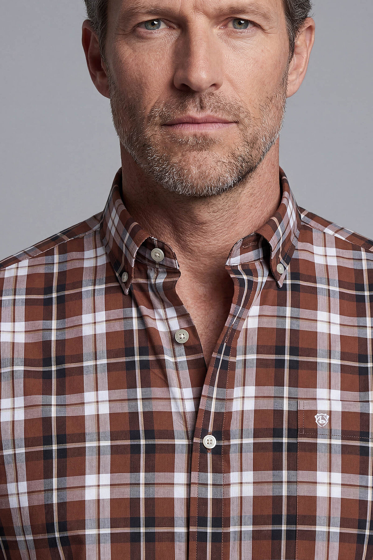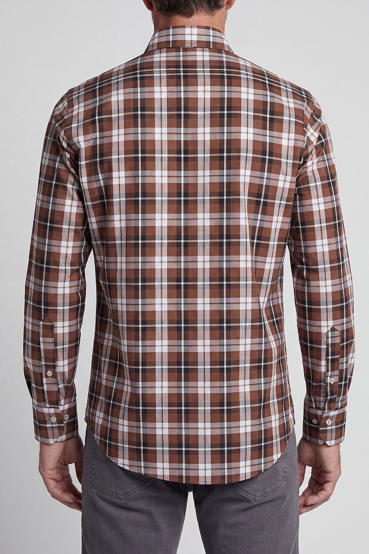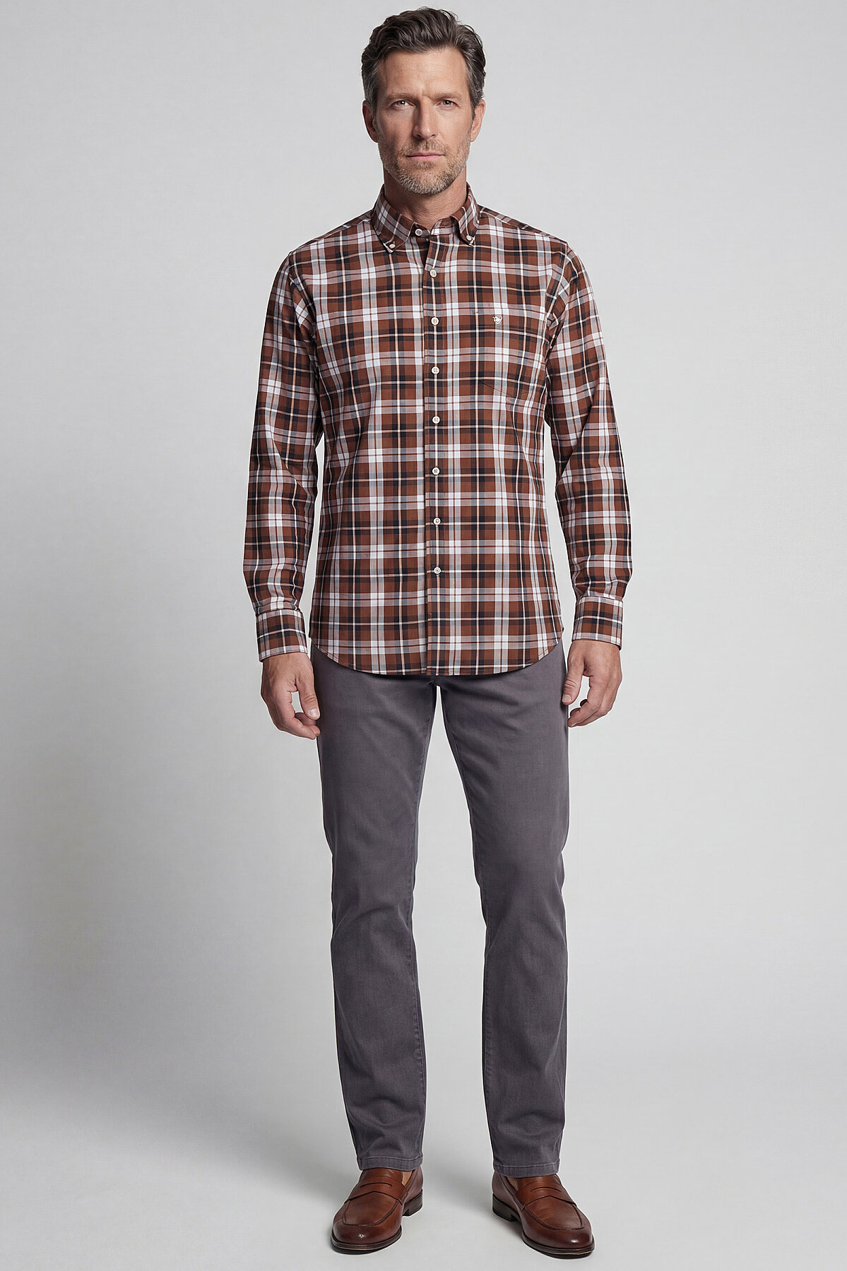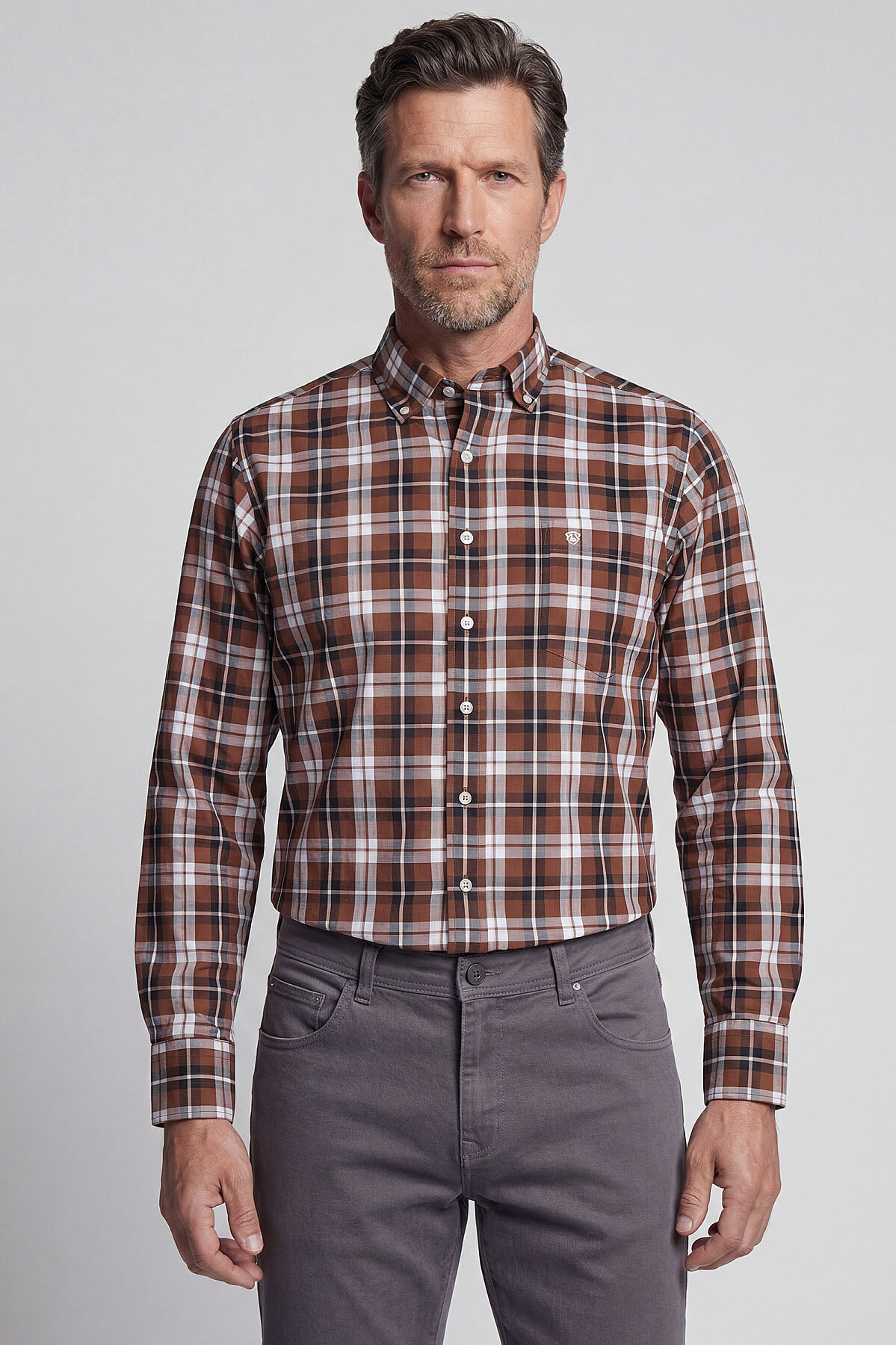 Regular Fit Paşa Yaka Ekose Pamuk Kahve Erkek Gömlek