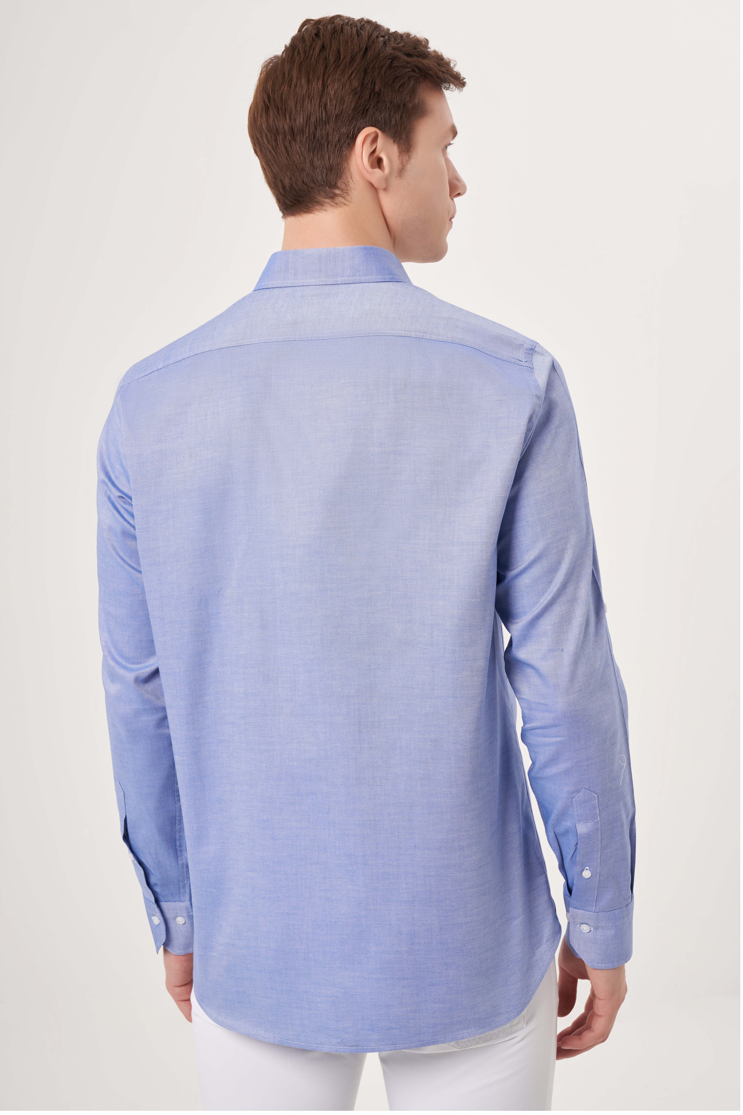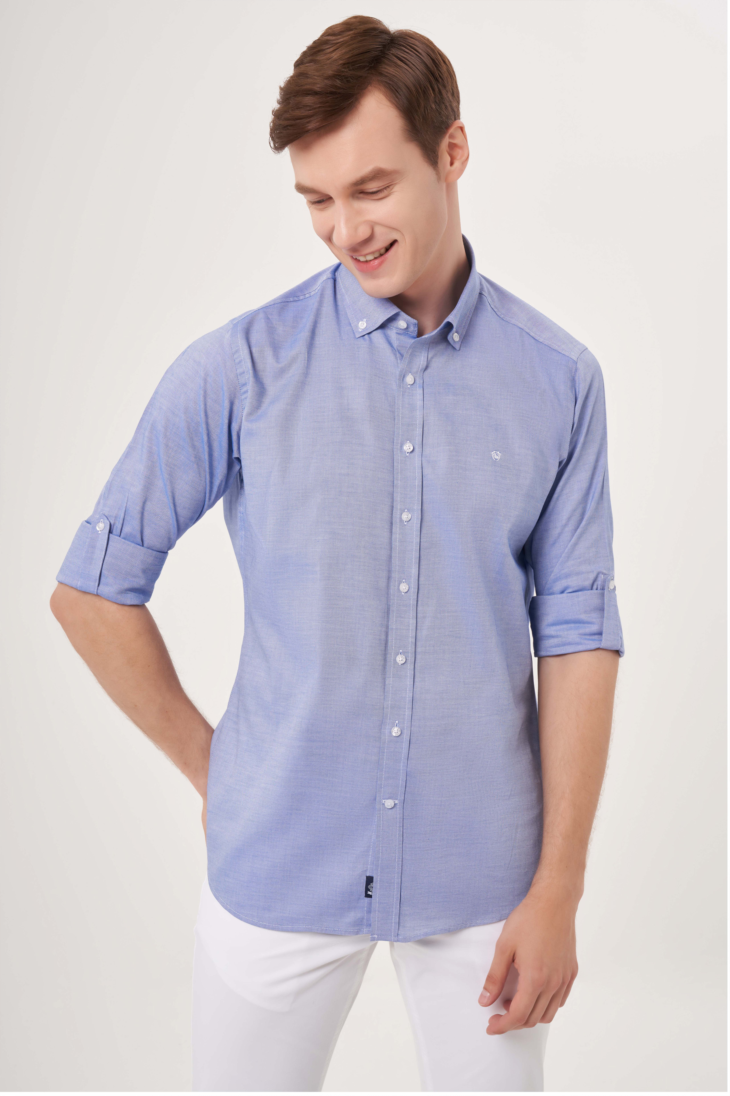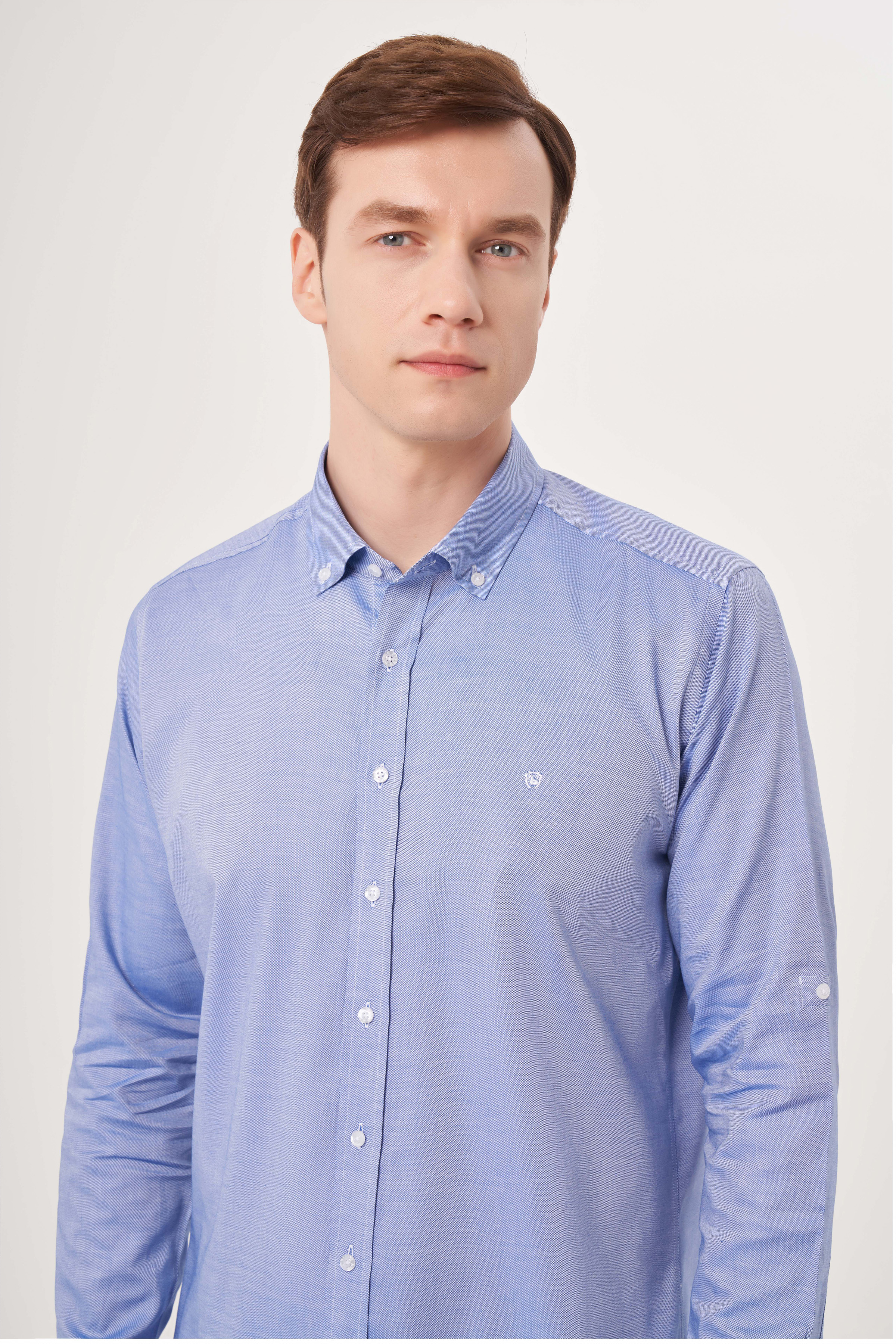 Regular Fit Paşa Yaka Kol İçi Apoletli Mavi Basic Erkek Gömlek