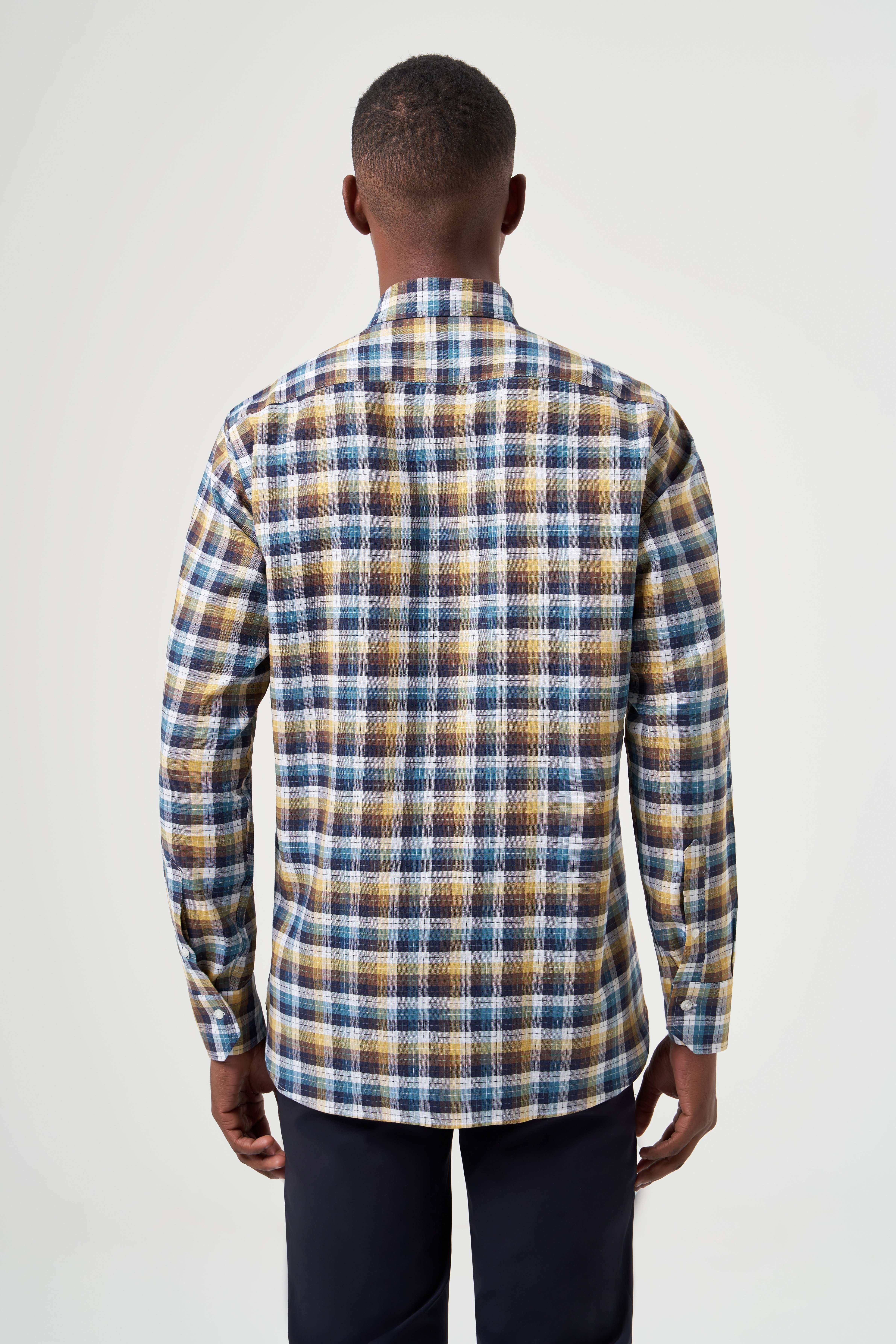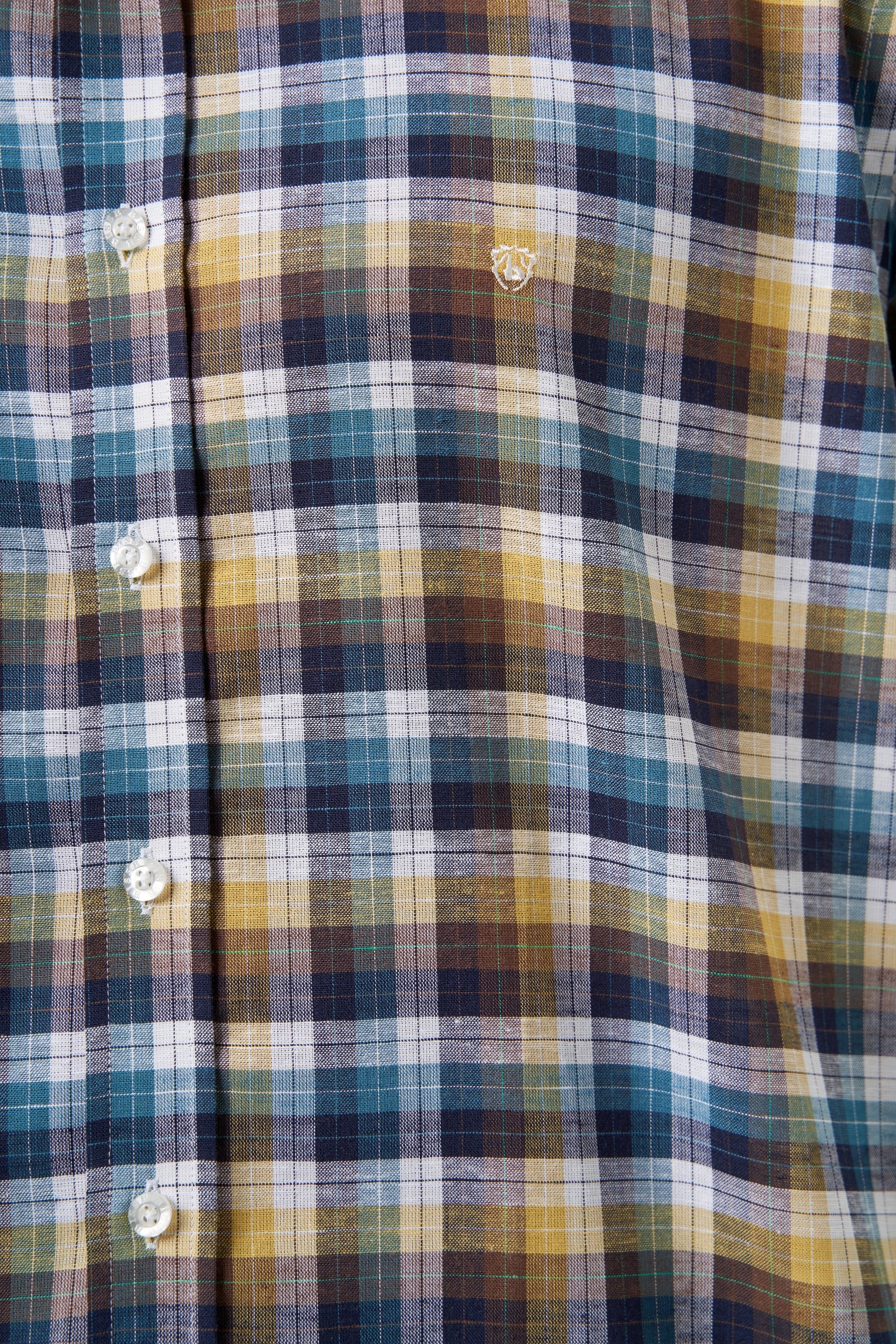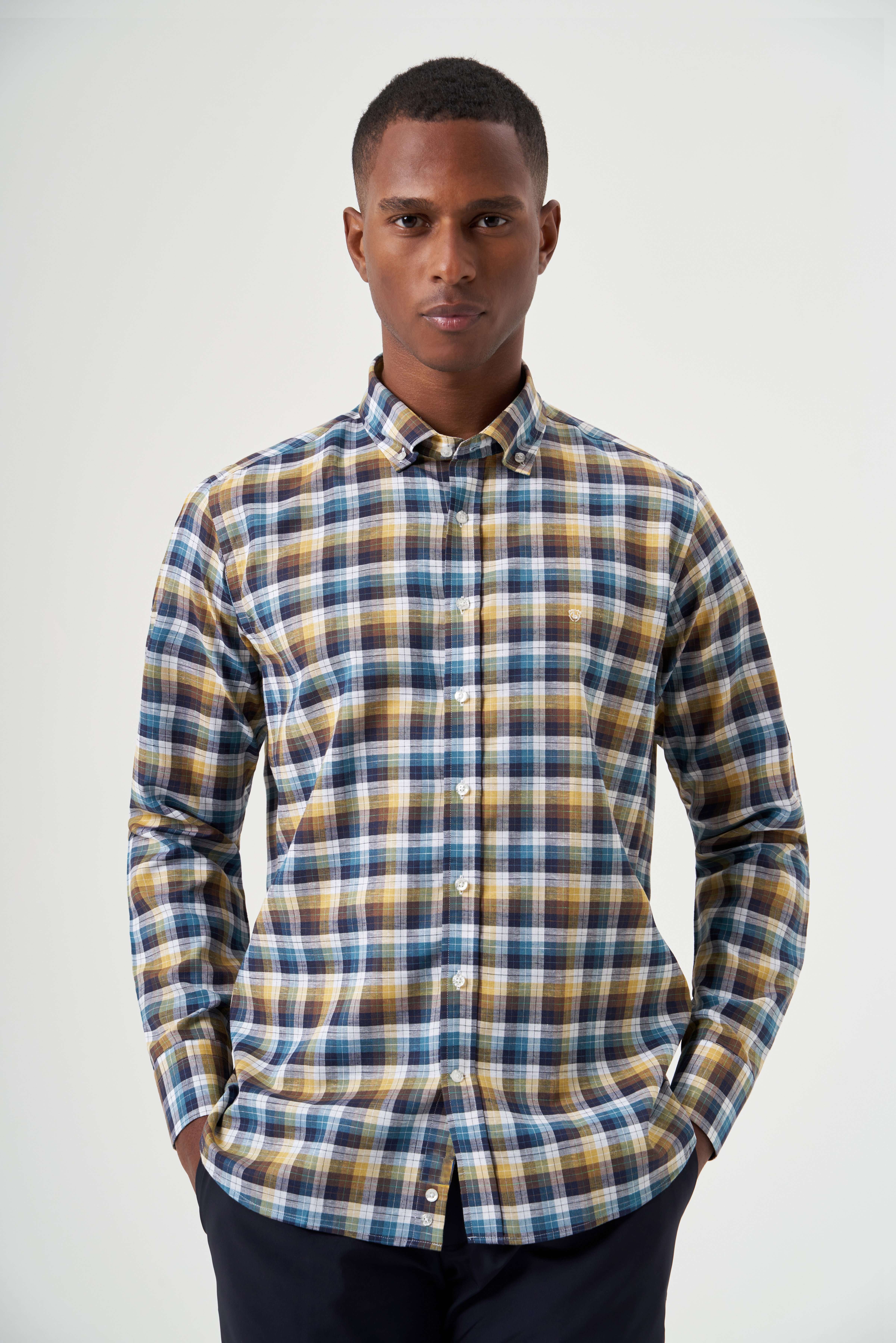 Regular Fit Paşa Yaka Lacivert Ekoseli Spor Erkek Gömlek