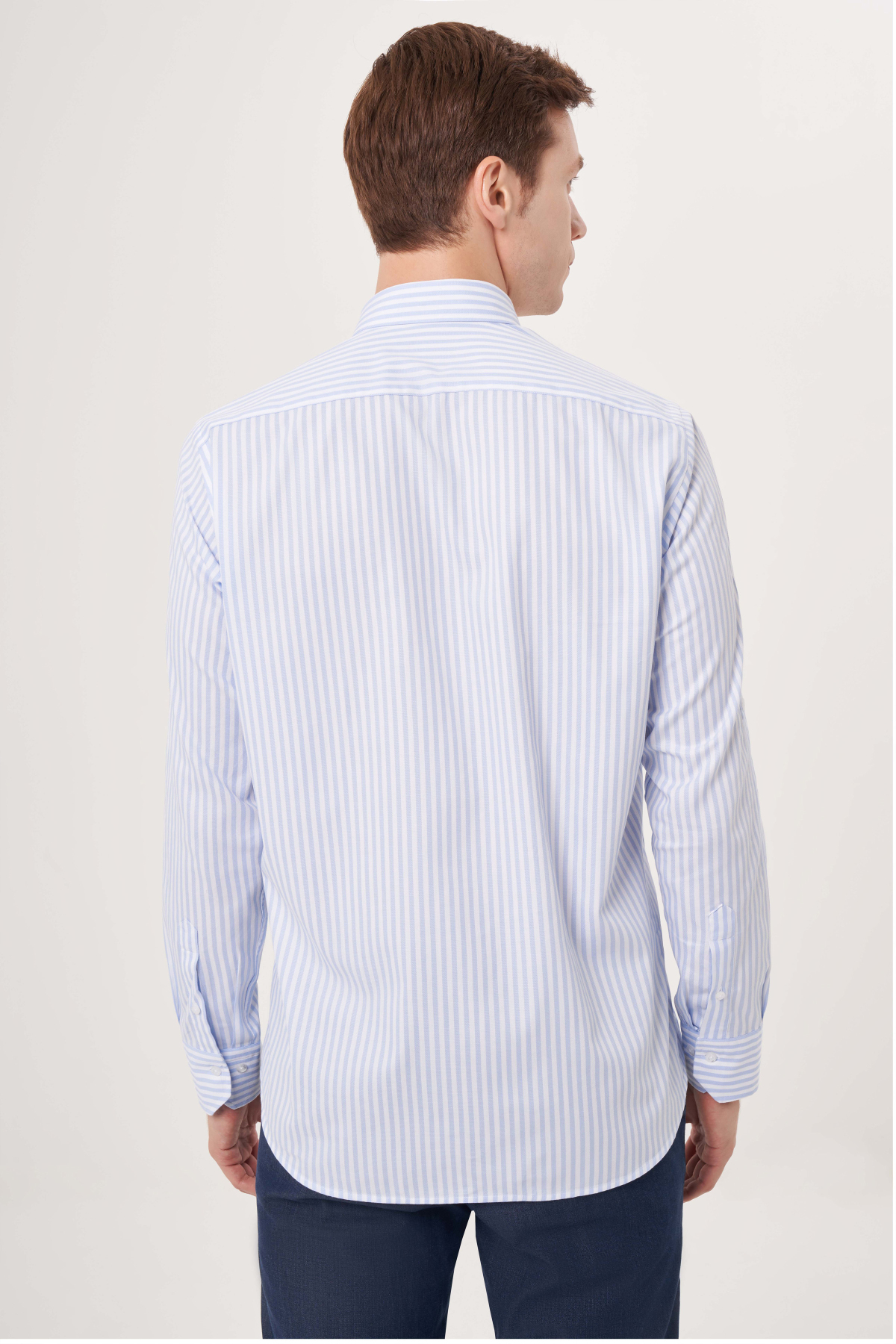 Regular Fit Paşa Yaka Mavi Spor Erkek Gömlek