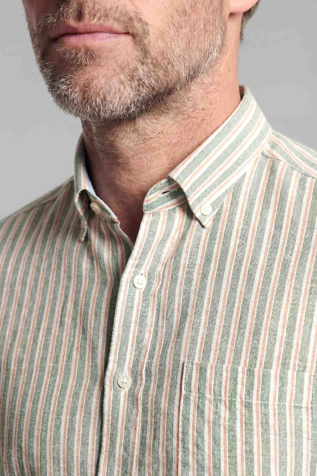 Regular Fit Paşa Yaka Pamuk Keten Yeşil Erkek Gömlek