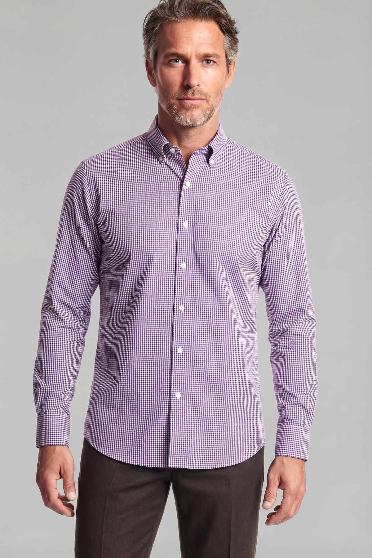 Regular Fit Paşa Yaka Pamuk Kırmızı Erkek Gömlek