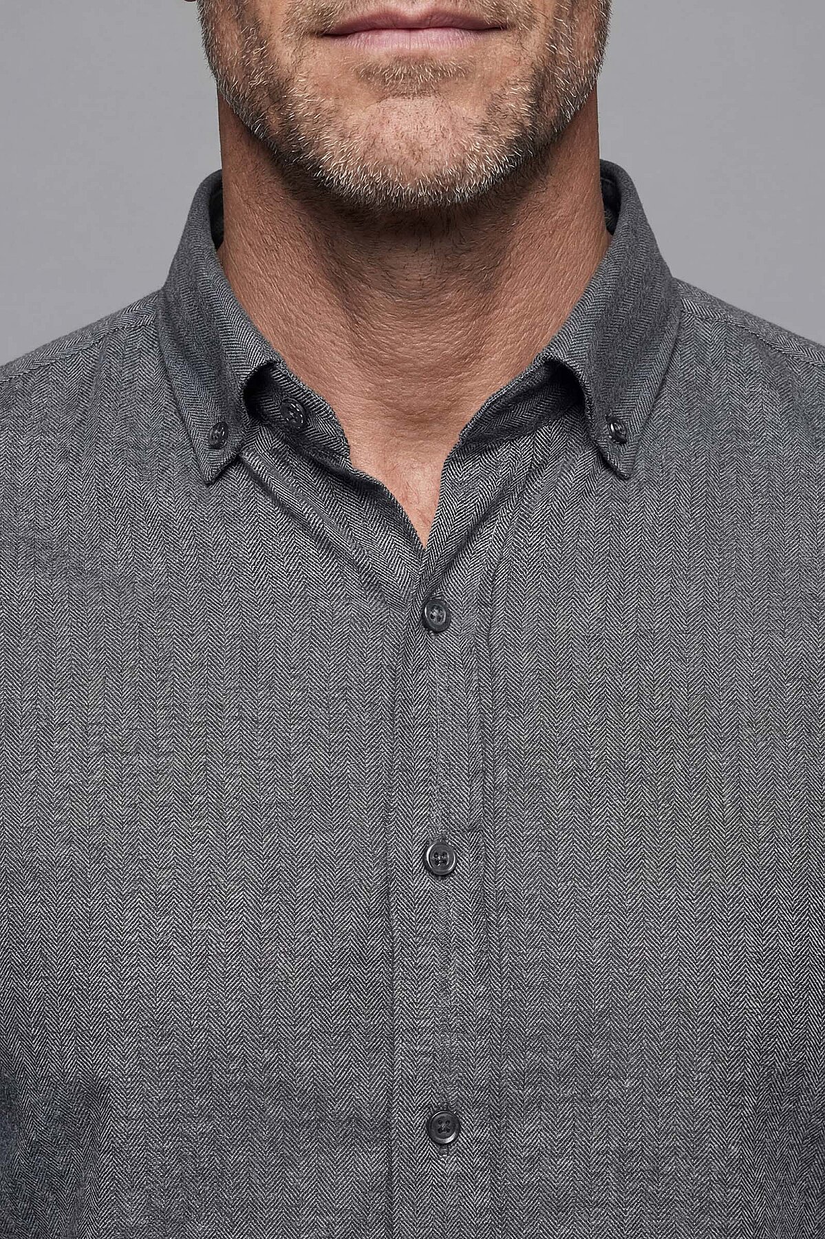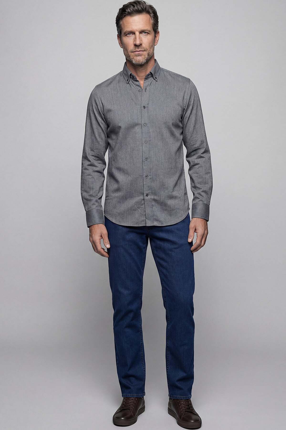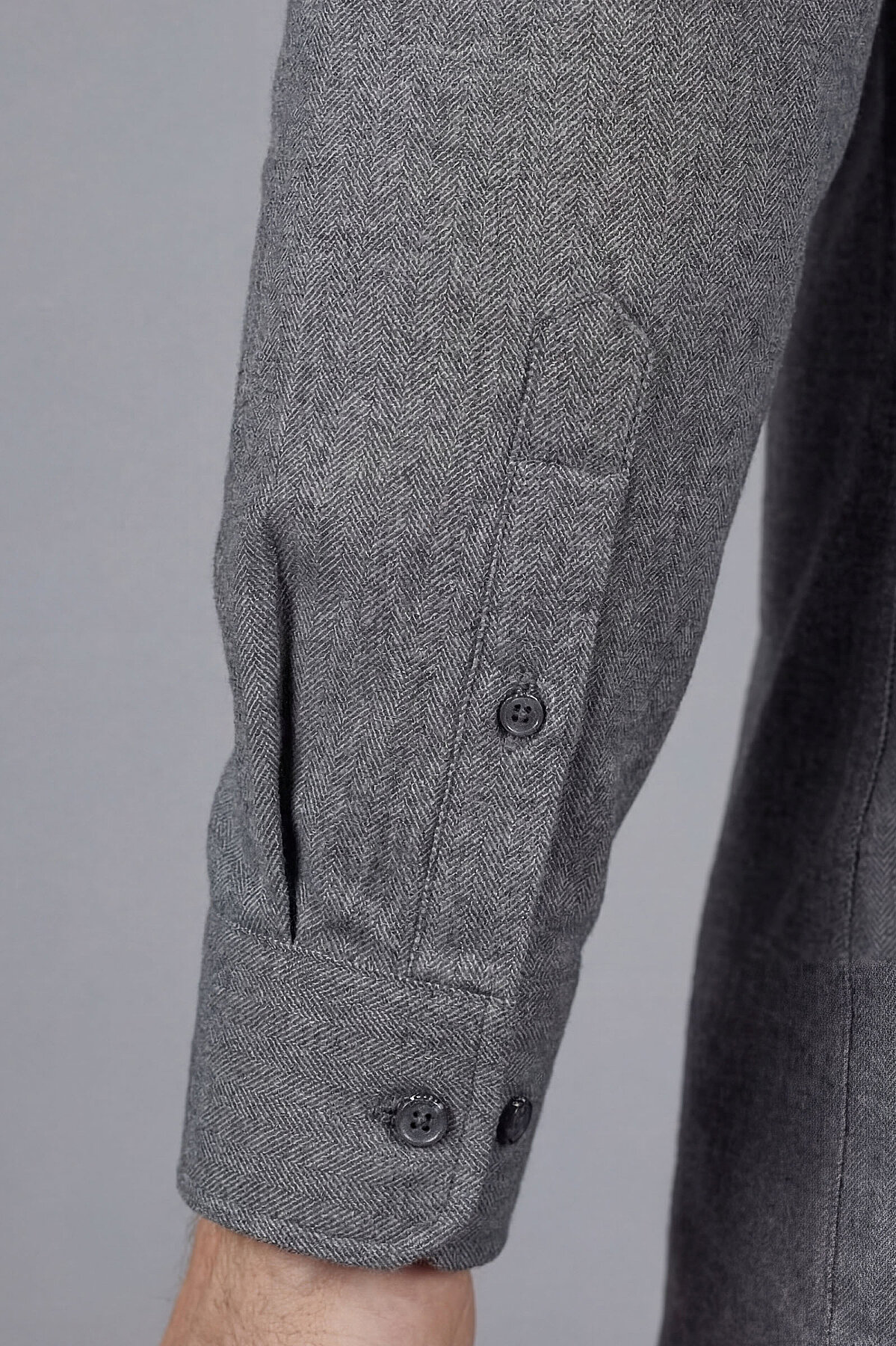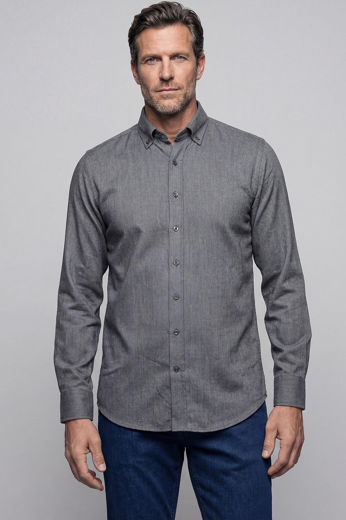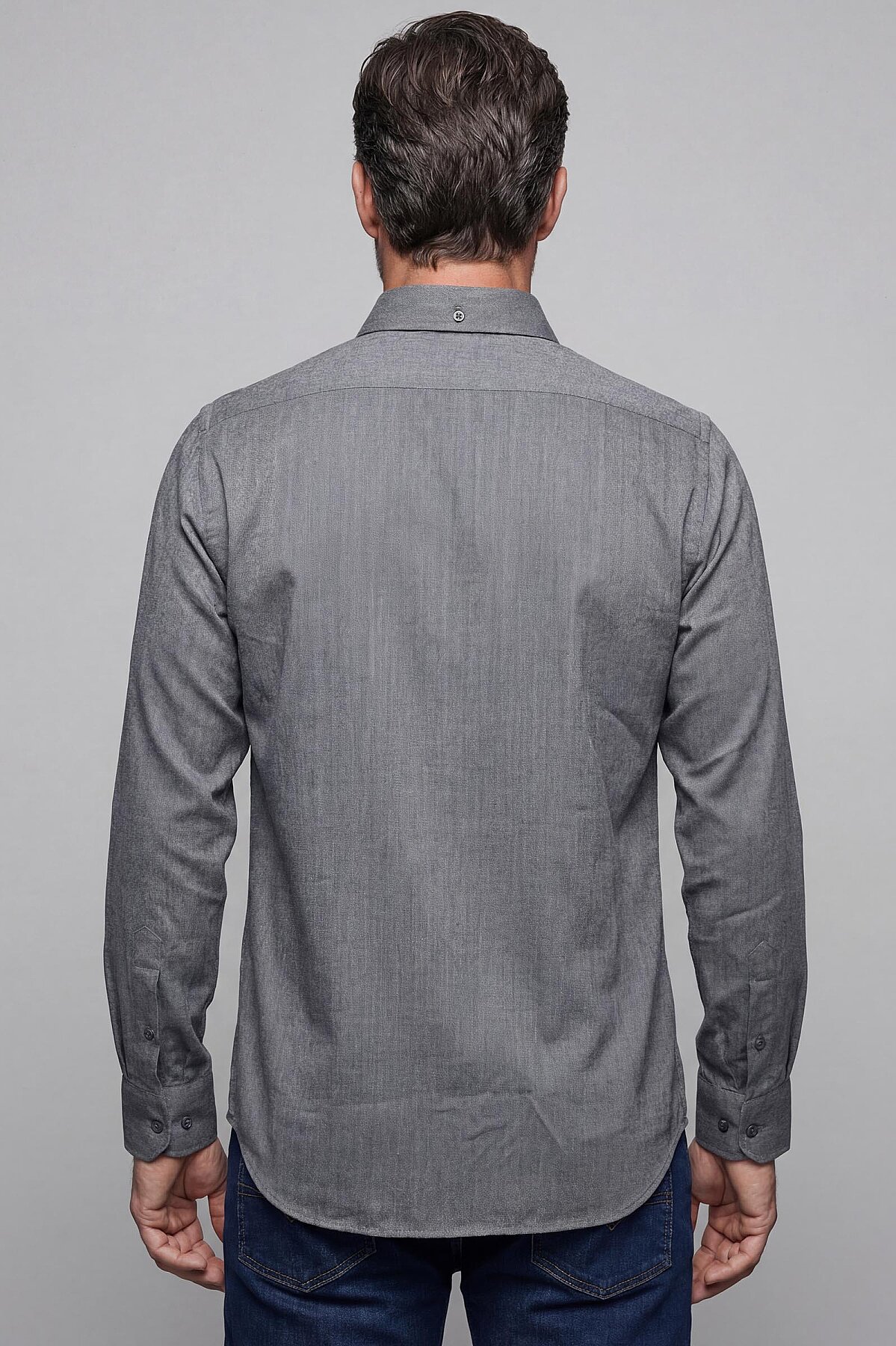 Regular Fit Paşa Yaka Pamuk Koyu Gri Erkek Gömlek