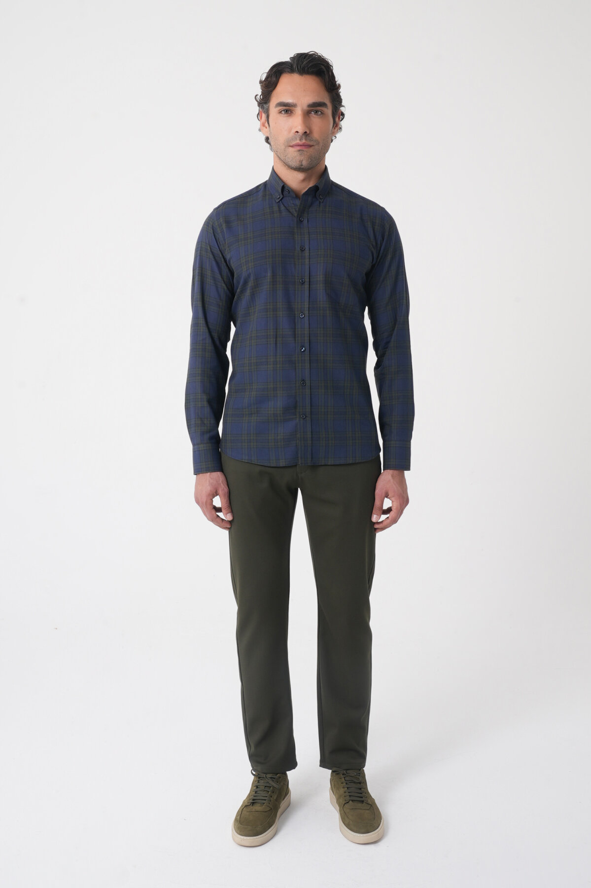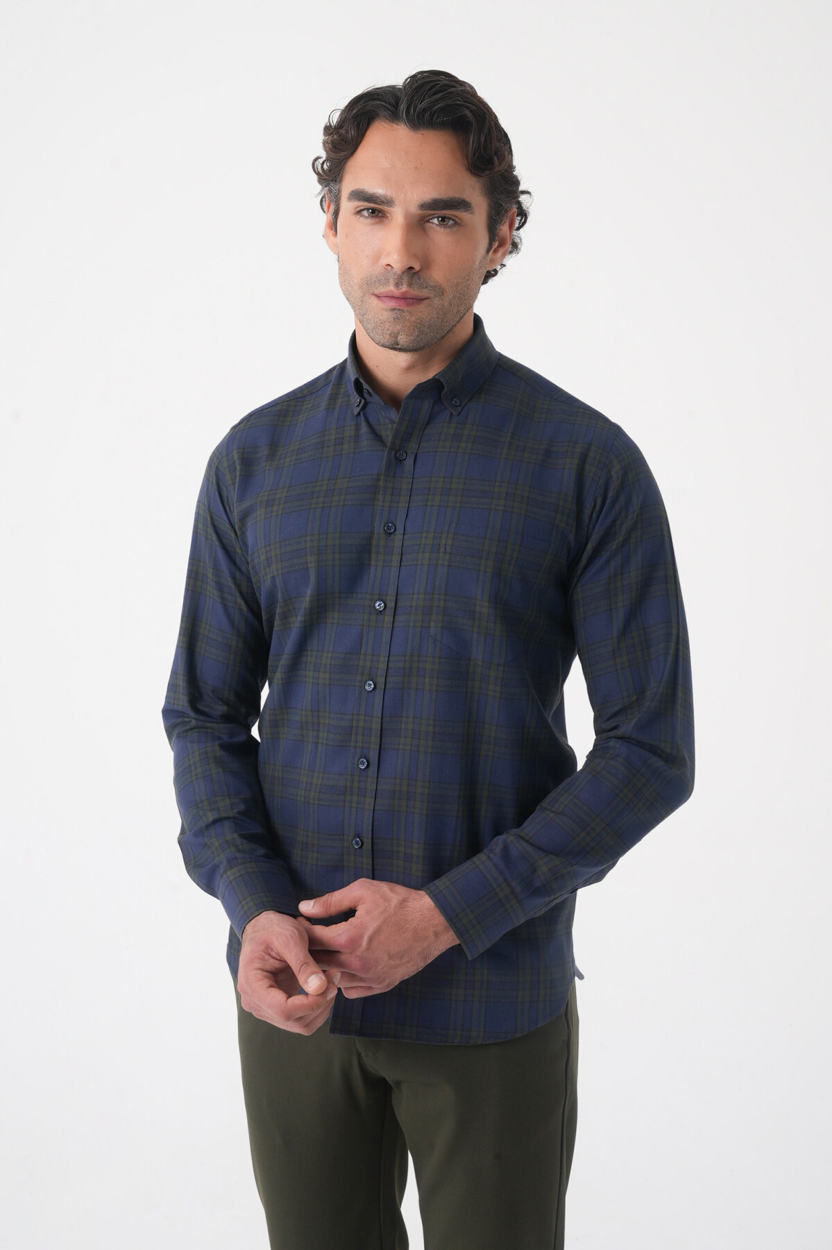 Regular Fit Paşa Yaka Pamuk Koyu Yeşil Erkek Gömlek