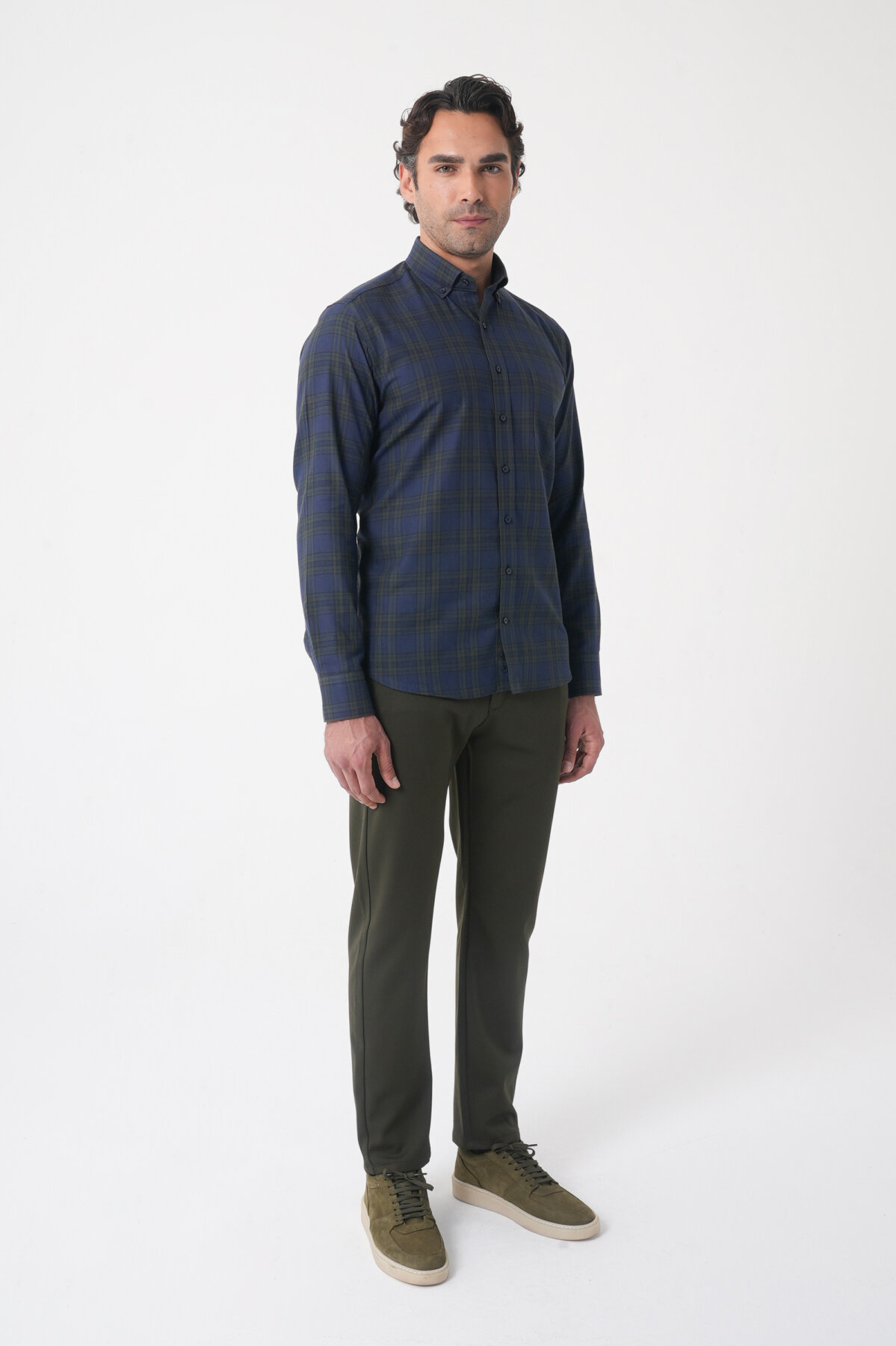 Regular Fit Paşa Yaka Pamuk Koyu Yeşil Erkek Gömlek K.yeşil