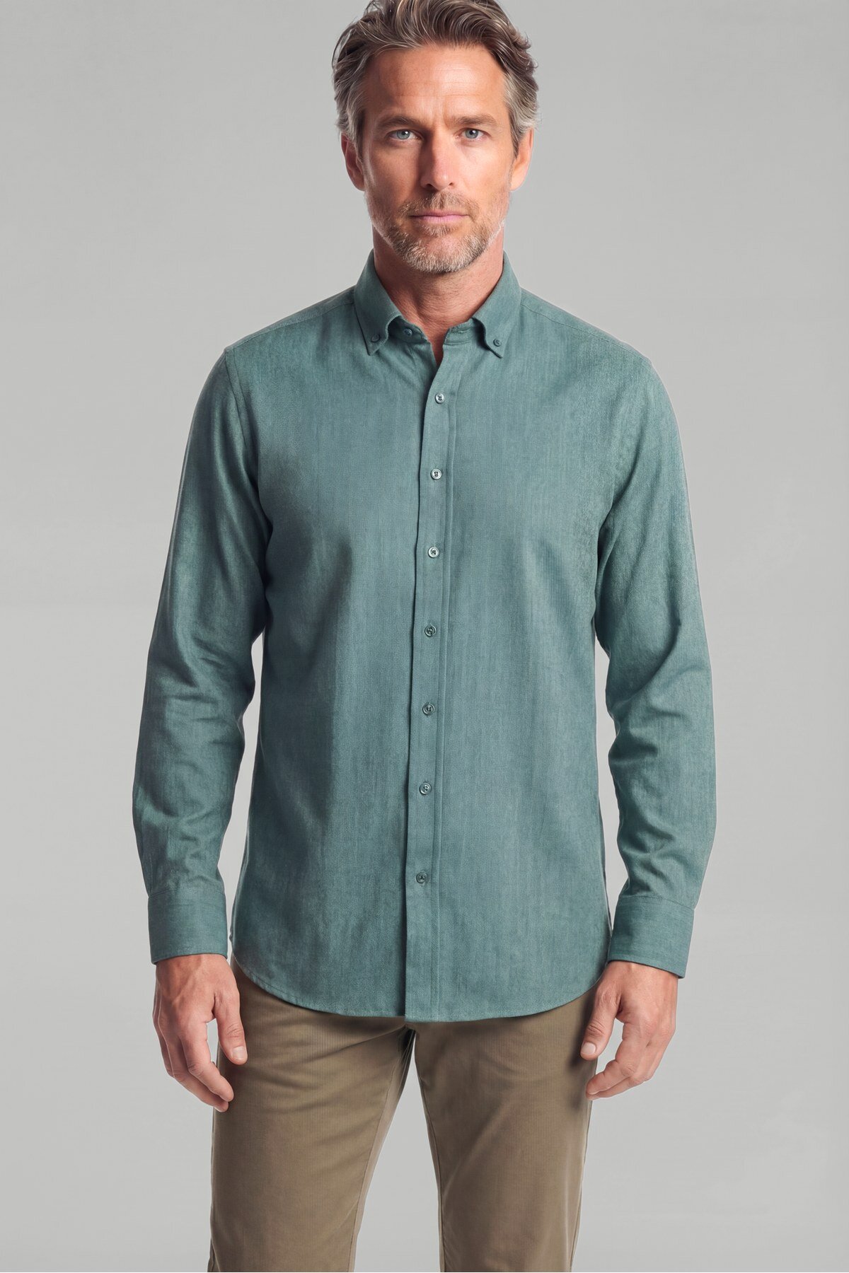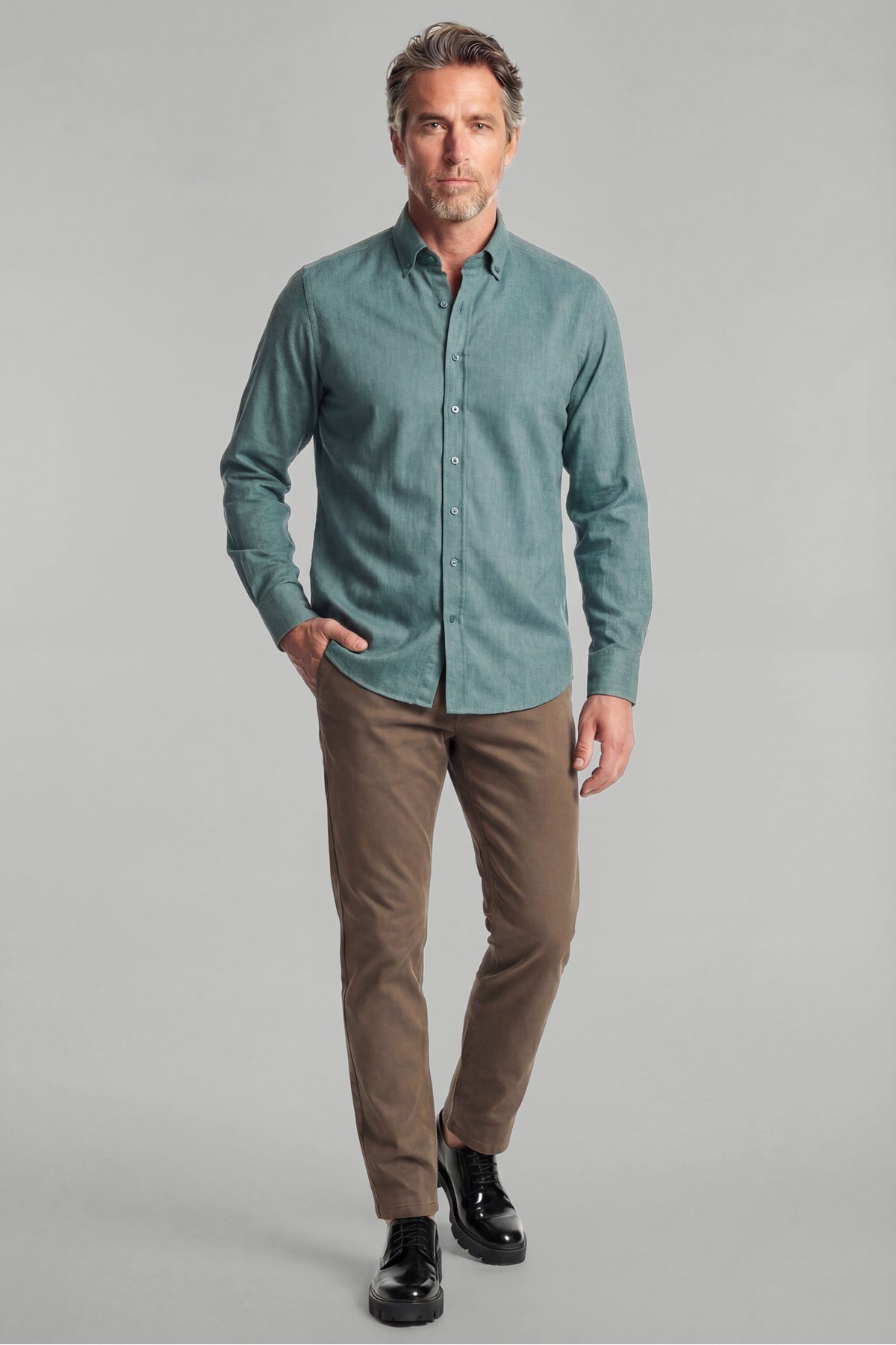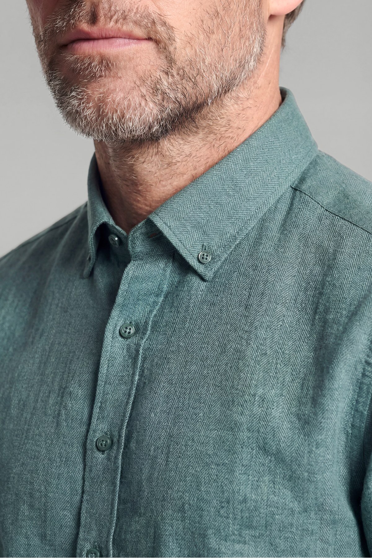 Regular Fit Paşa Yaka Pamuk Yeşil Erkek Gömlek