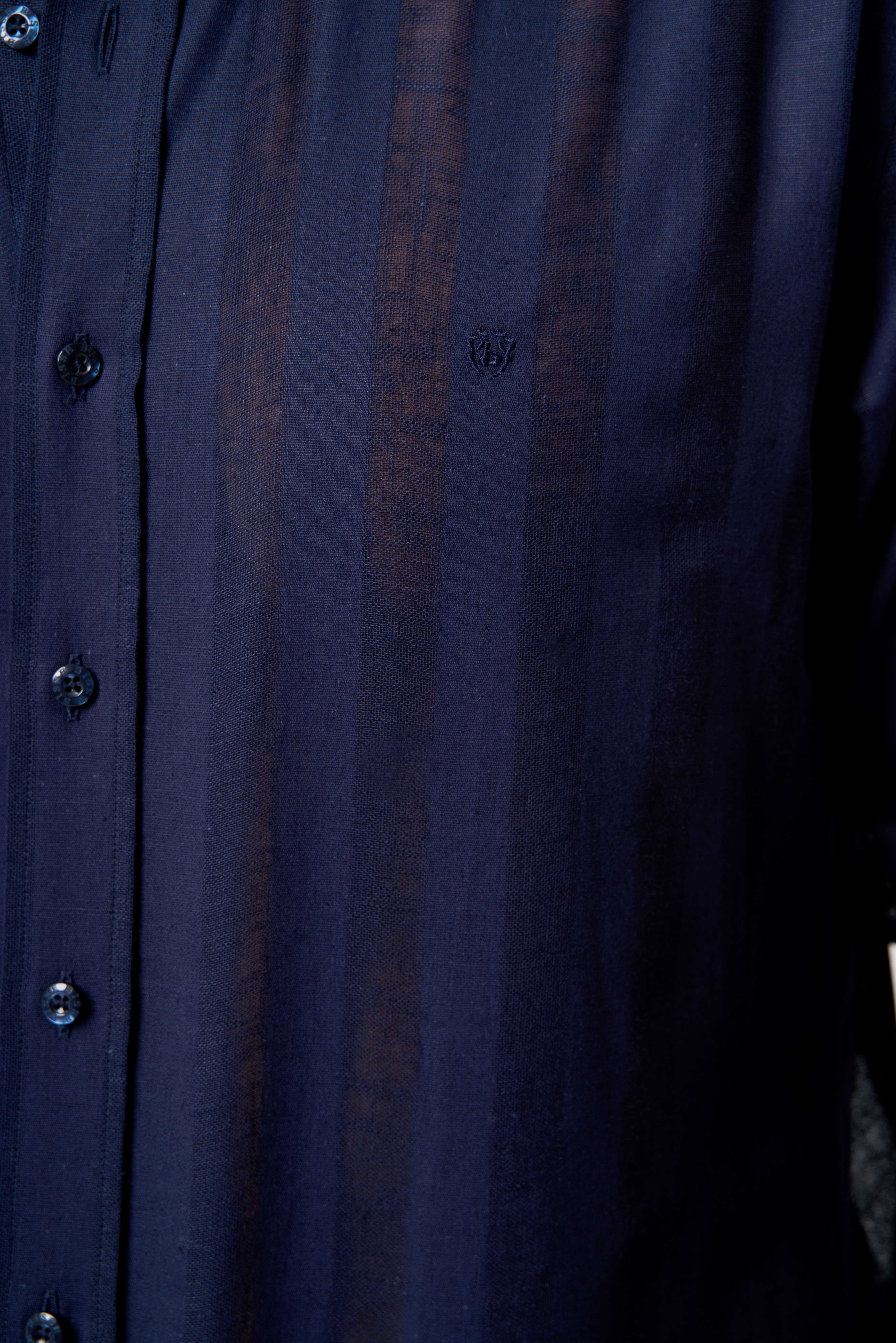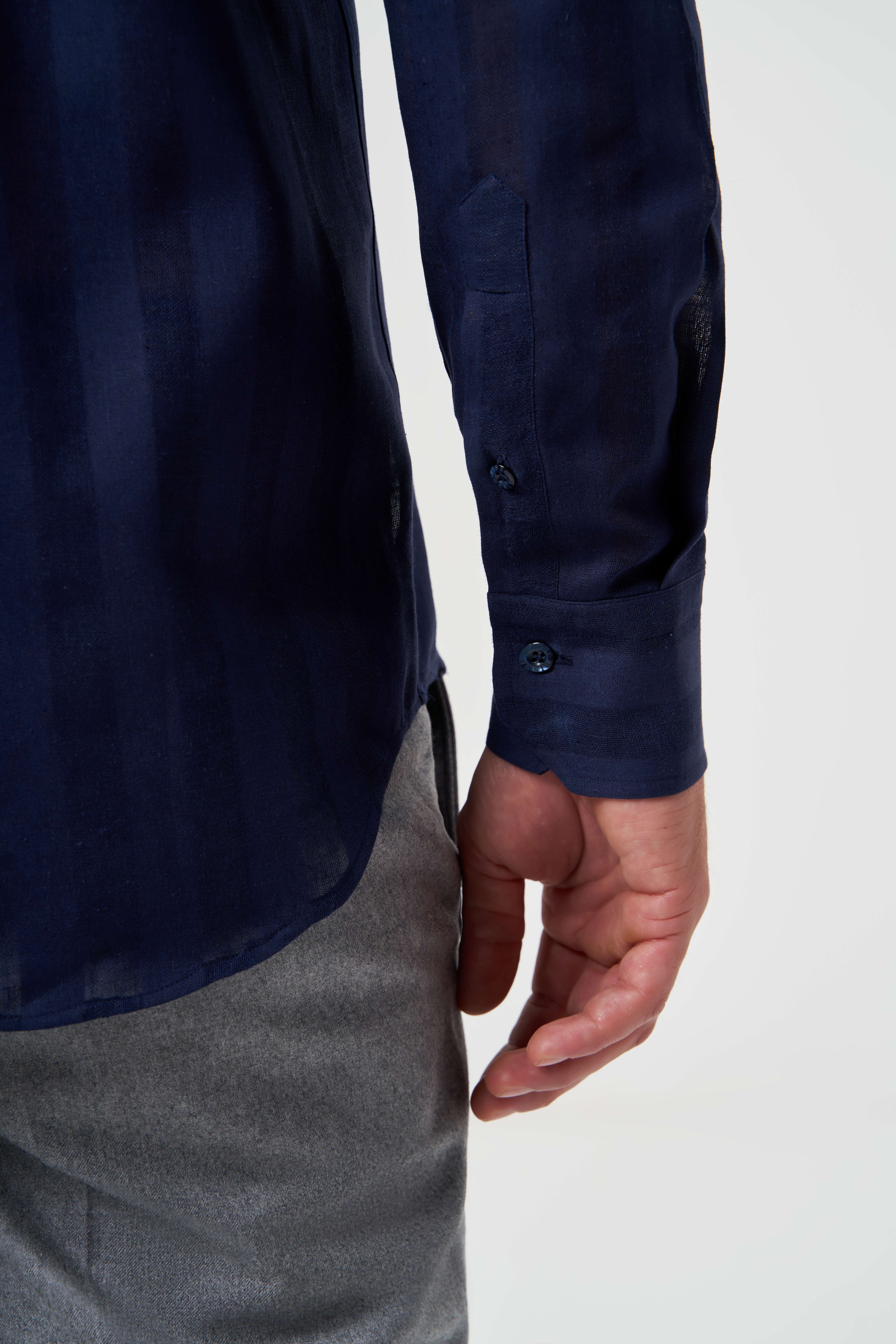 Regular Fit Paşa Yaka Transparan Lacivert Erkek Gömlek