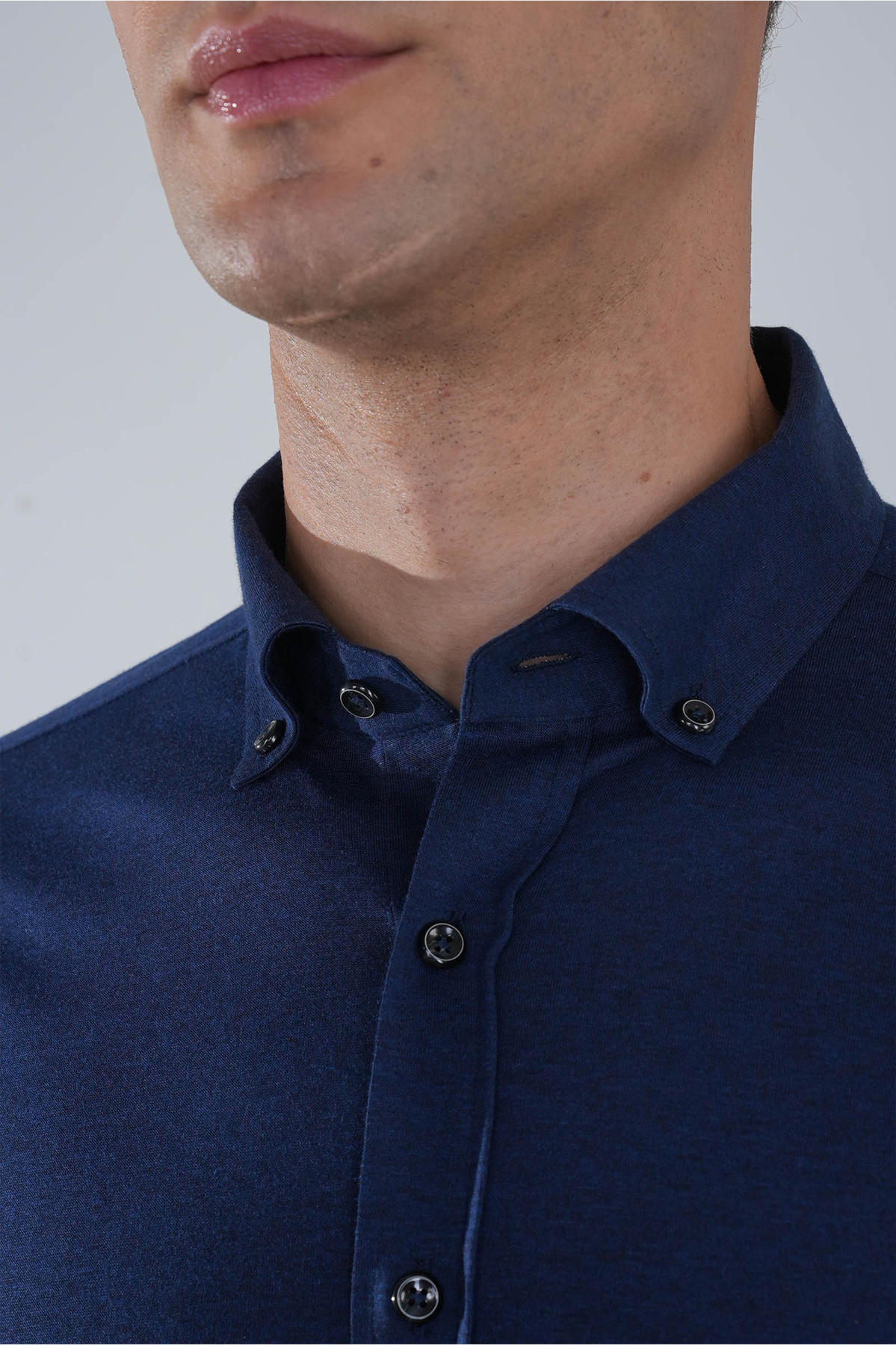 Regular Fit Paşa Yaka Uzun Kollu Erkek Pamuk Gömlek