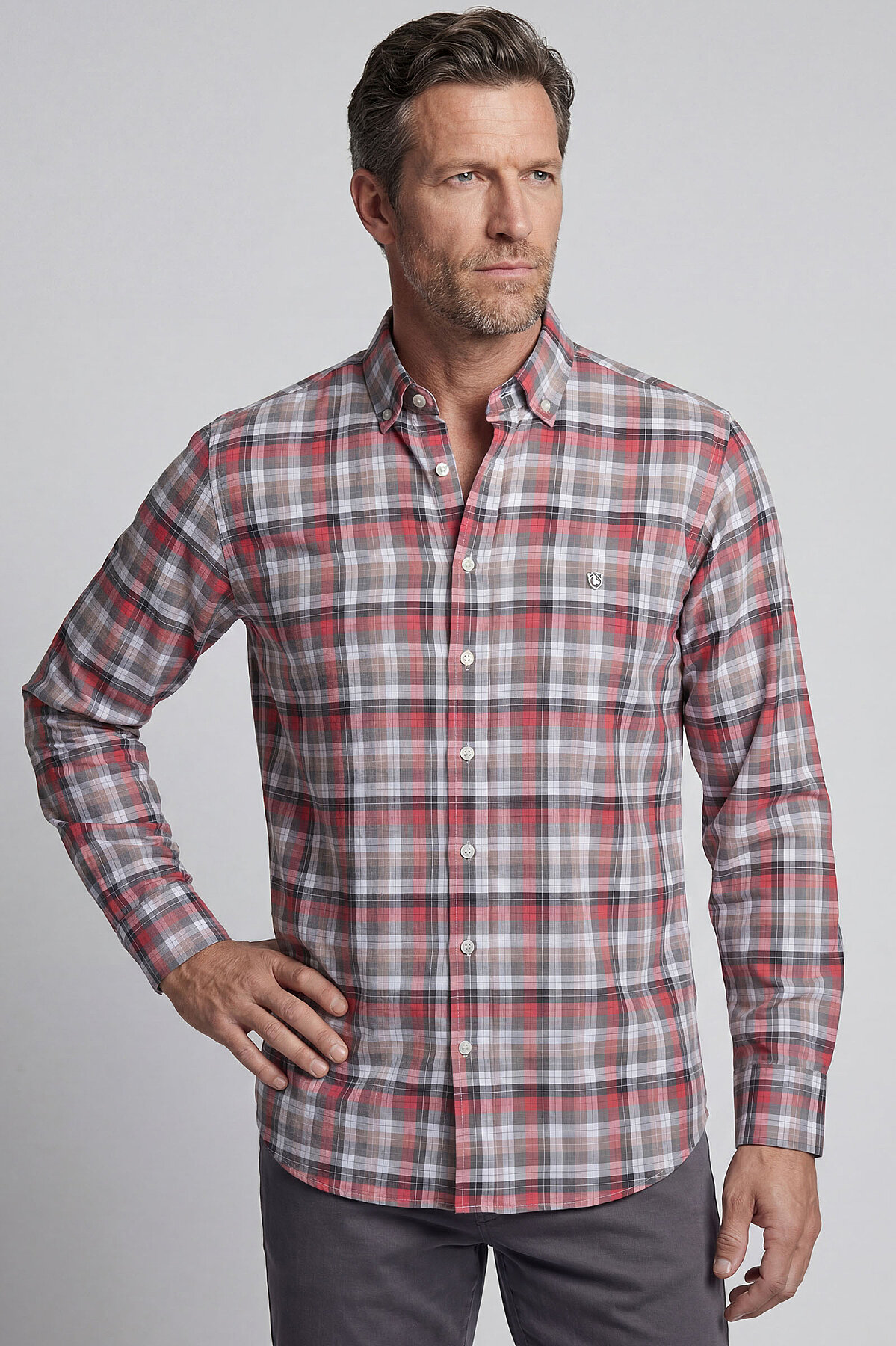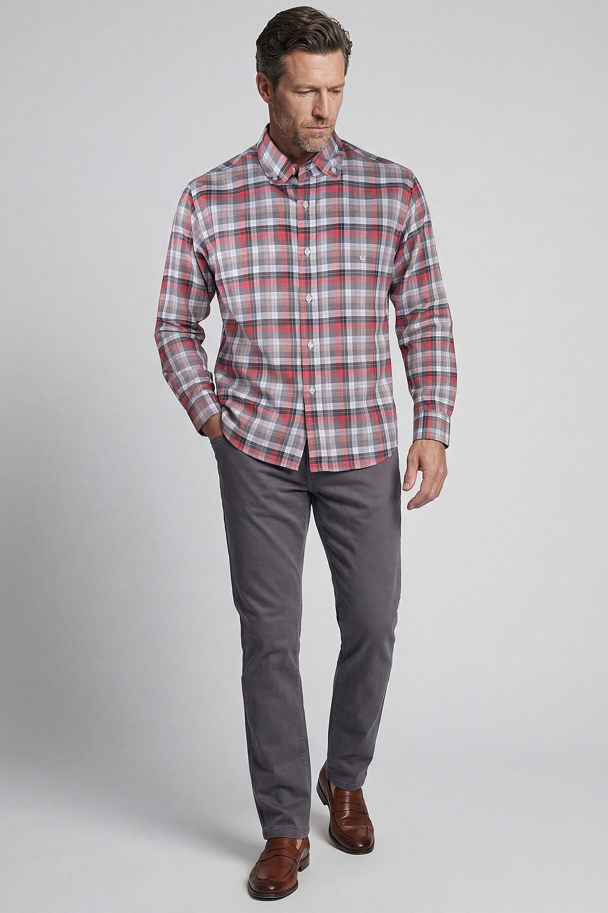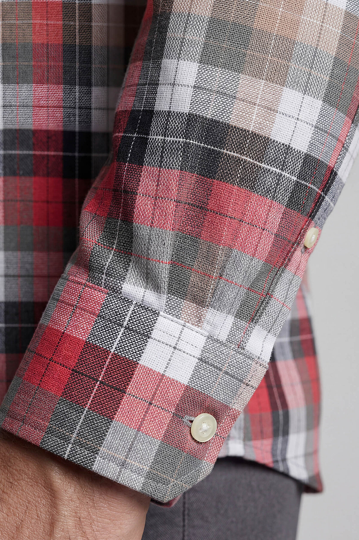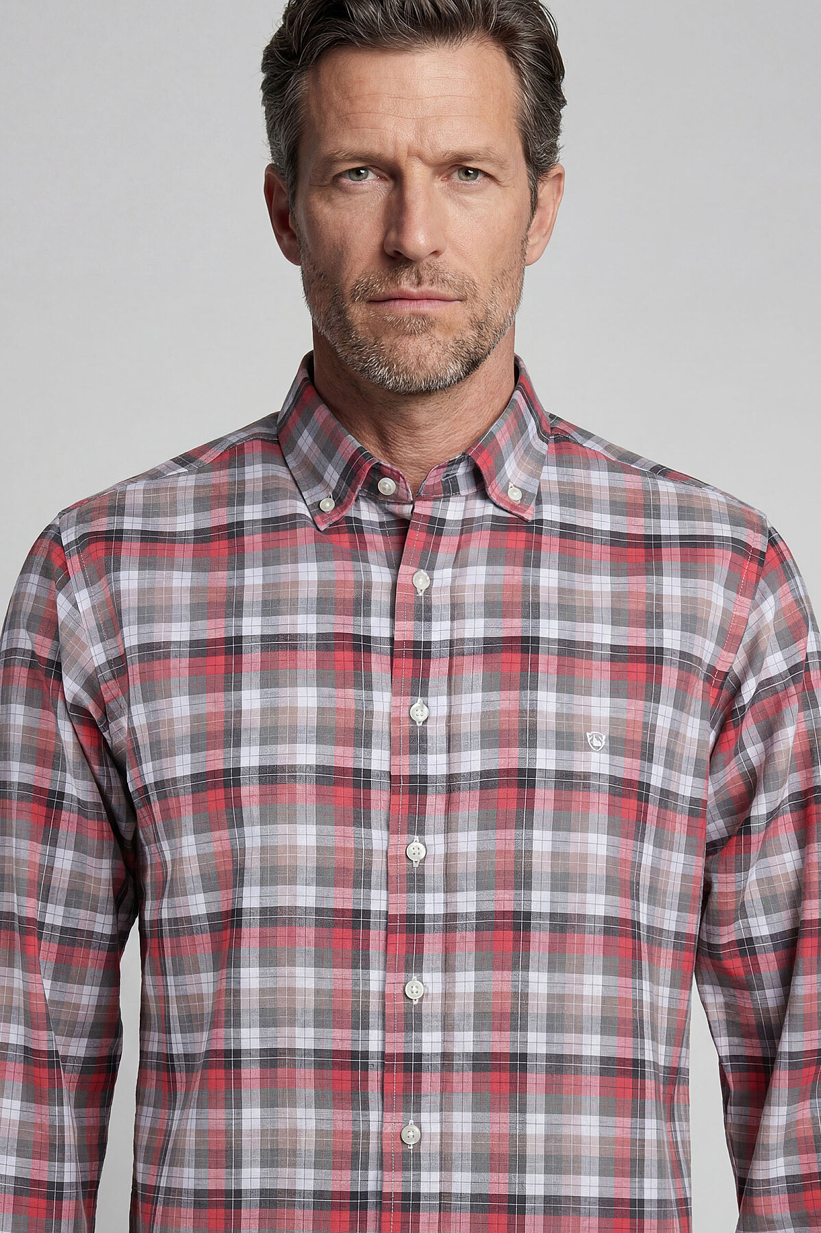 Regular Fit Paşa Yaka Yazlık Ekoseli Pamuk Gri Erkek Gömlek