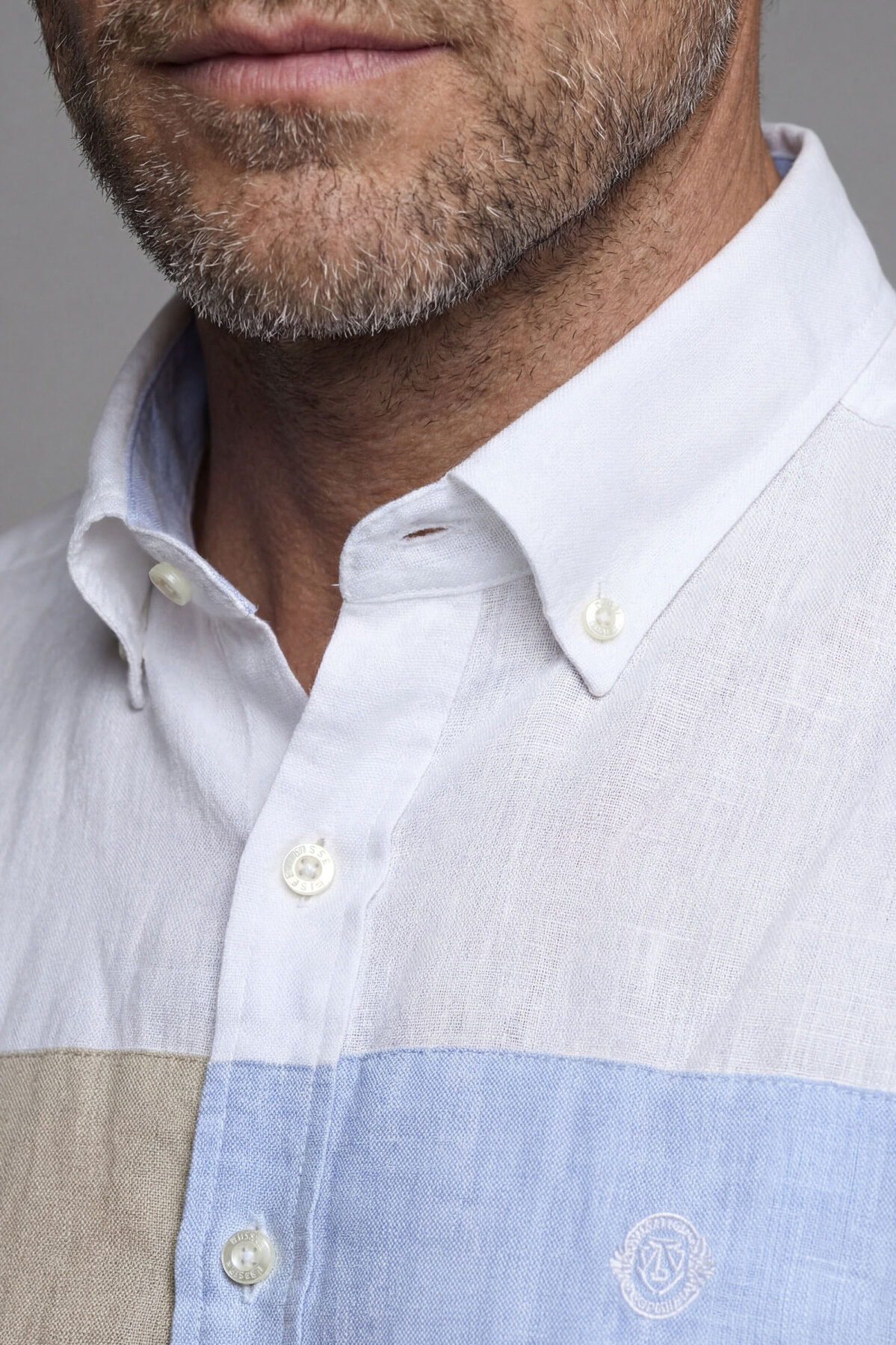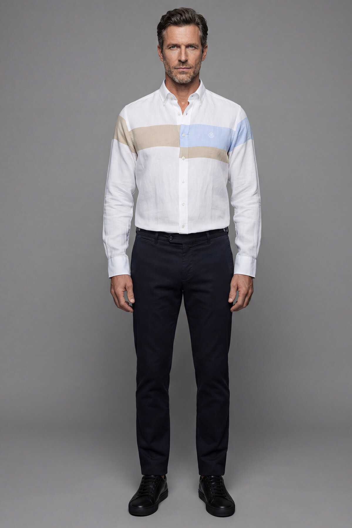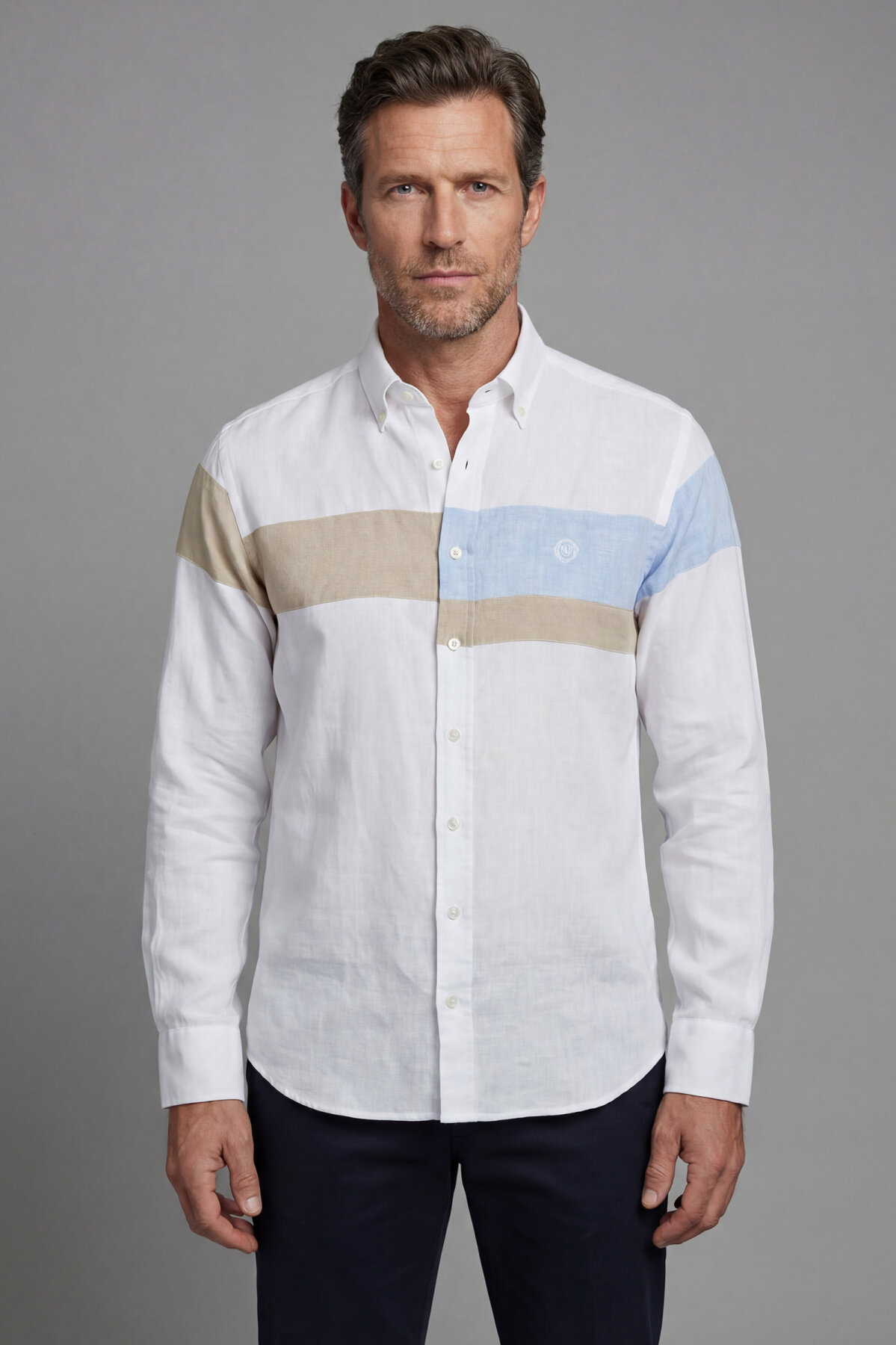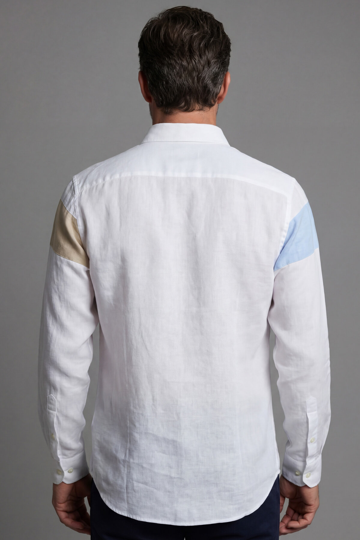 Regular Fit Paşa Yaka Yıkamalı Keten Beyaz Erkek Gömlek