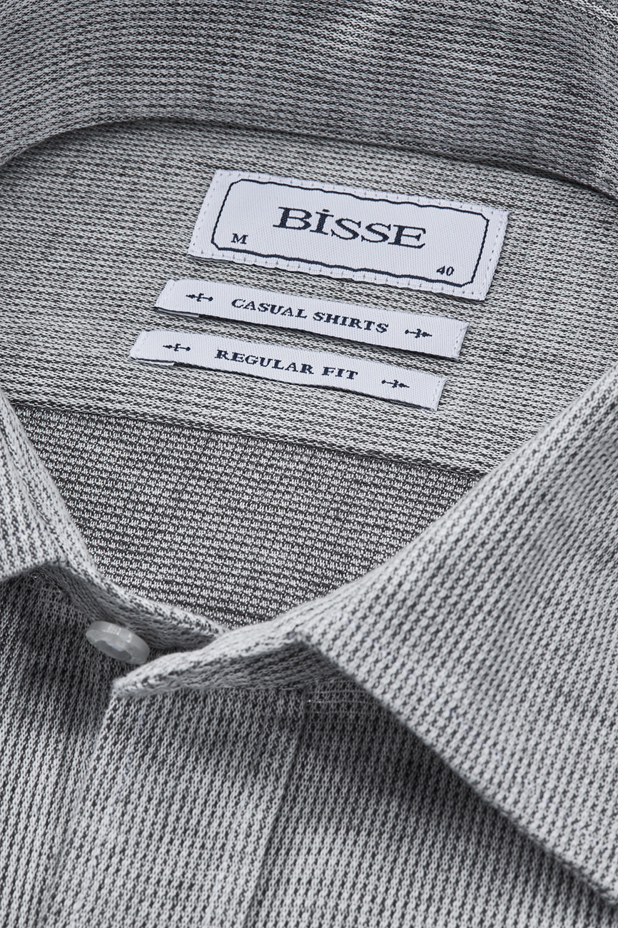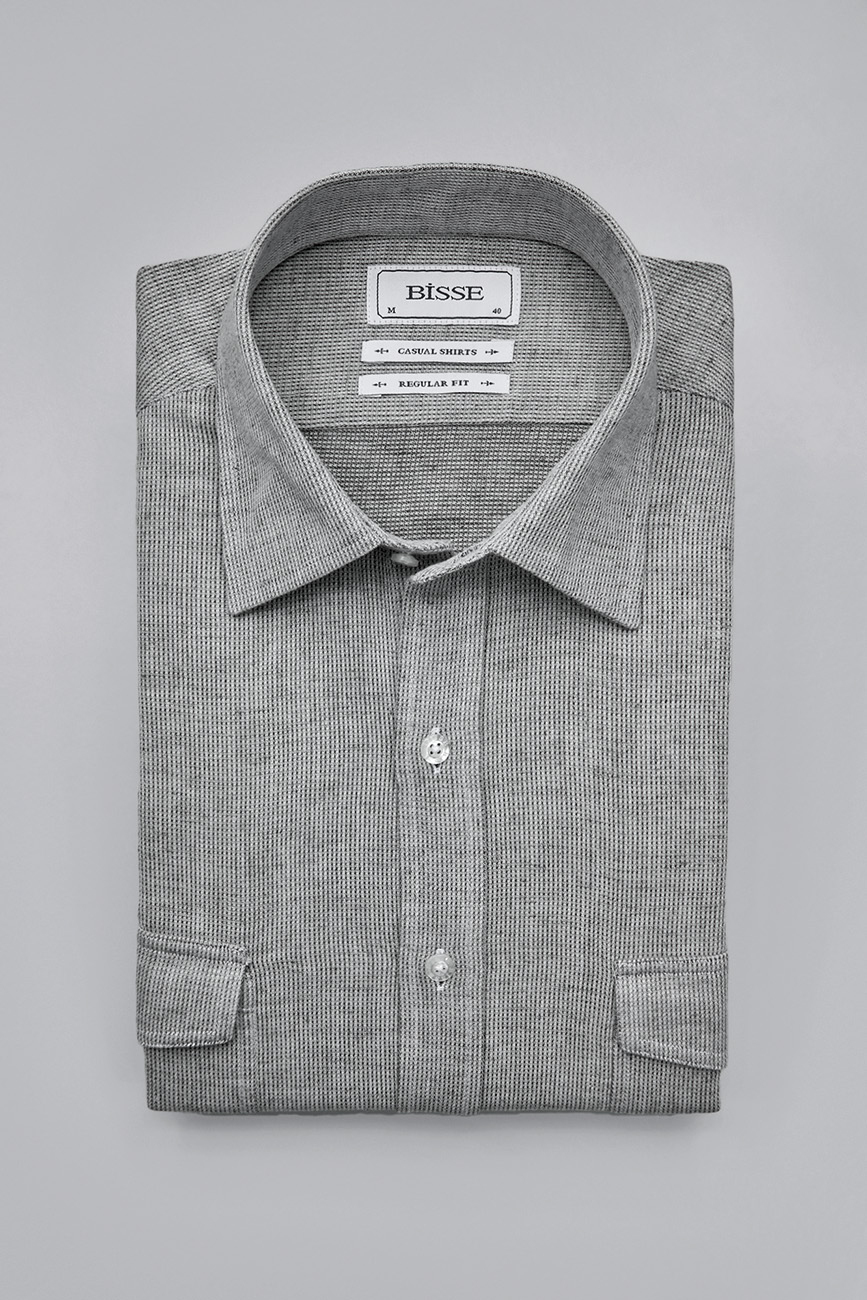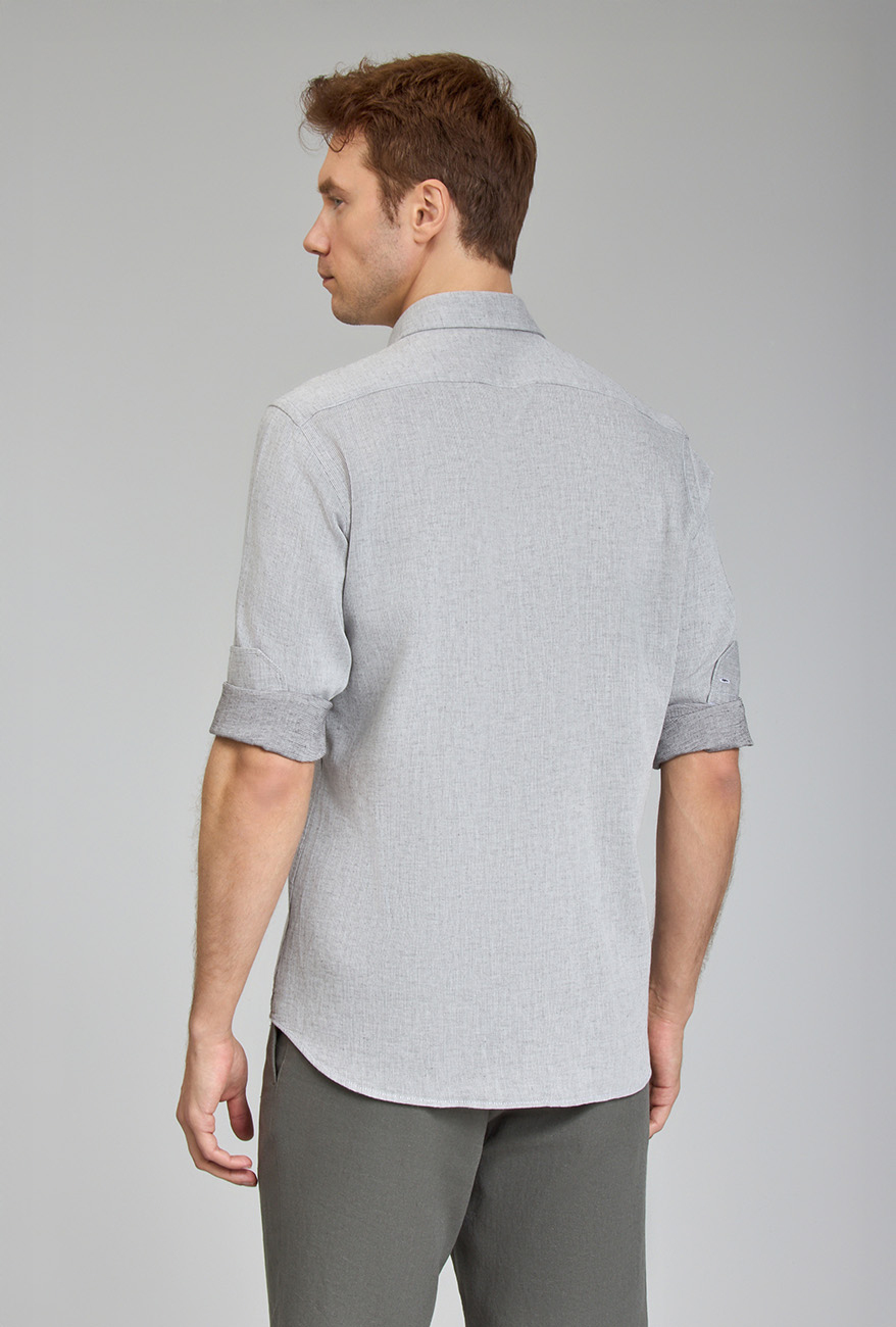 Regular Fit Spor Yaka Gri Pamuk Keten Erkek Gömlek