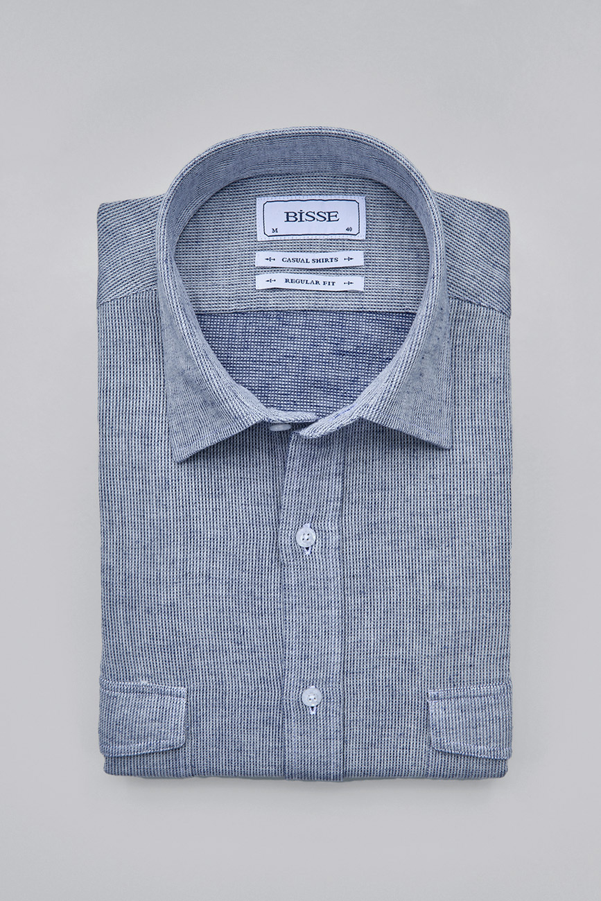 Regular Fit Spor Yaka Mavi Pamuk Keten Linen Erkek Gömlek