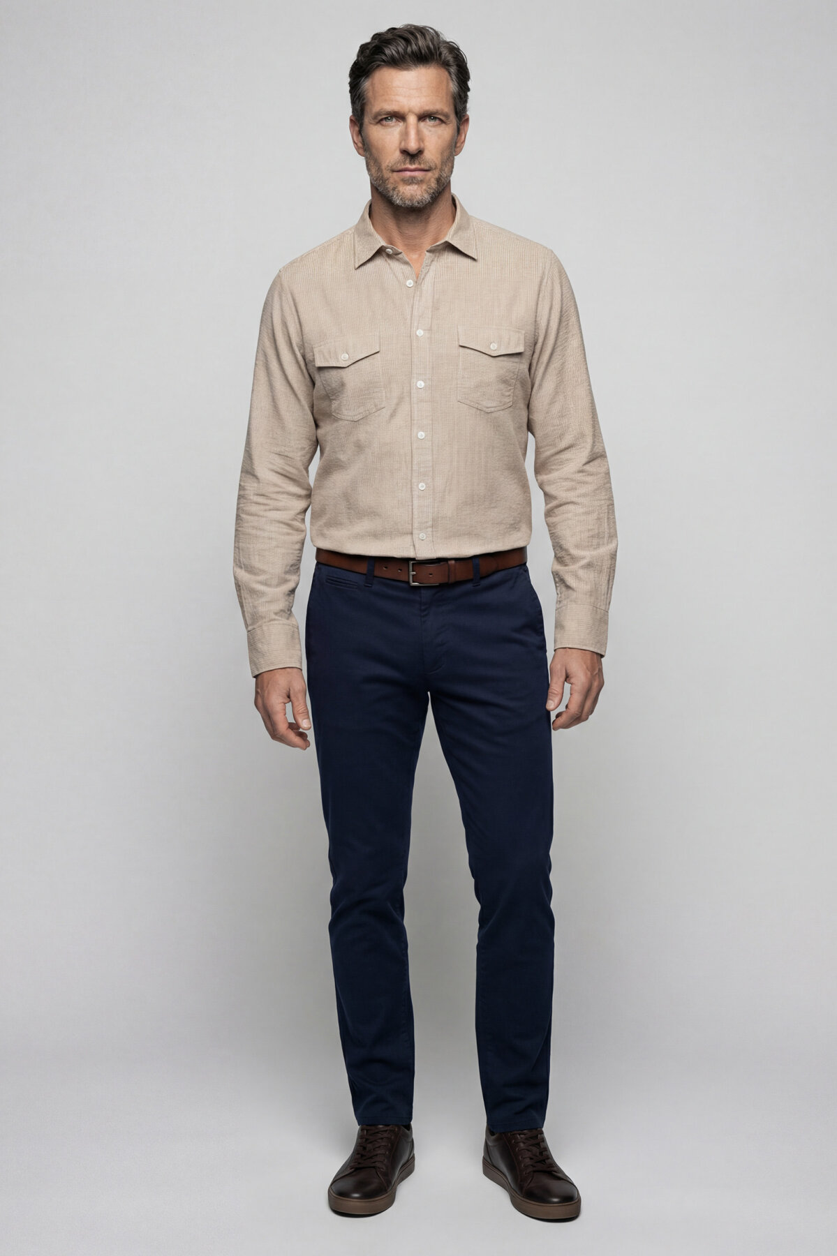 Modern Fit, Paşa YakaMODEL ÖLÇÜLERİ: Boy: 189 cm Göğüs: 102 cm Bel: 86 cm Kalça: 102 cm