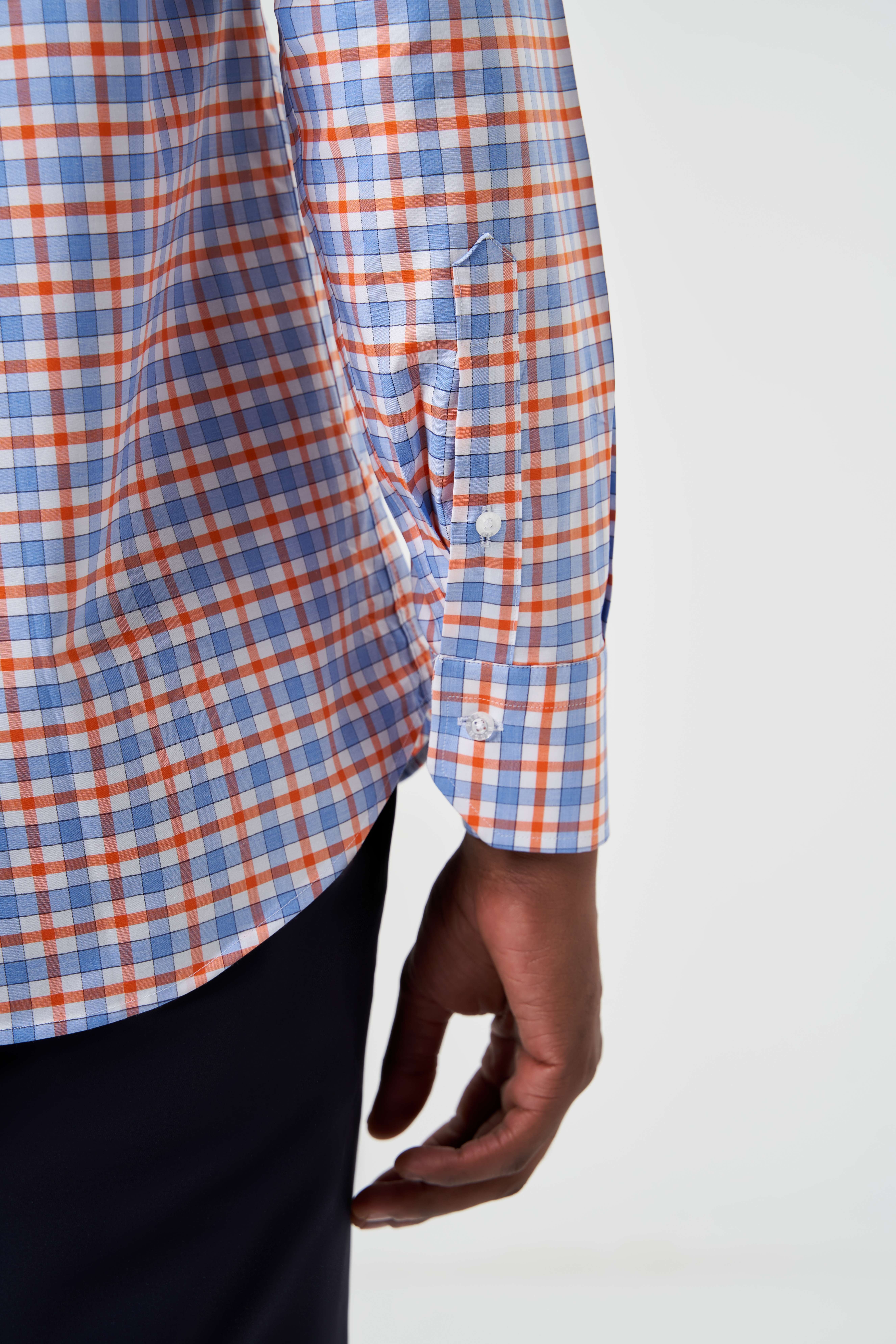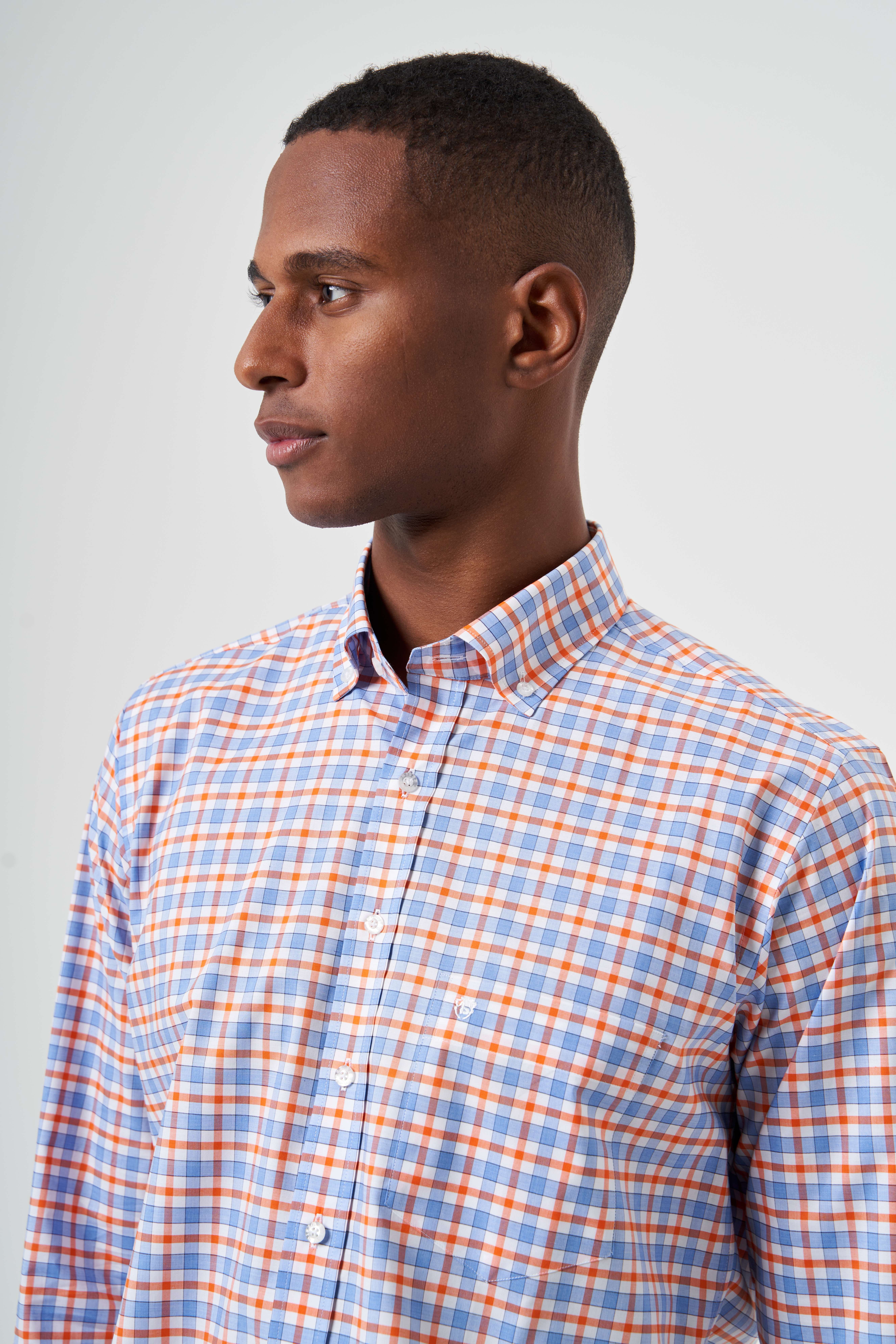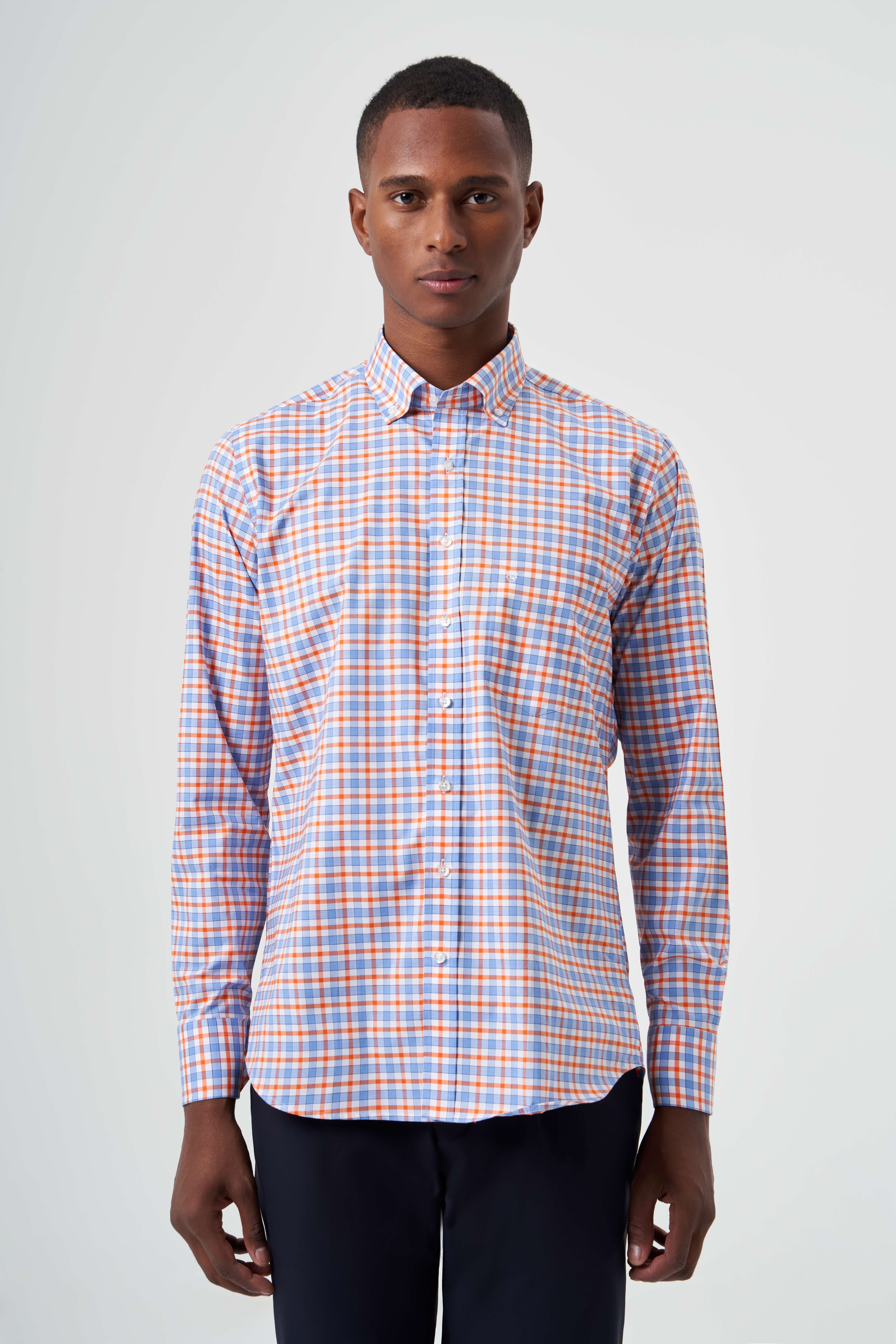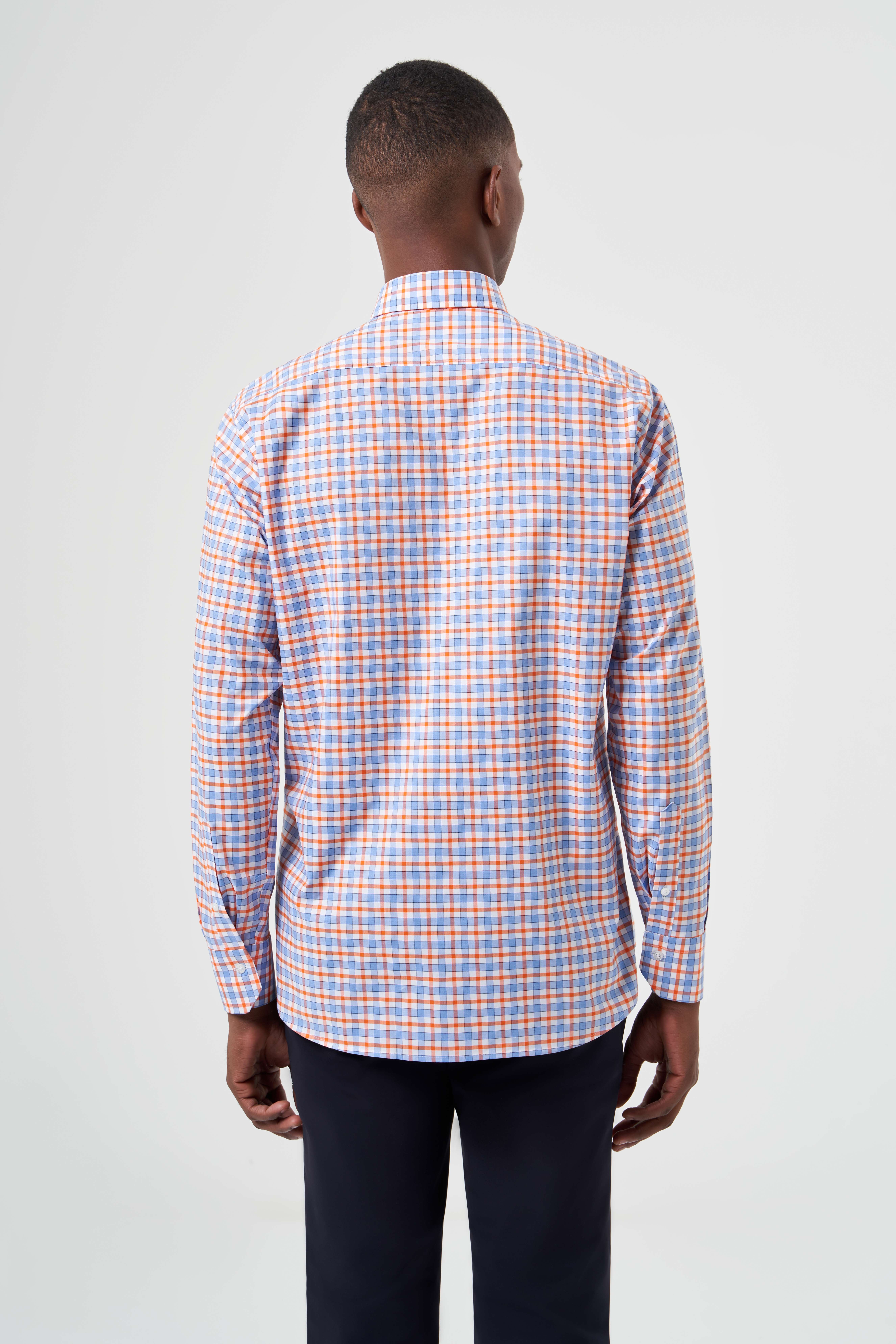 Regular Fit Turuncu Yazlık Ekose Paşa Yaka Spor Erkek Gömlek